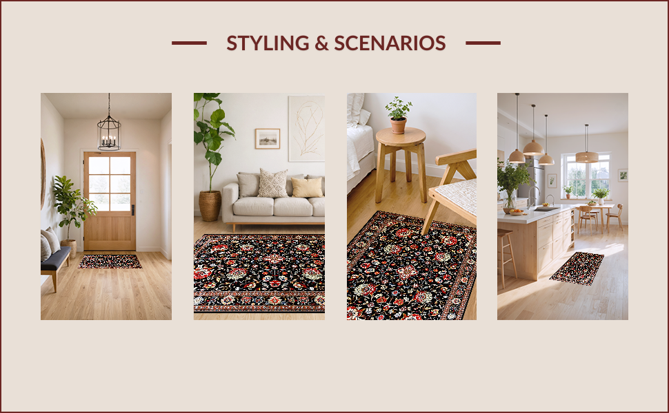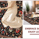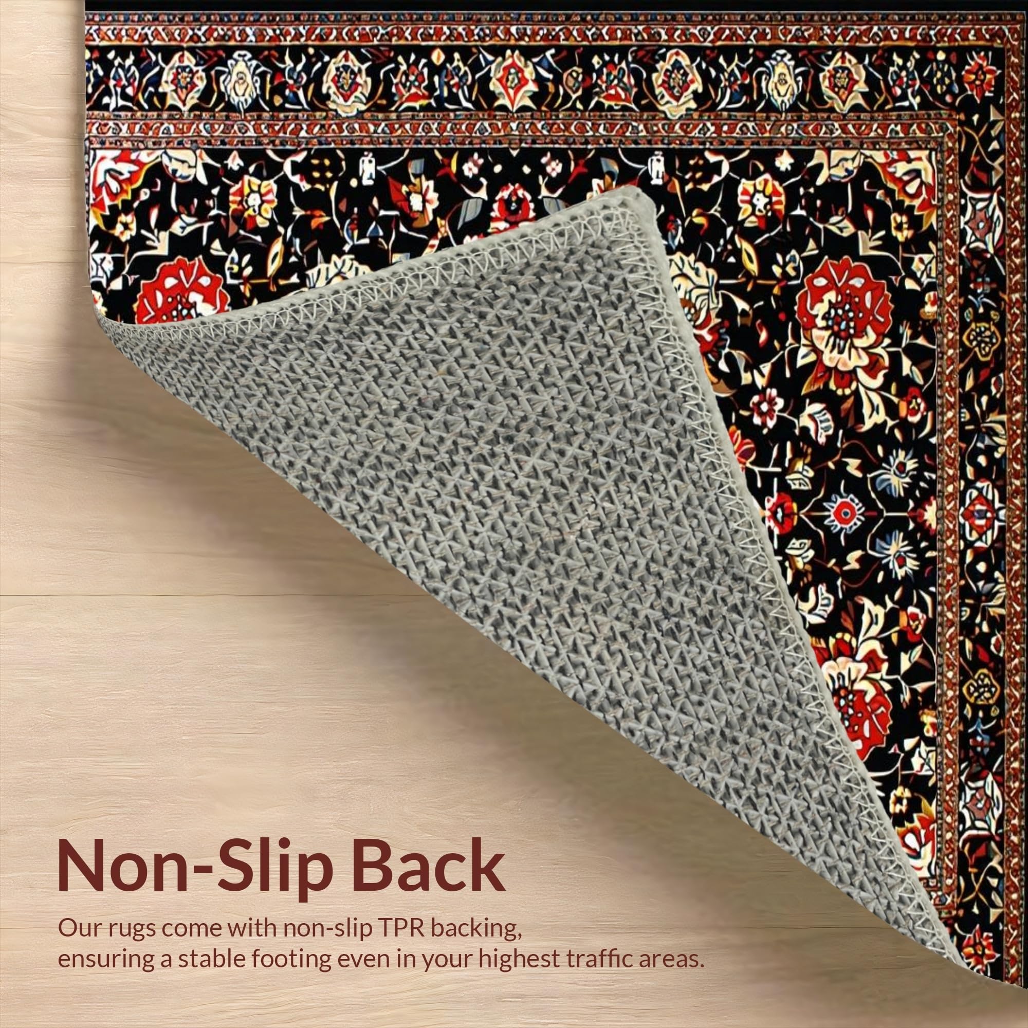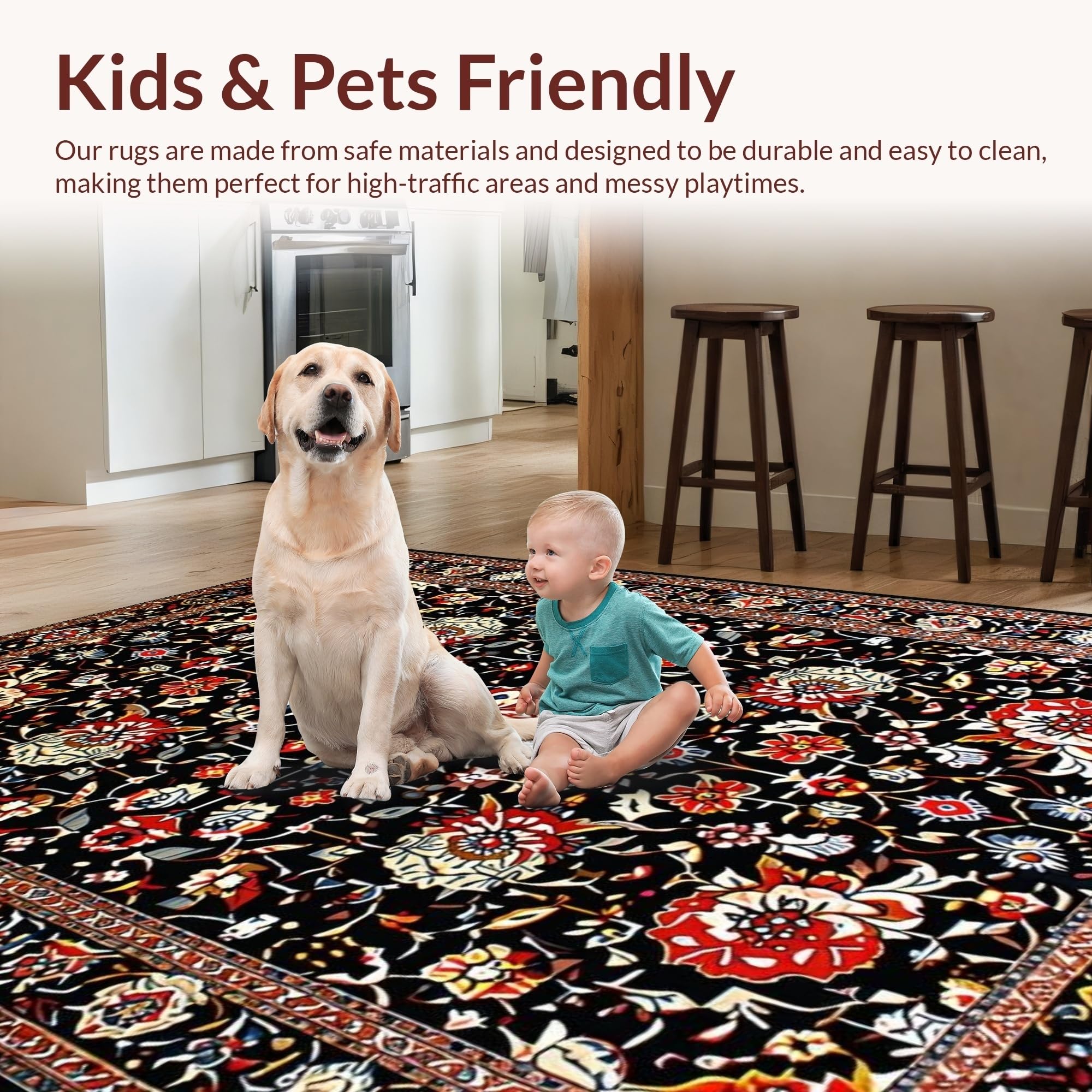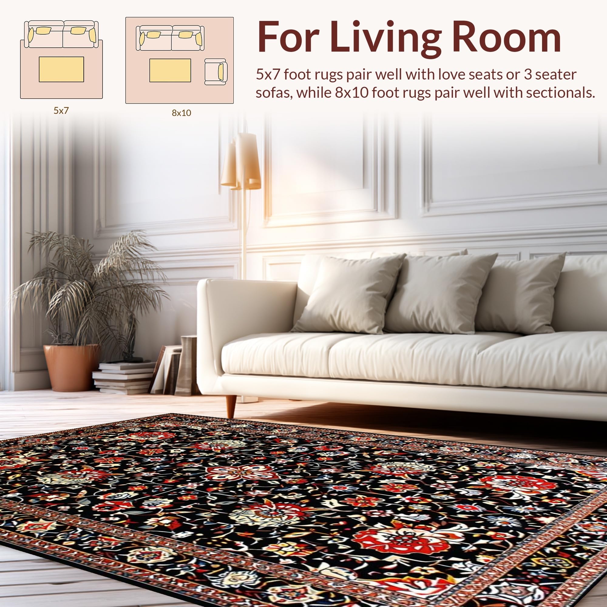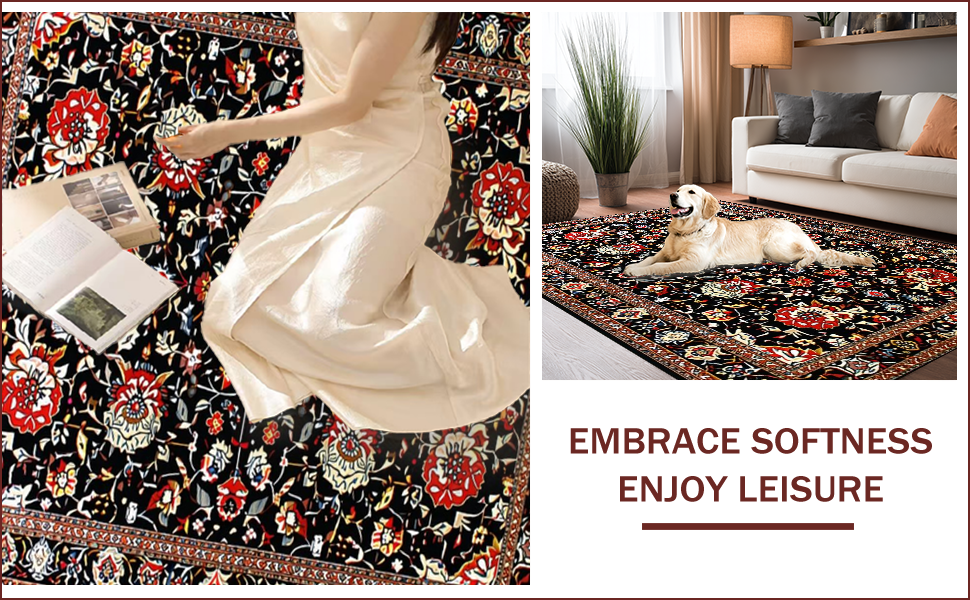 Ultra Soft Area Rug, Non Slip, Stain Resistant, Washable Area Rugs for Living Room, Bedroom, Chic Artistic Black Blossom Design(Black) Overview: