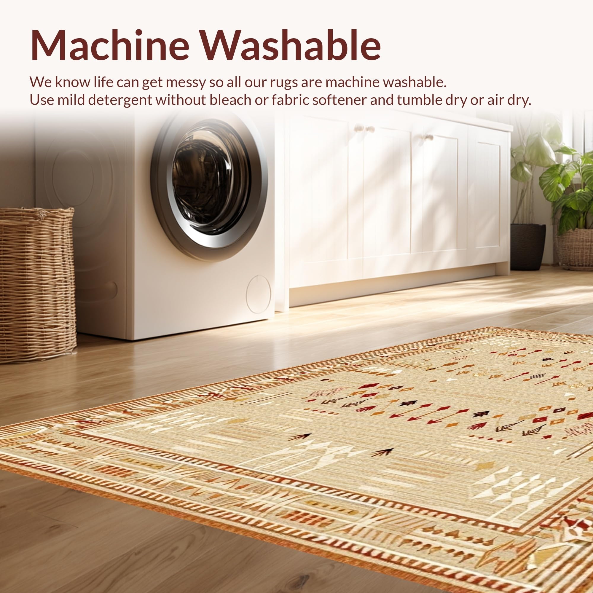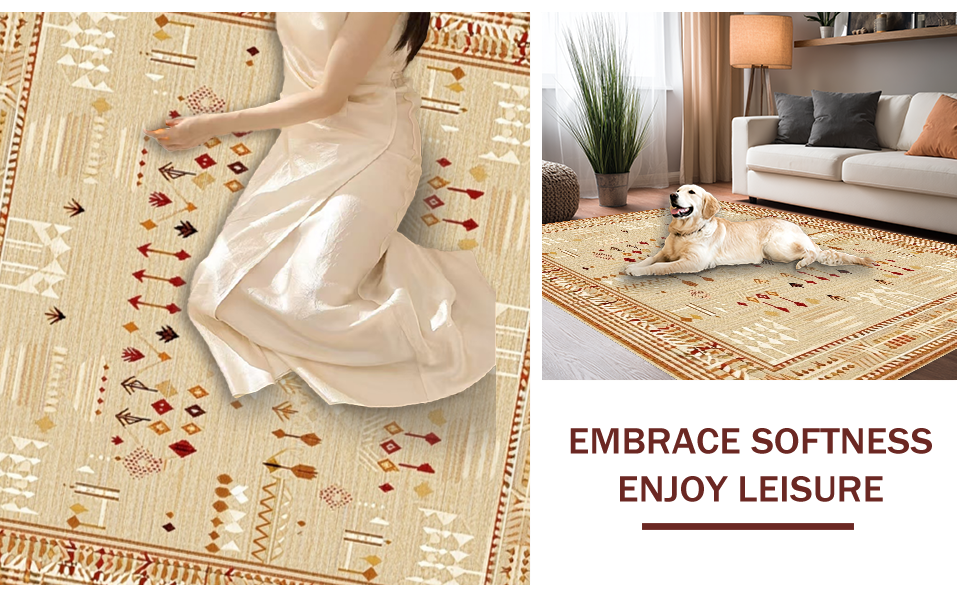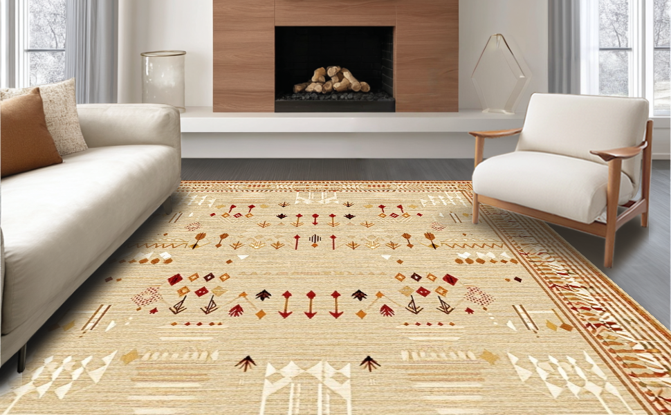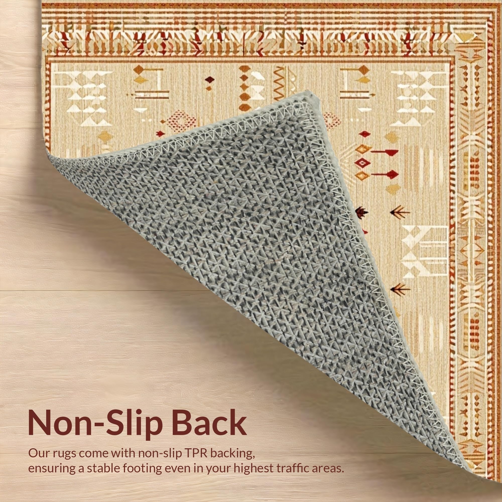 Ultra Soft Area Rug, Non Slip, Stain Resistant, Washable Area Rugs for Living Room, Bedroom, Chic Autumnal Geometric Flair(Beige) Overview:
