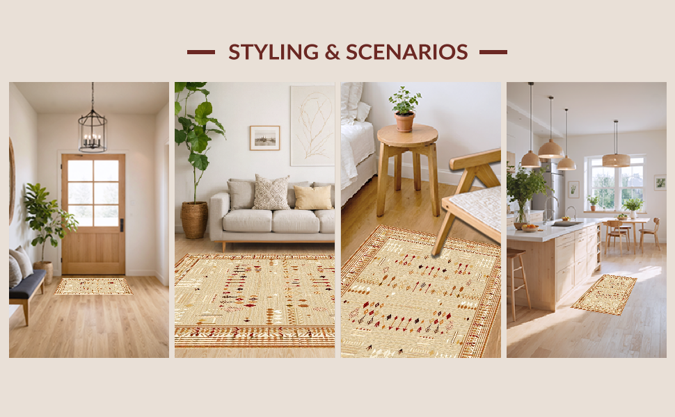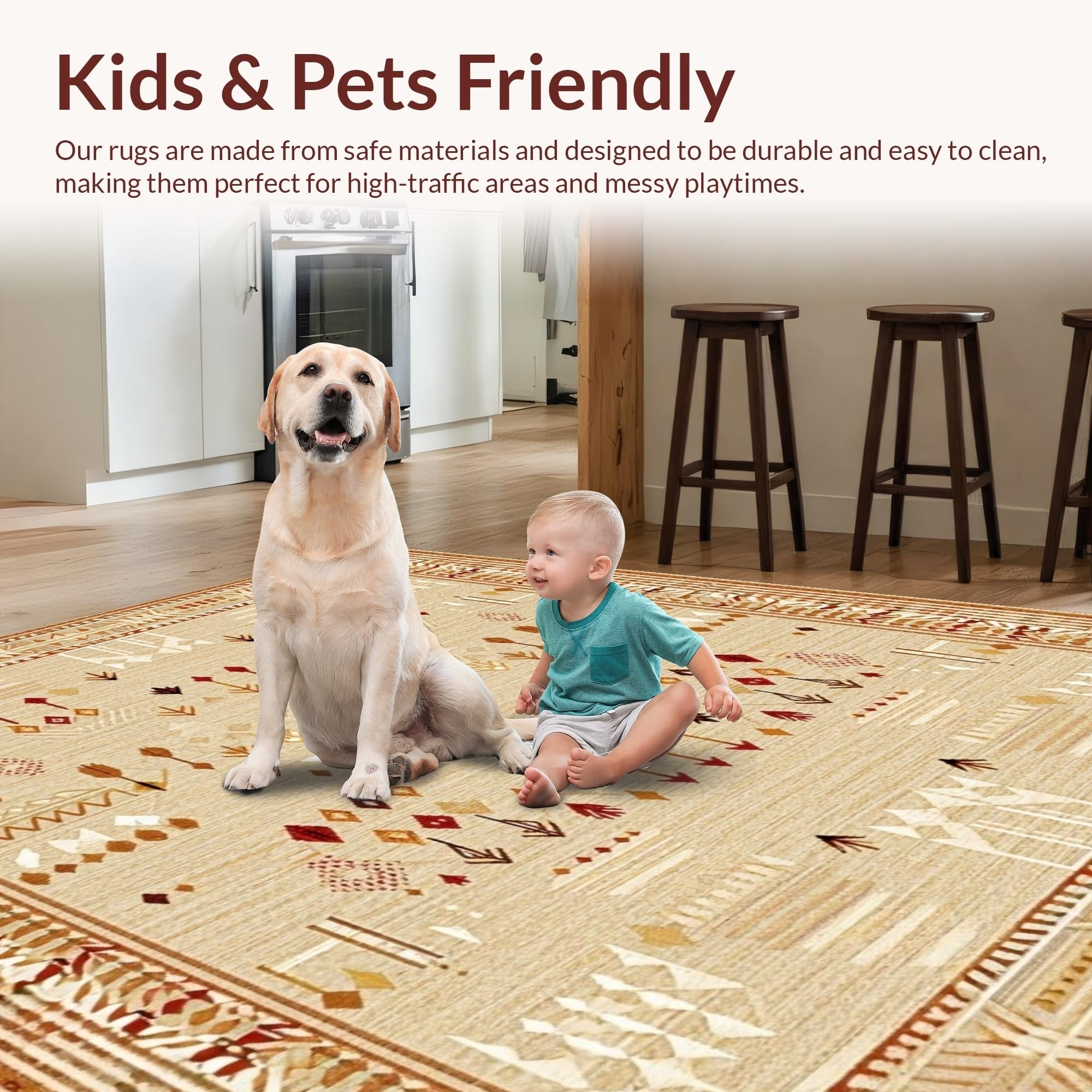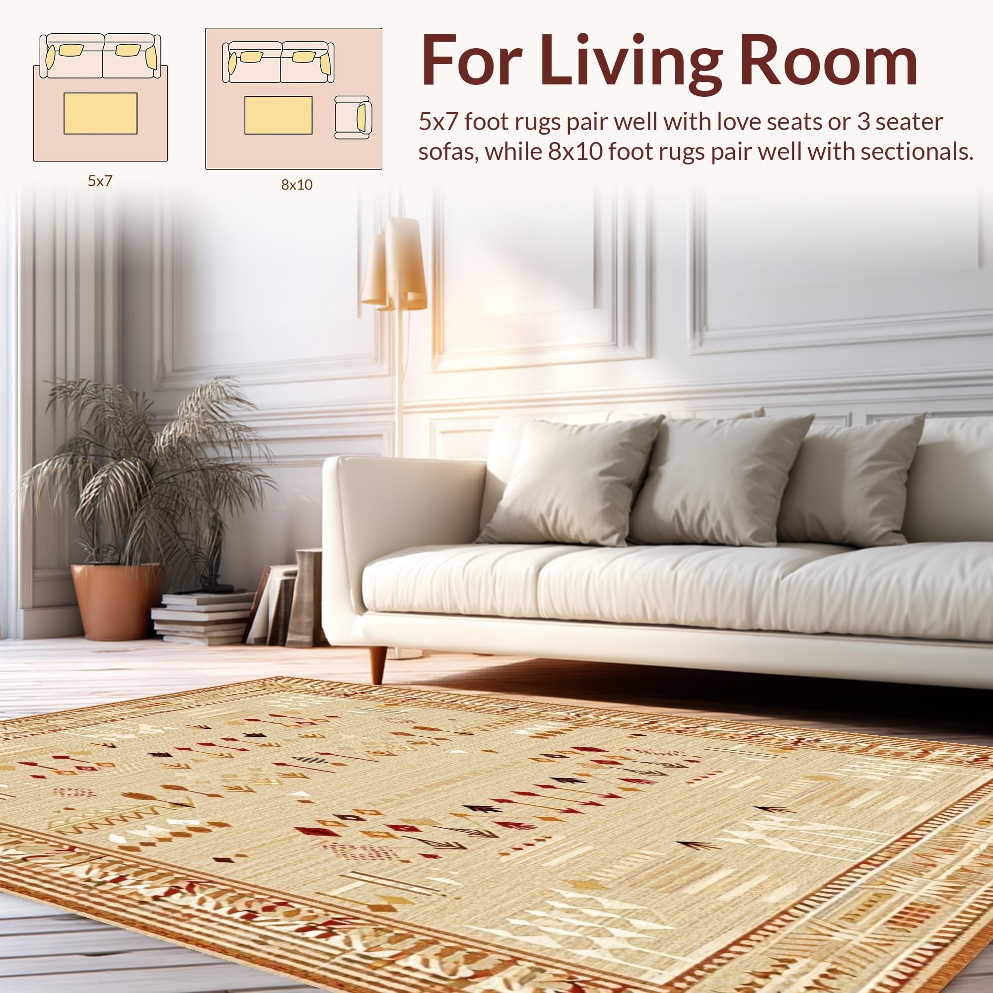 Ultra Soft Area Rug, Non Slip, Stain Resistant, Washable Area Rugs for Living Room, Bedroom, Chic Autumnal Geometric Flair(Beige) Overview: