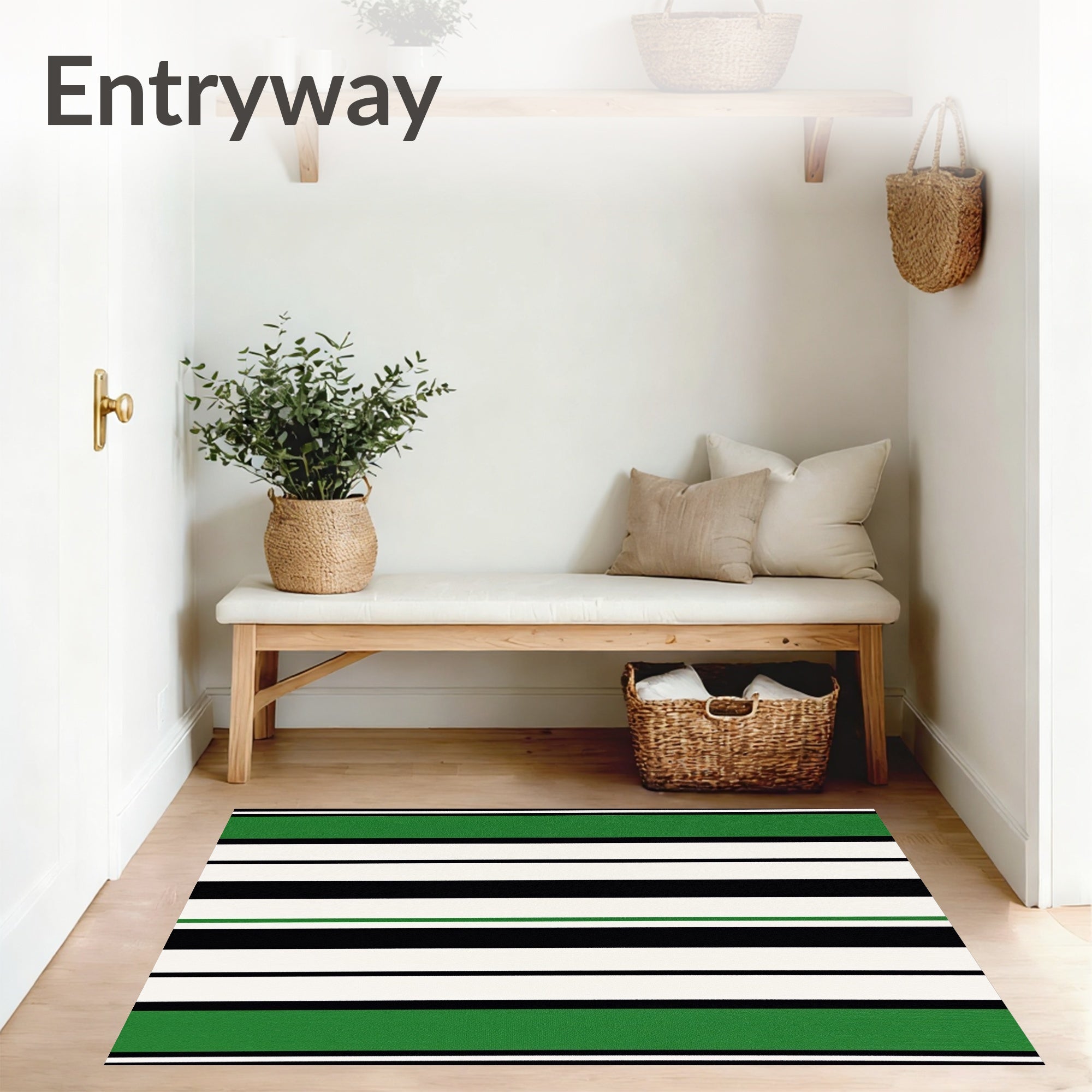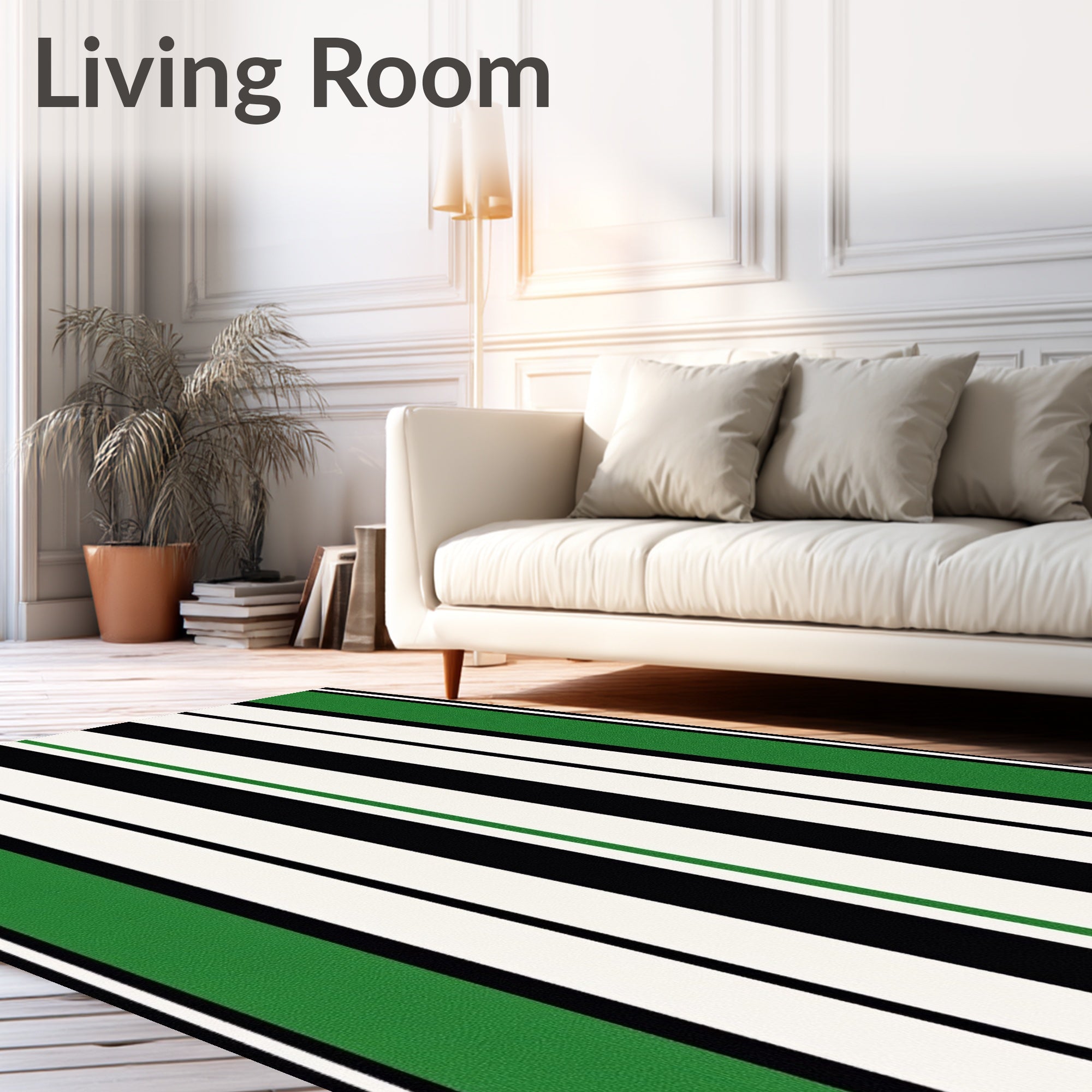 Ultra Soft Area Rug, Non Slip, Stain Resistant, Washable Area Rugs for Living Room, Bedroom, Chic Banded Design Festive Decoration(Green) Overview: