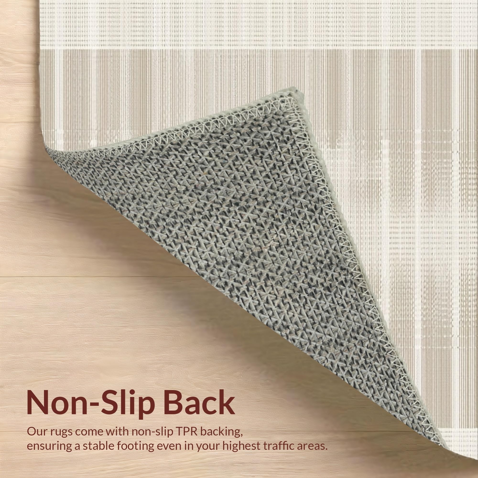 Ultra Soft Area Rug, Non Slip, Stain Resistant, Washable Area Rugs for Living Room, Bedroom, Chic Beige Abstract Linear Motif(Beige) Overview: