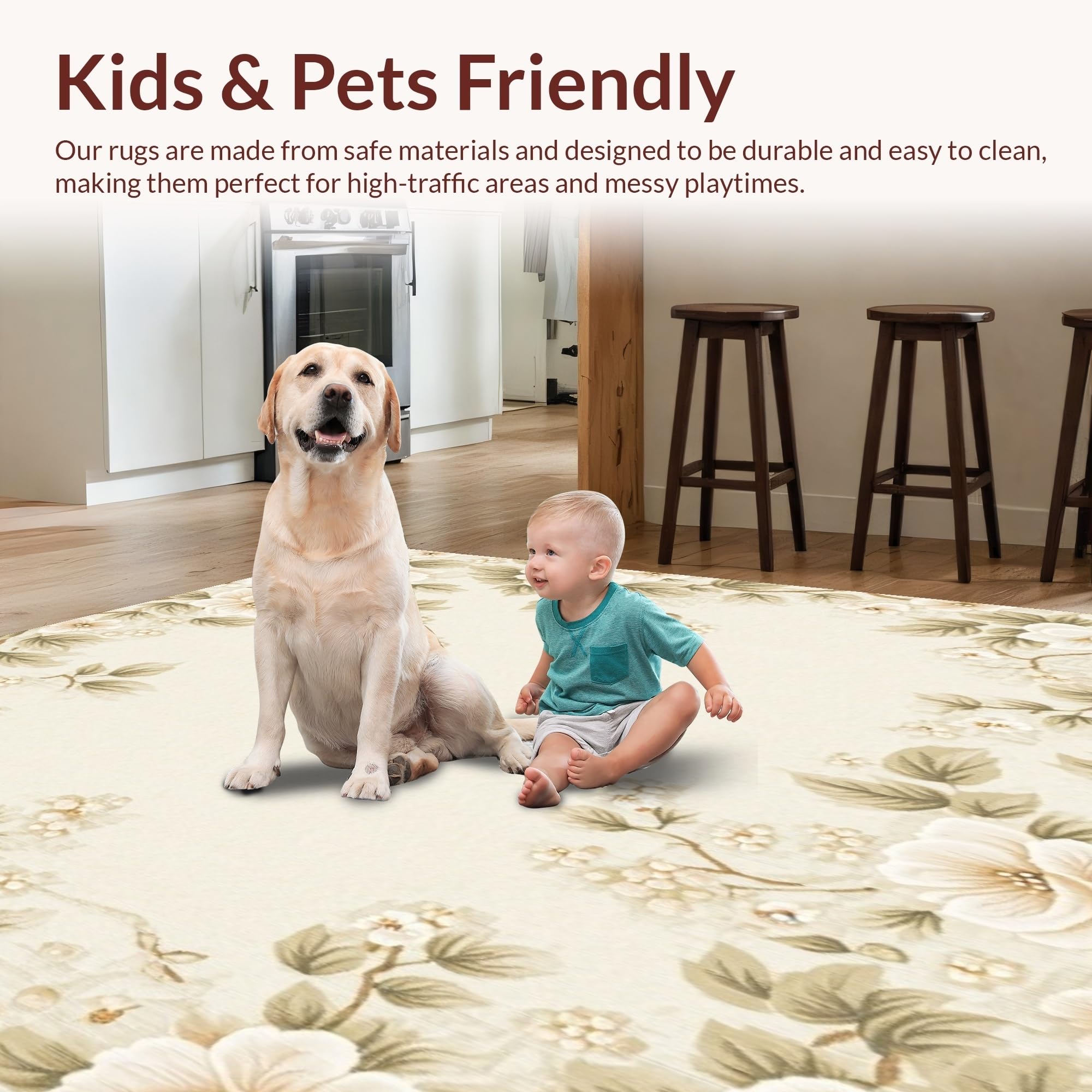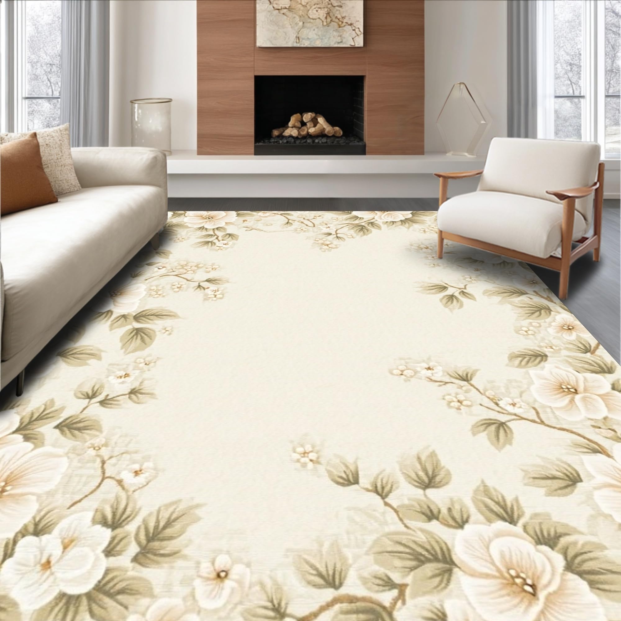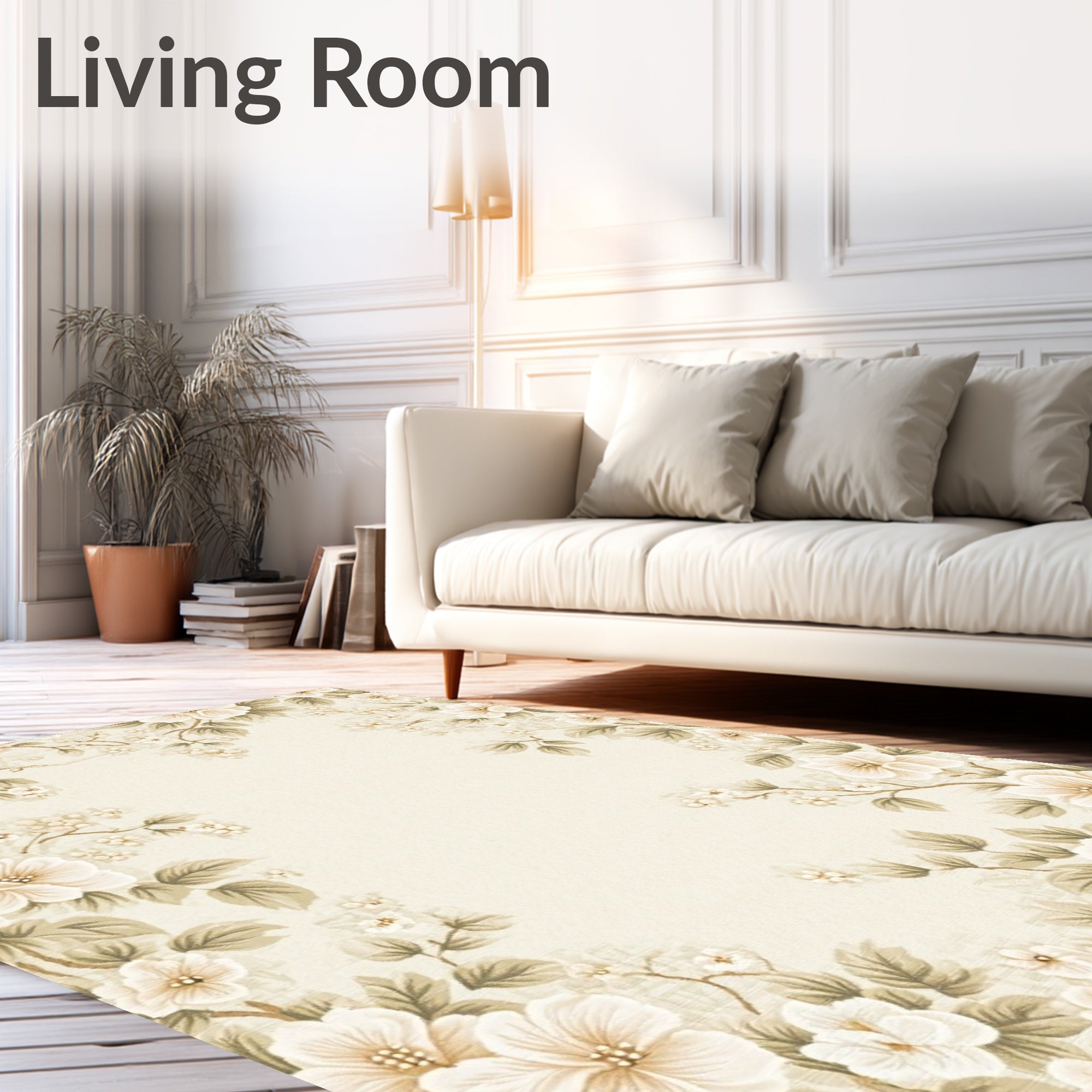 Ultra Soft Area Rug, Non Slip, Stain Resistant, Washable Area Rugs for Living Room, Bedroom, Chic Beige Area Featuring Lush Floral Design Elements(Beige) Overview: