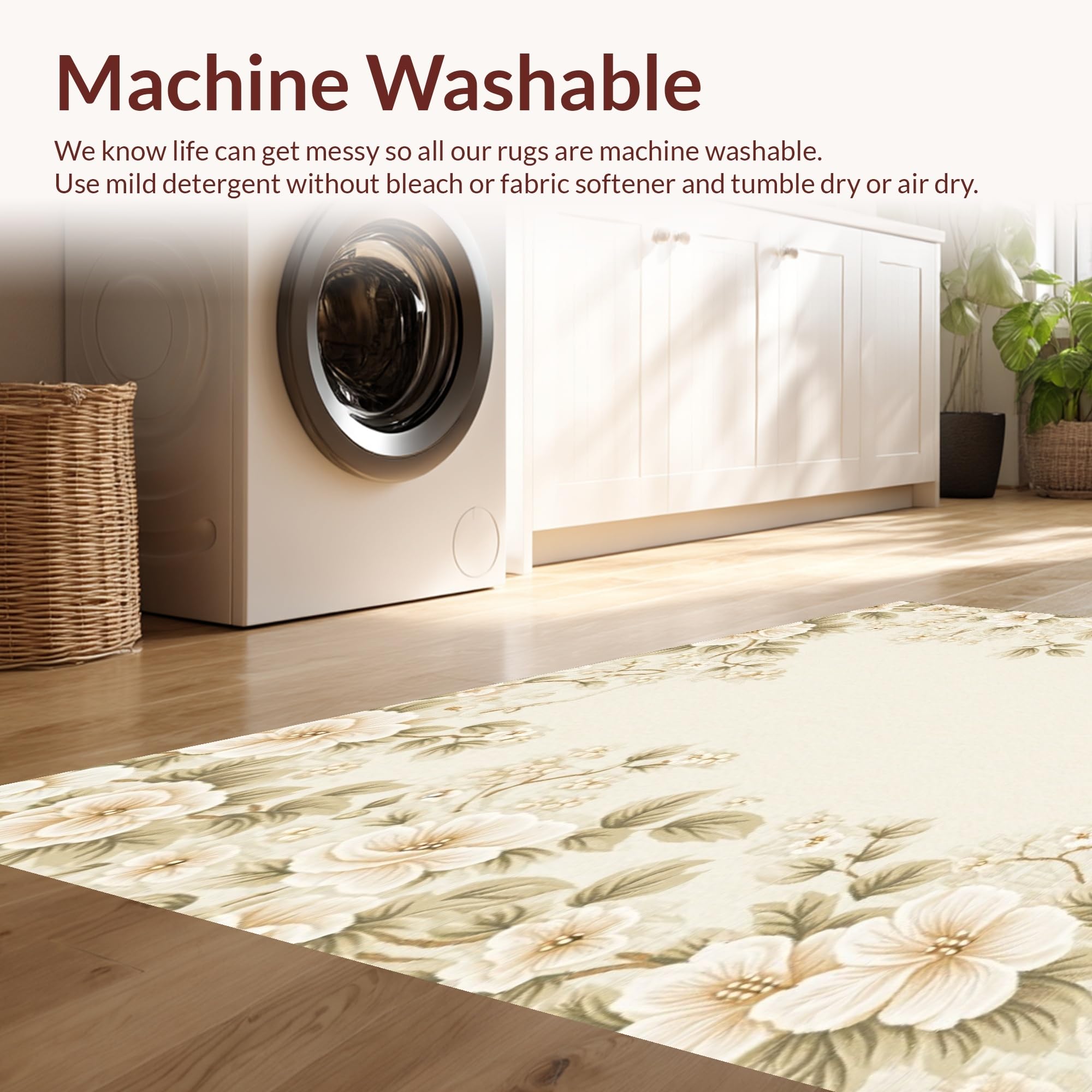 - Machine Washable: Our rugs can be easily thrown in the wash machine.