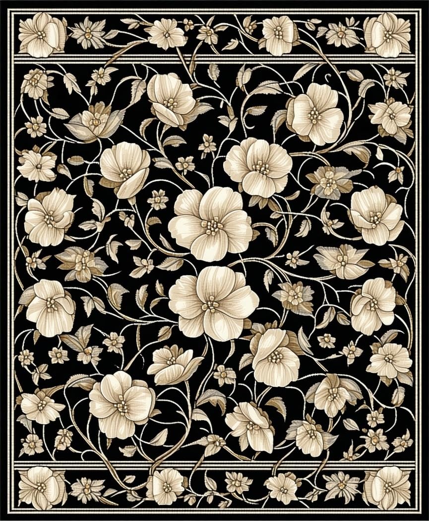 Chic Black and Beige Area with Vintage Floral Accents(Black)