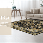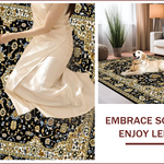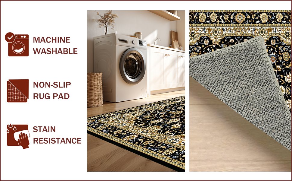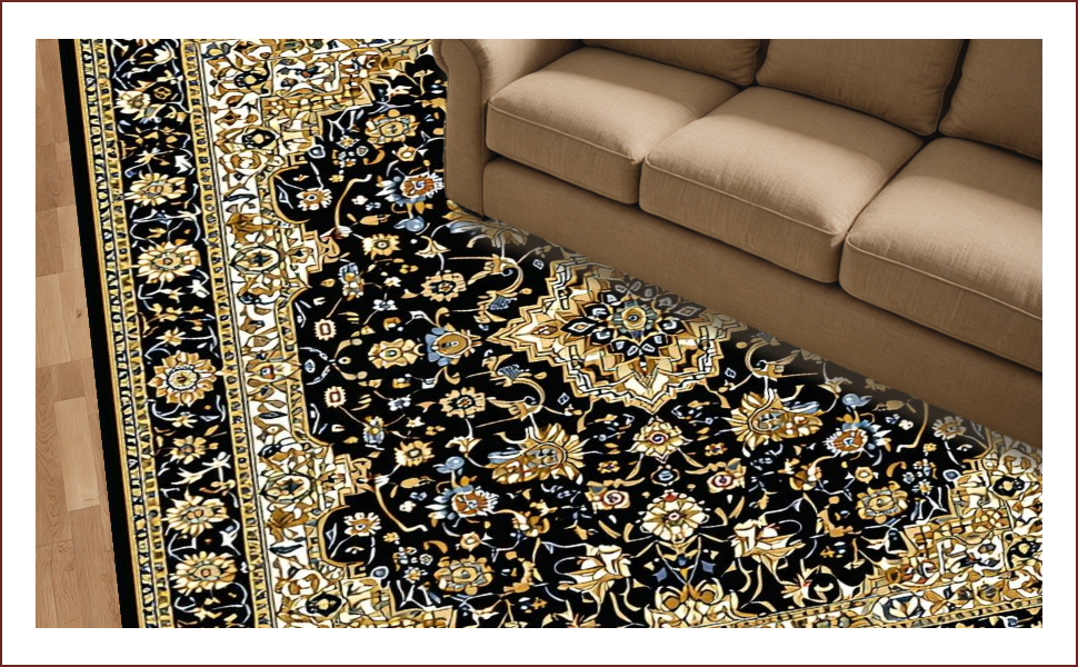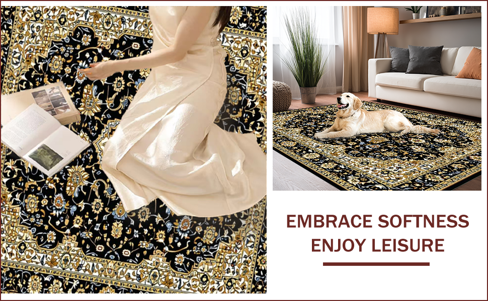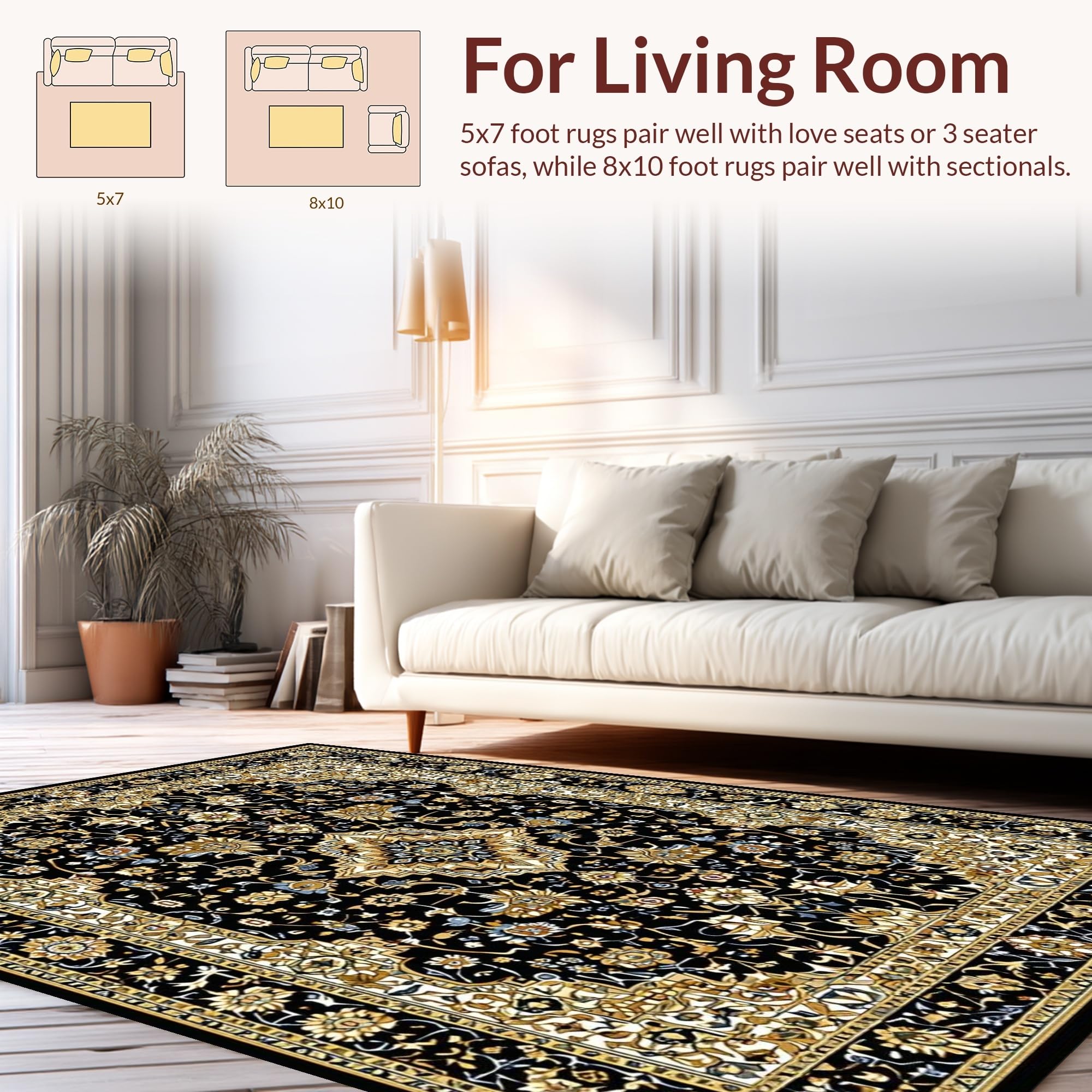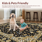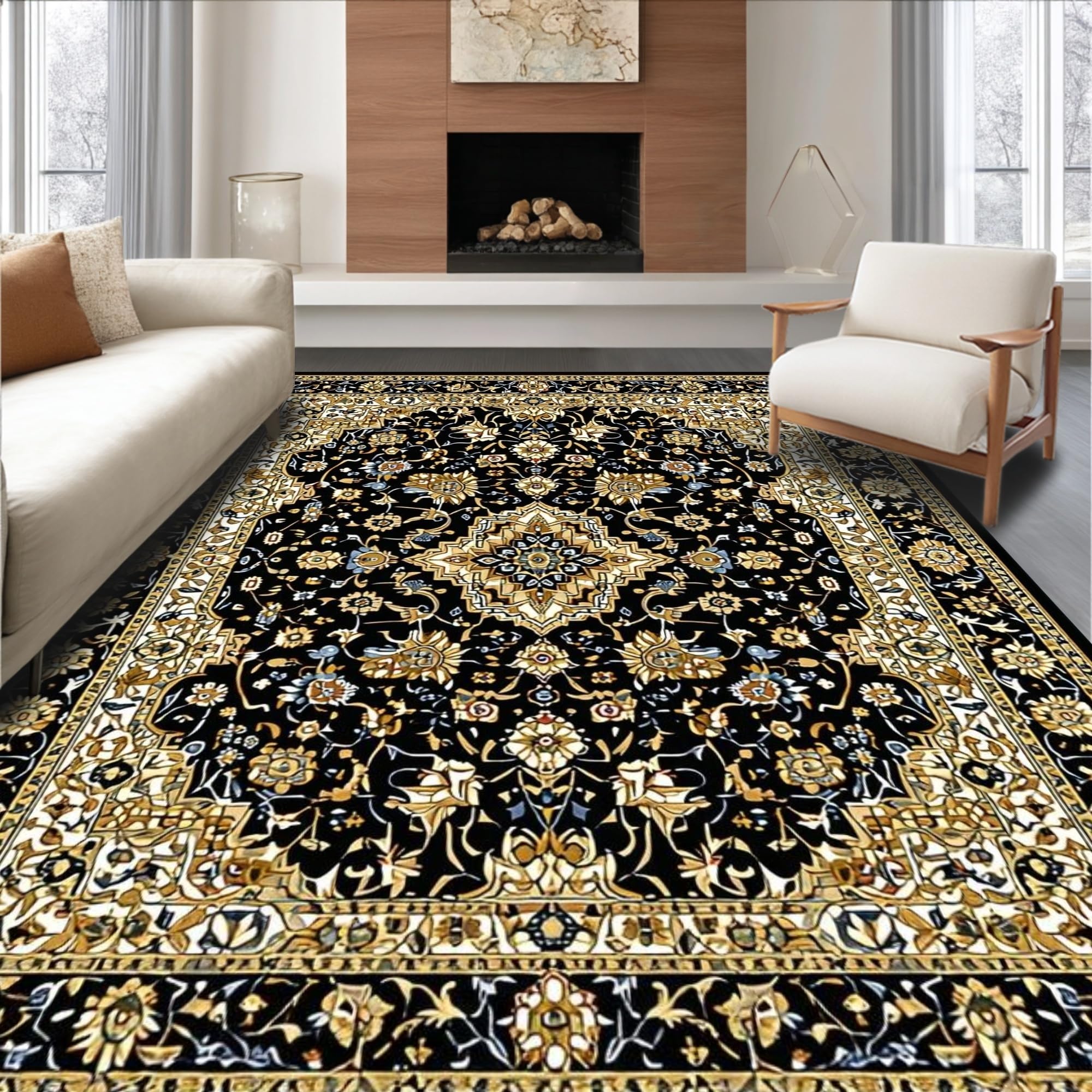 Ultra Soft Area Rug, Non Slip, Stain Resistant, Washable Area Rugs for Living Room, Bedroom, Chic Black and Gold Motif(Black) Overview: