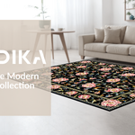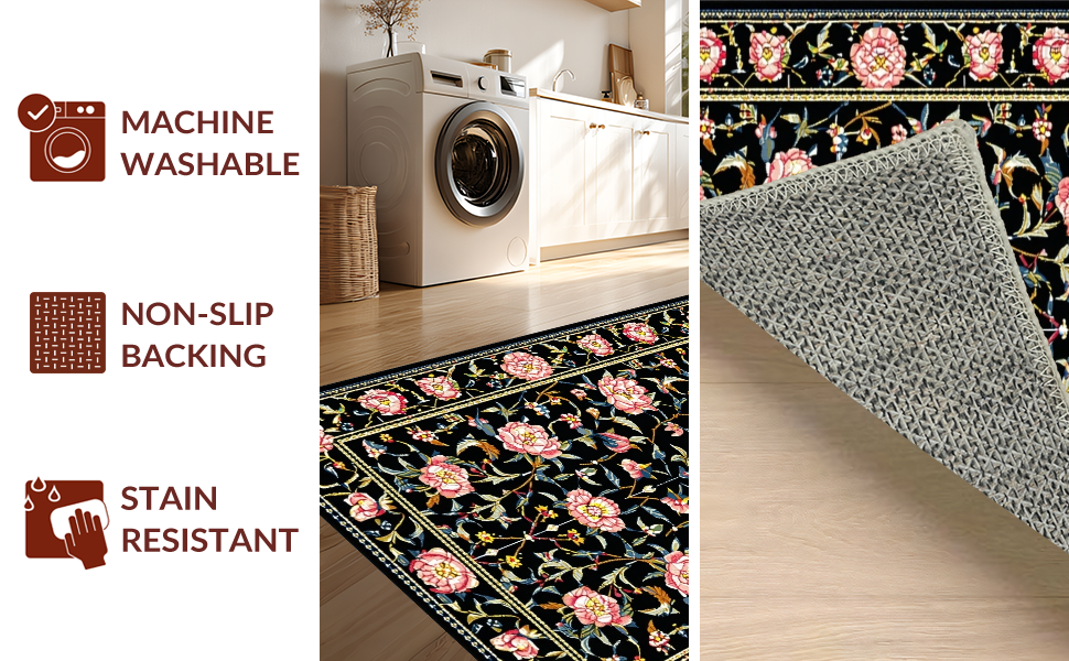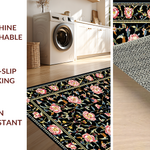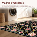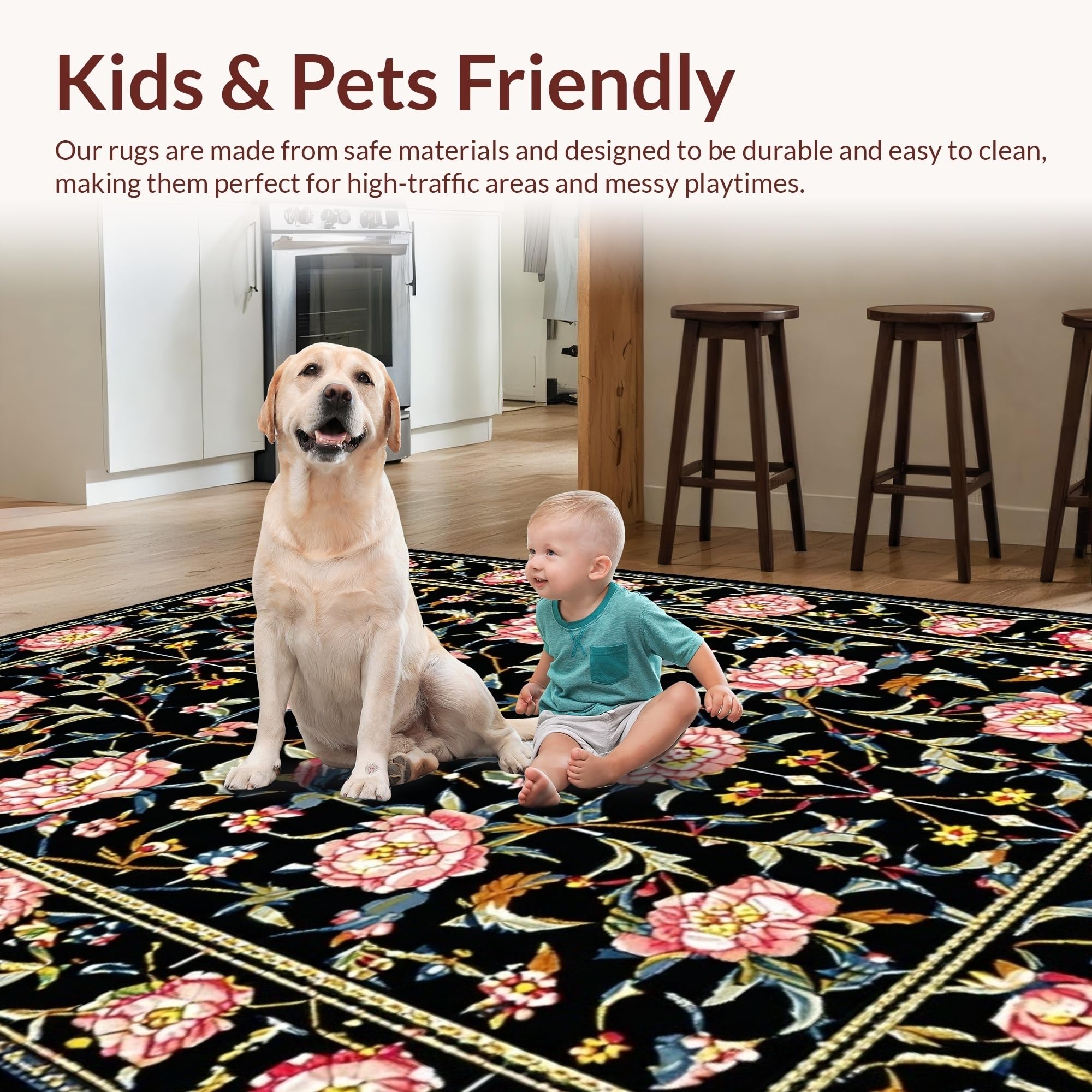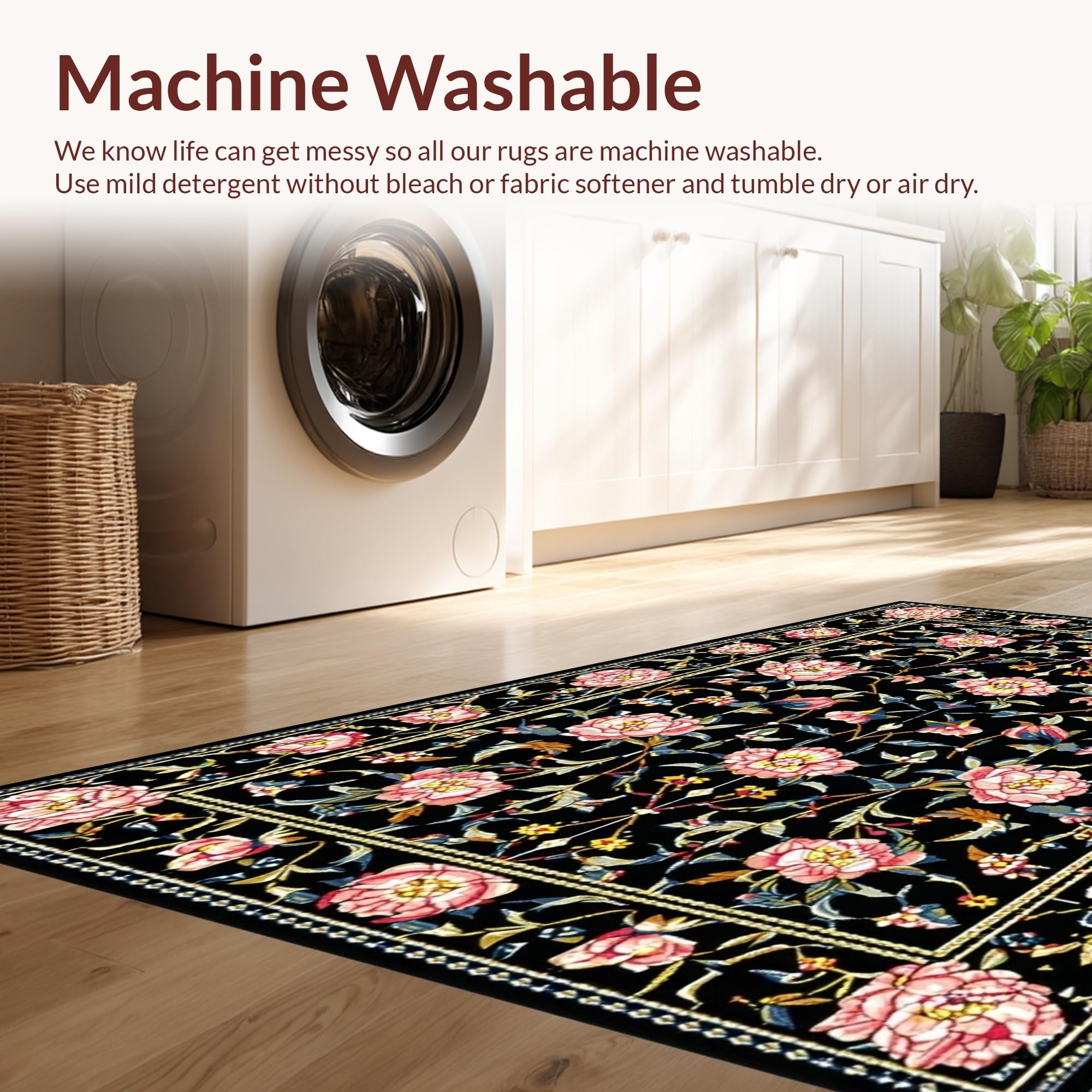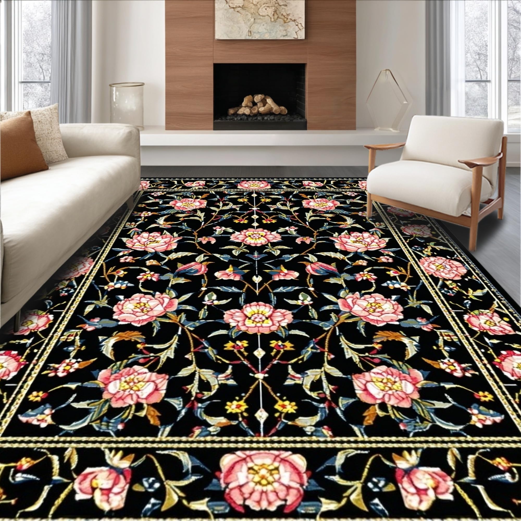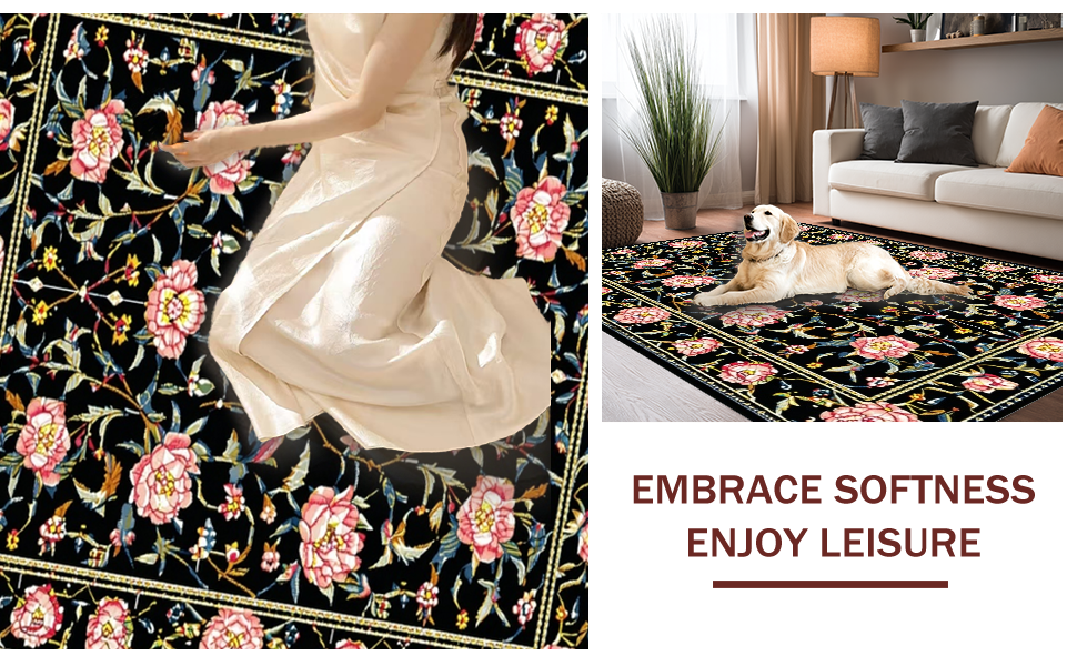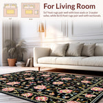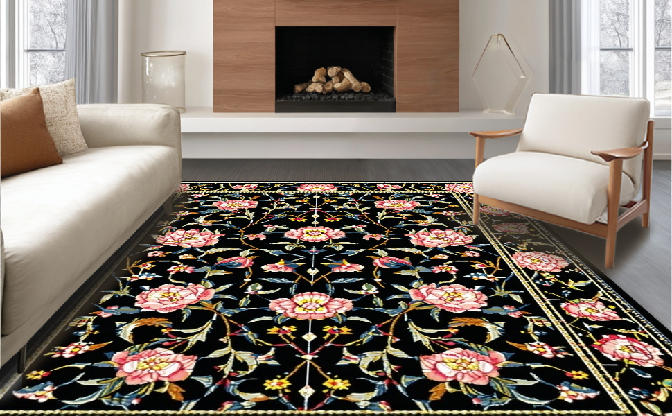Ultra Soft Area Rug, Non Slip, Stain Resistant, Washable Area Rugs for Living Room, Bedroom, Chic Black and Pink Blossom Style(Black) Overview: