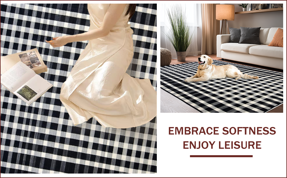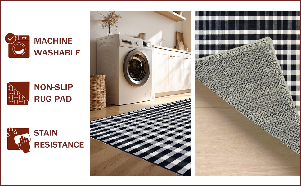 Ultra Soft Area Rug, Non Slip, Stain Resistant, Washable Area Rugs for Living Room, Bedroom, Chic Black and White Checkerboard Style(Black) Overview: