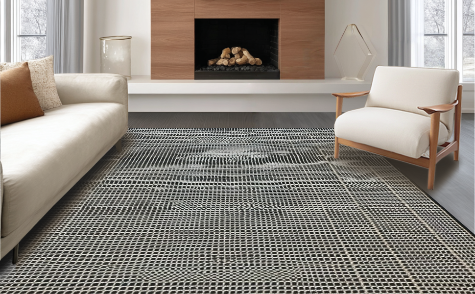 Ultra Soft Area Rug, Non Slip, Stain Resistant, Washable Area Rugs for Living Room, Bedroom, Chic Black and White Diamond Pattern(Gray) Overview: