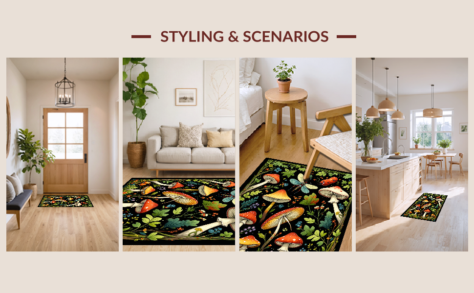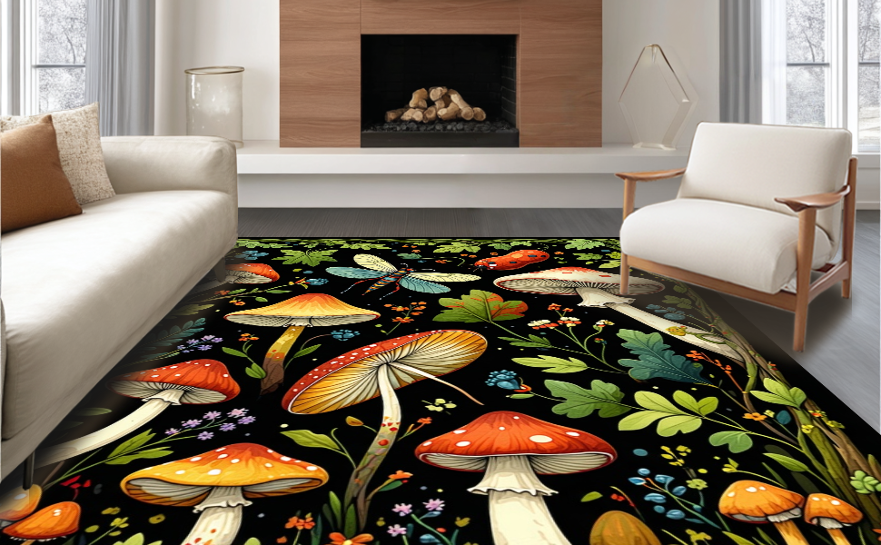Ultra Soft Area Rug, Non Slip, Stain Resistant, Washable Area Rugs for Living Room, Bedroom, Chic Black and White Foliage(Red) Overview: