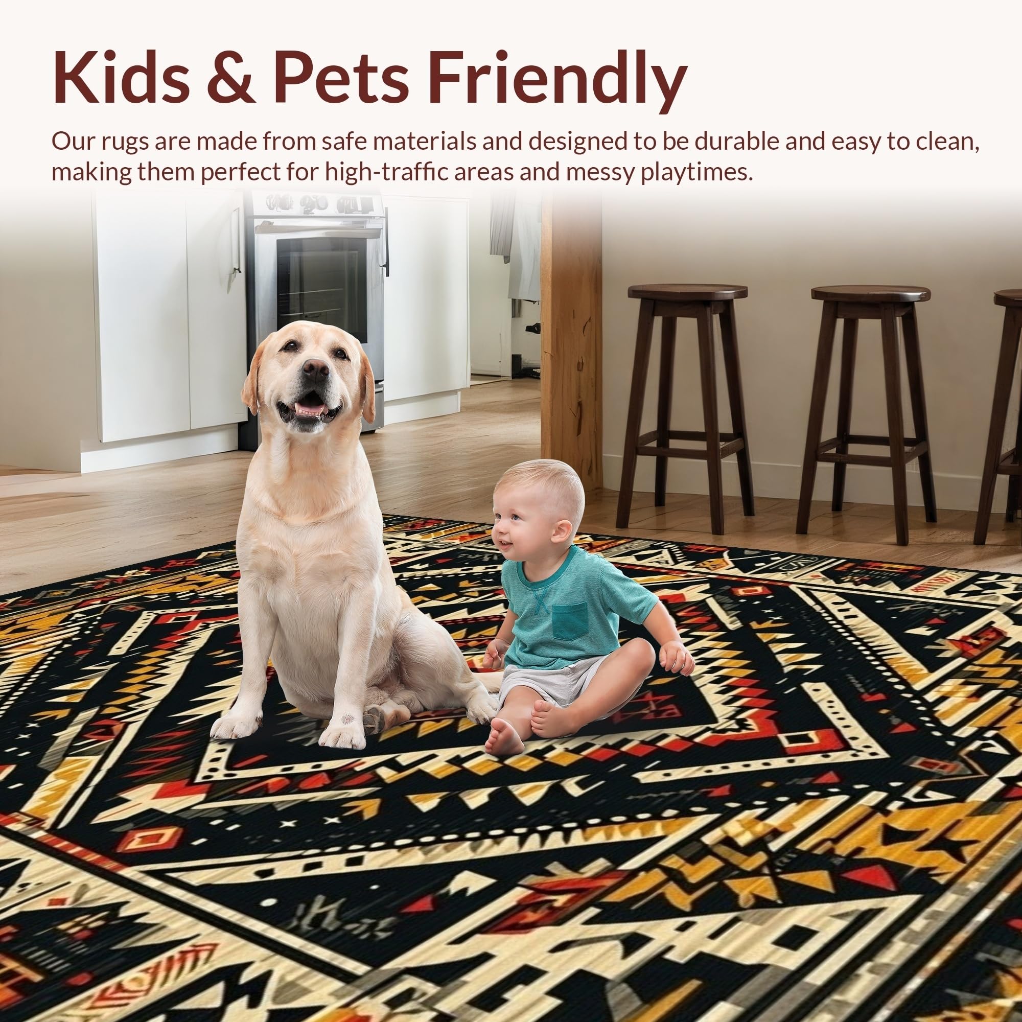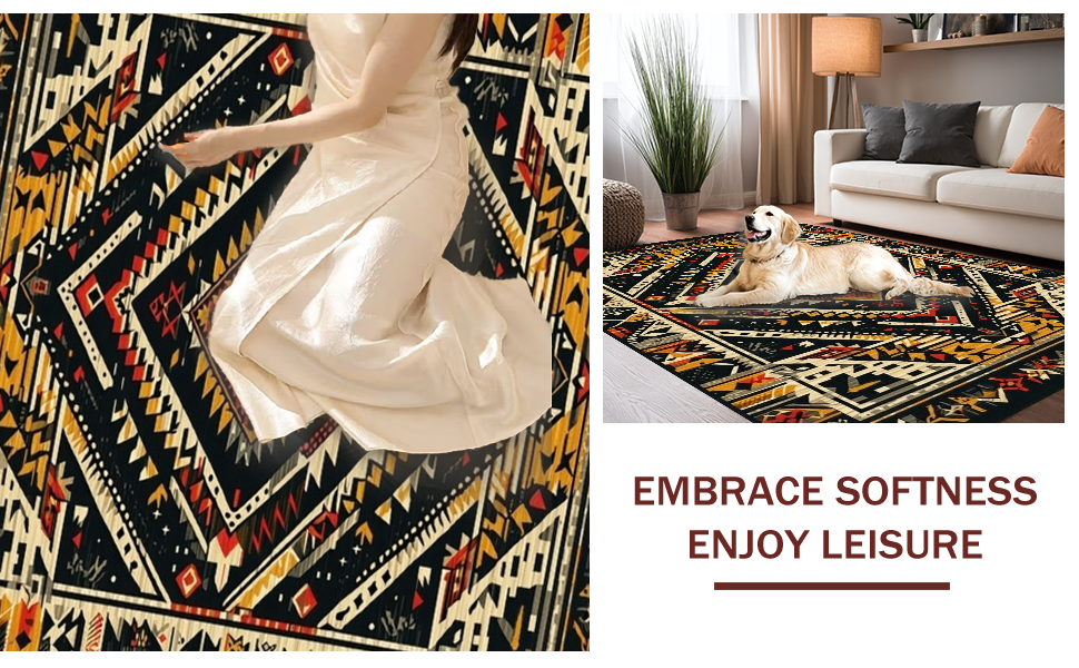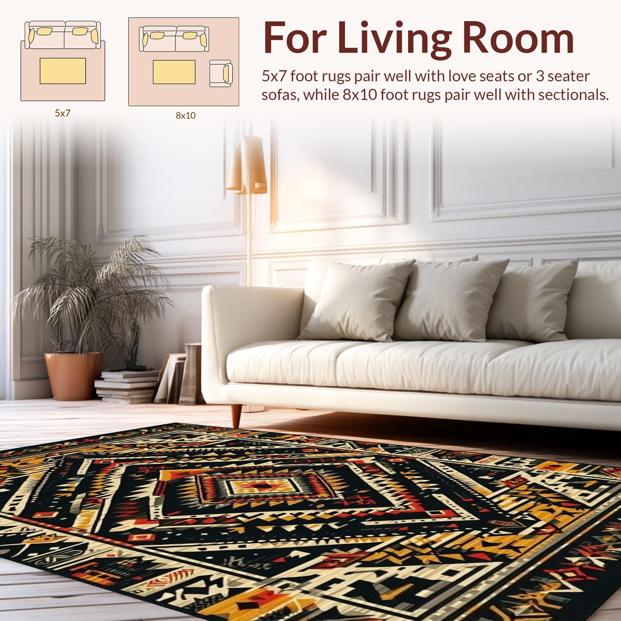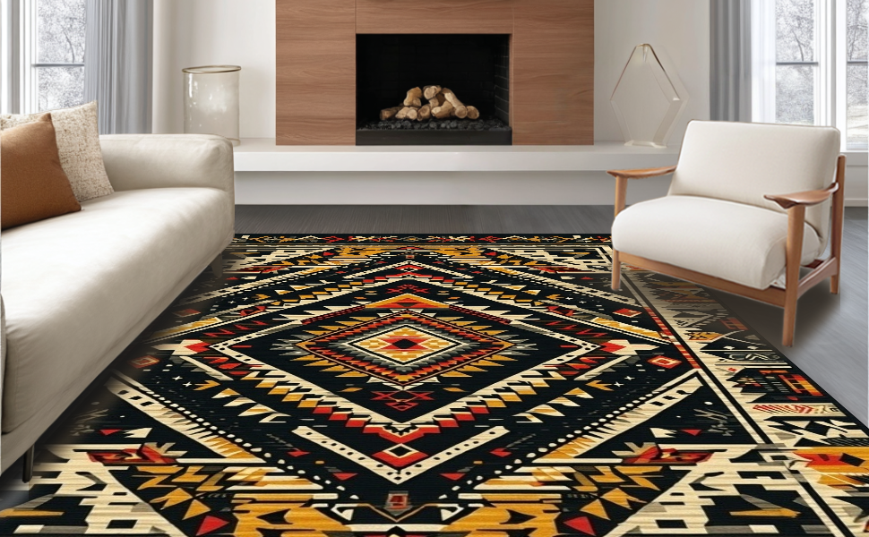 Ultra Soft Area Rug, Non Slip, Stain Resistant, Washable Area Rugs for Living Room, Bedroom, Chic Black and White Geometric Harmony(Black) Overview: