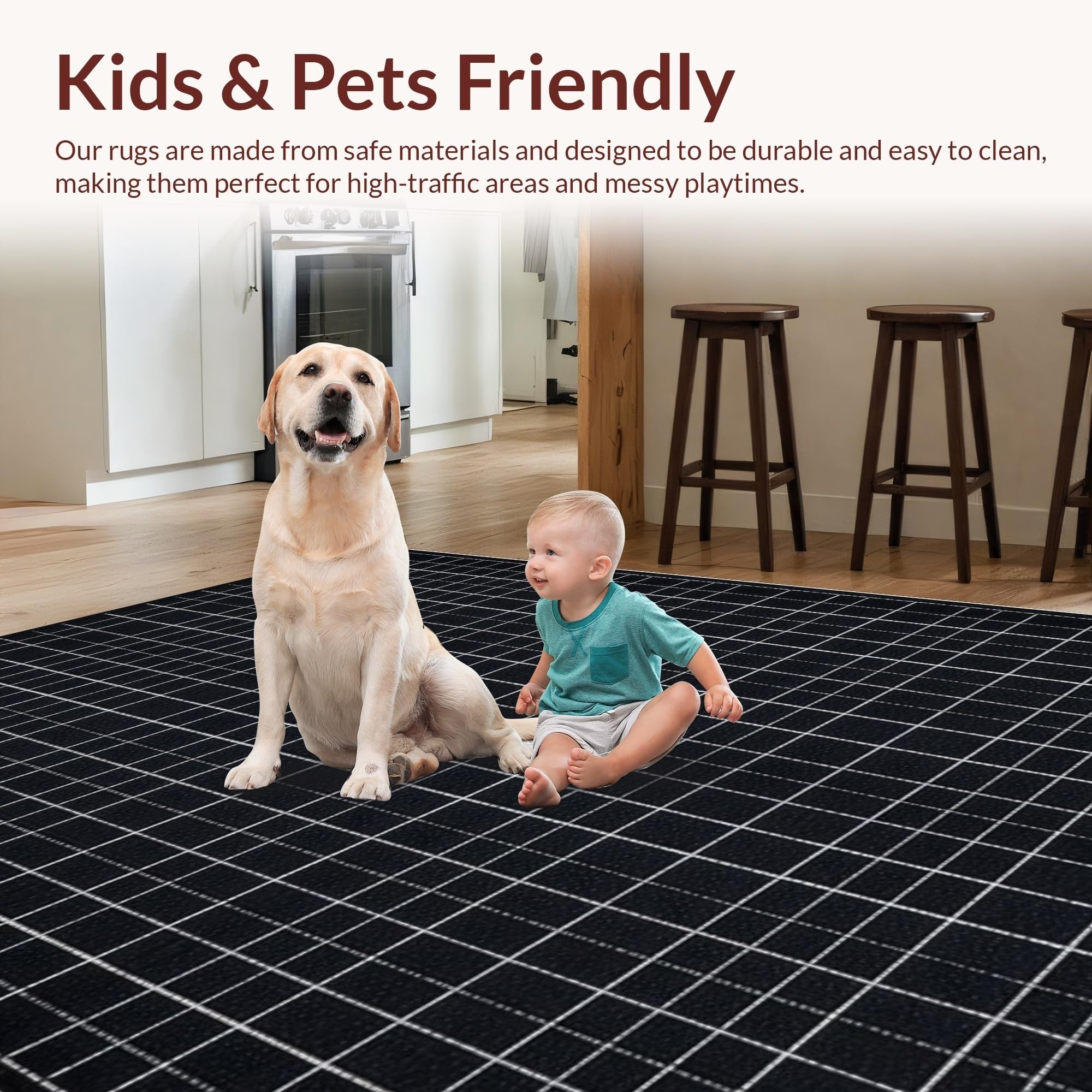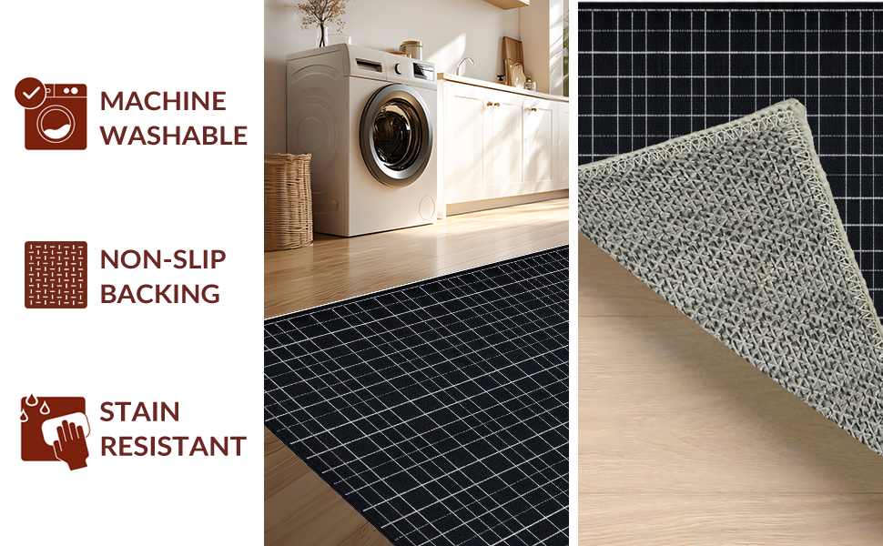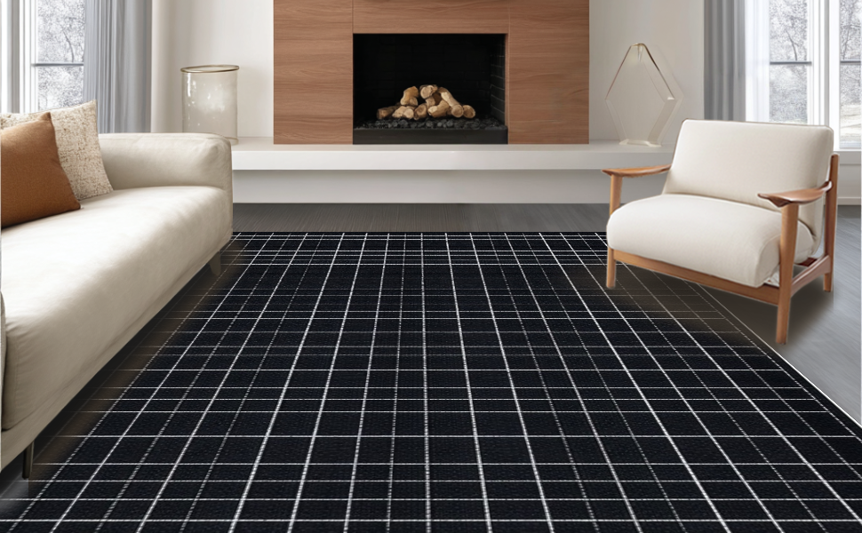 Ultra Soft Area Rug, Non Slip, Stain Resistant, Washable Area Rugs for Living Room, Bedroom, Chic Black and White Geometric(Black) Overview: