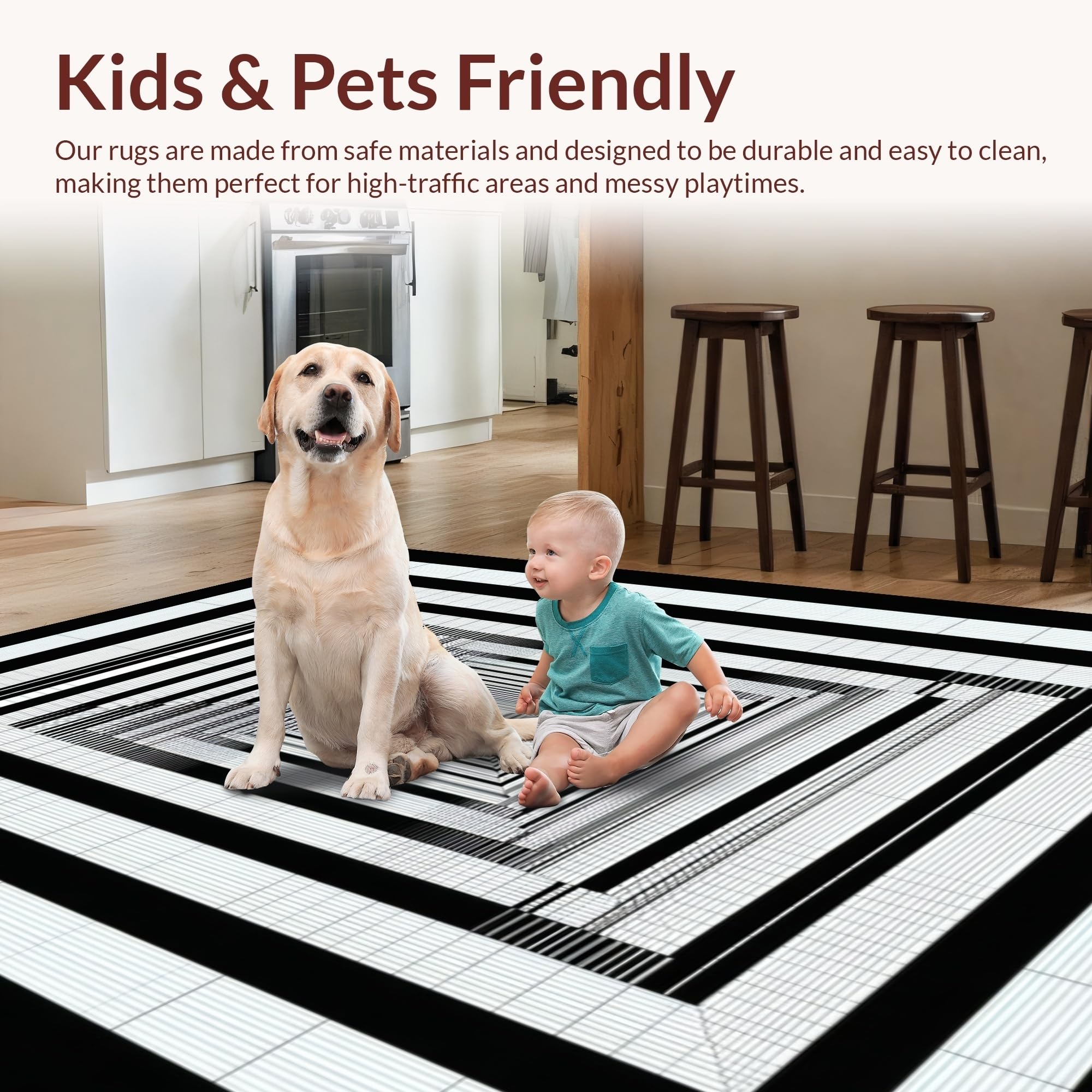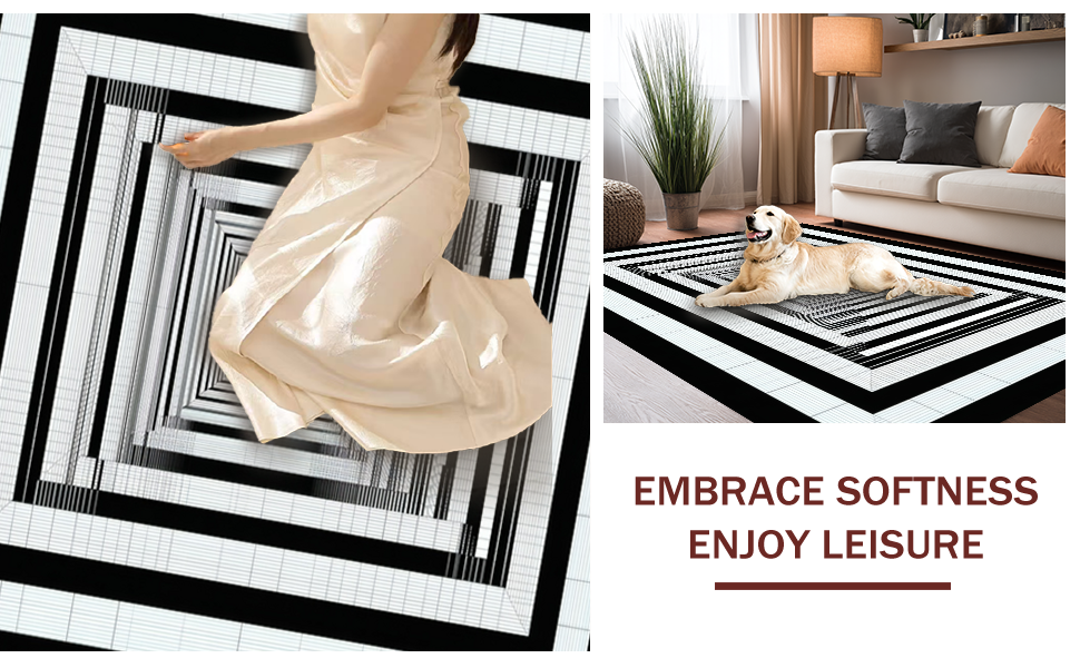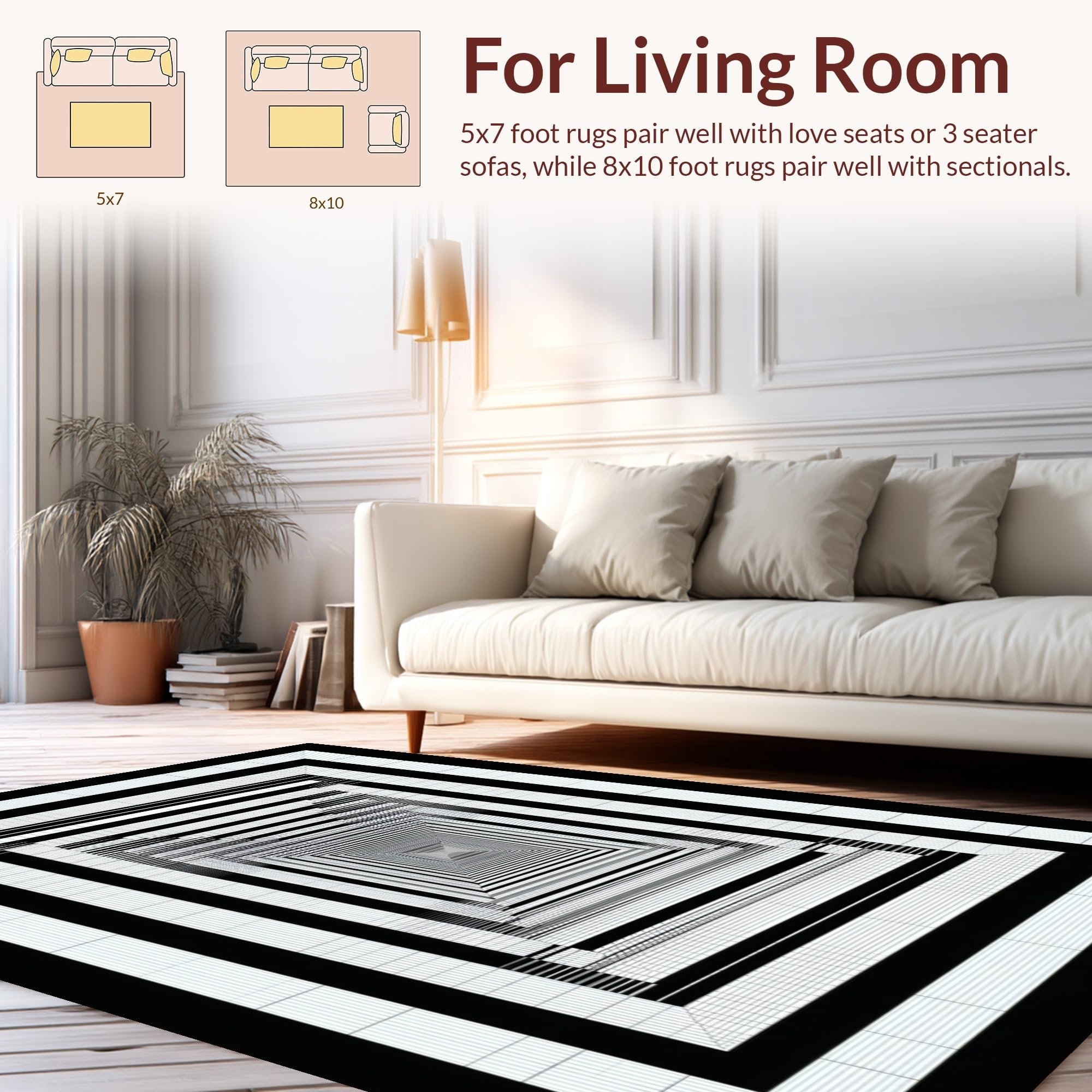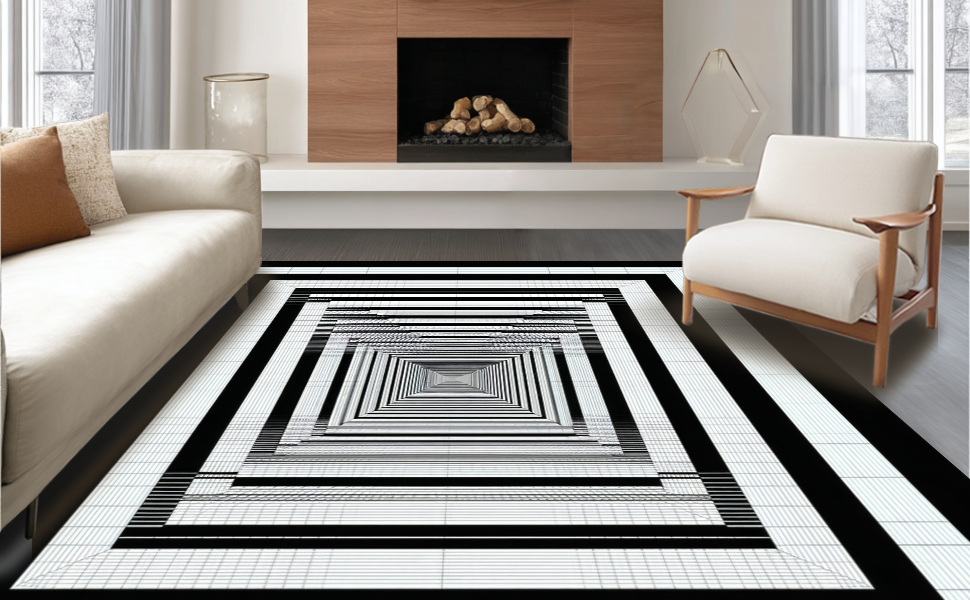 Ultra Soft Area Rug, Non Slip, Stain Resistant, Washable Area Rugs for Living Room, Bedroom, Chic Black and White Optical Pattern(Black) Overview:
