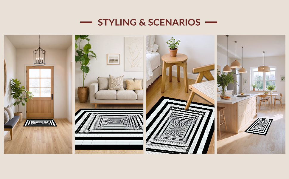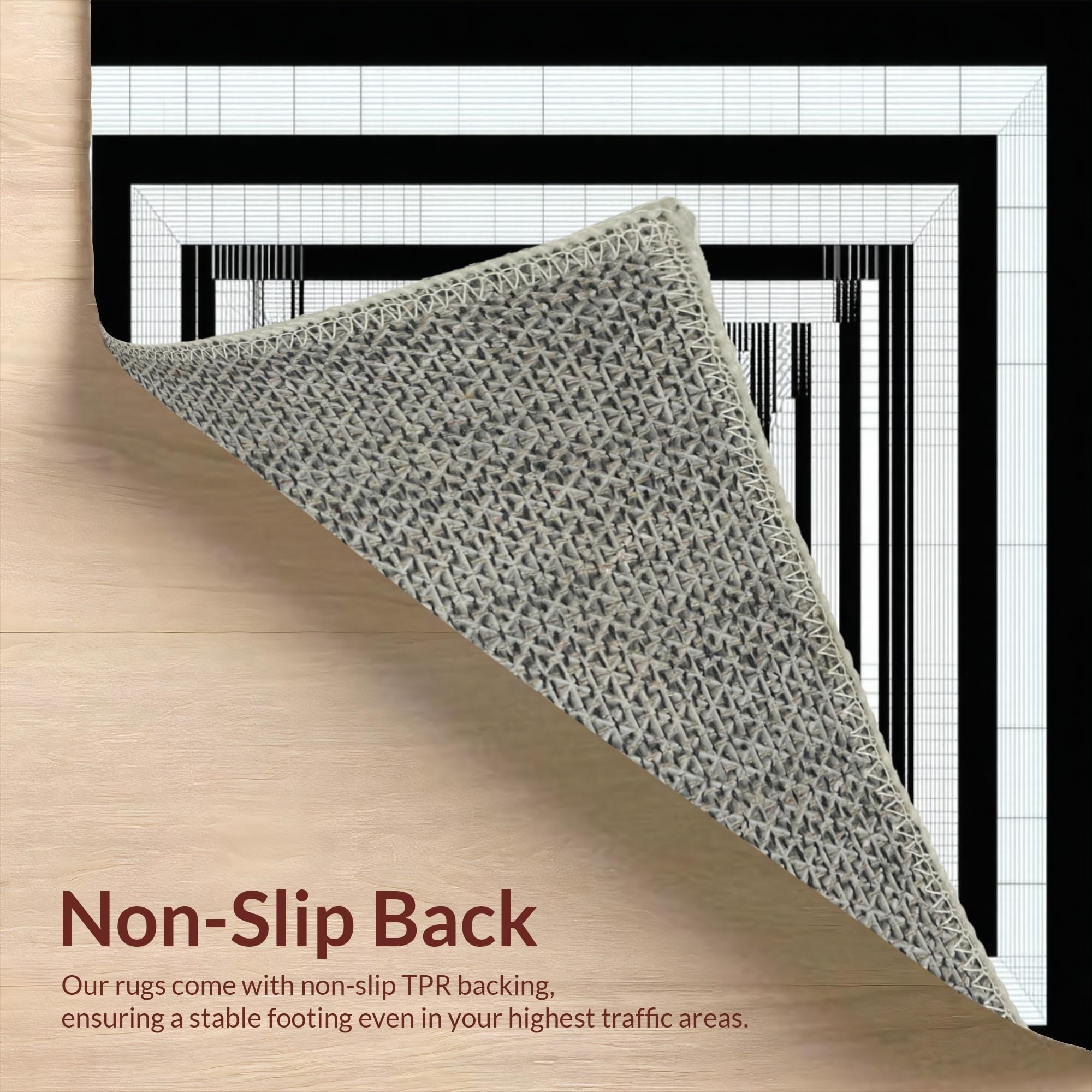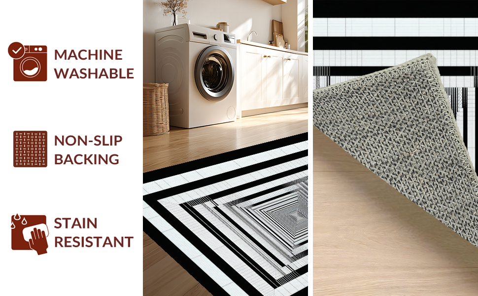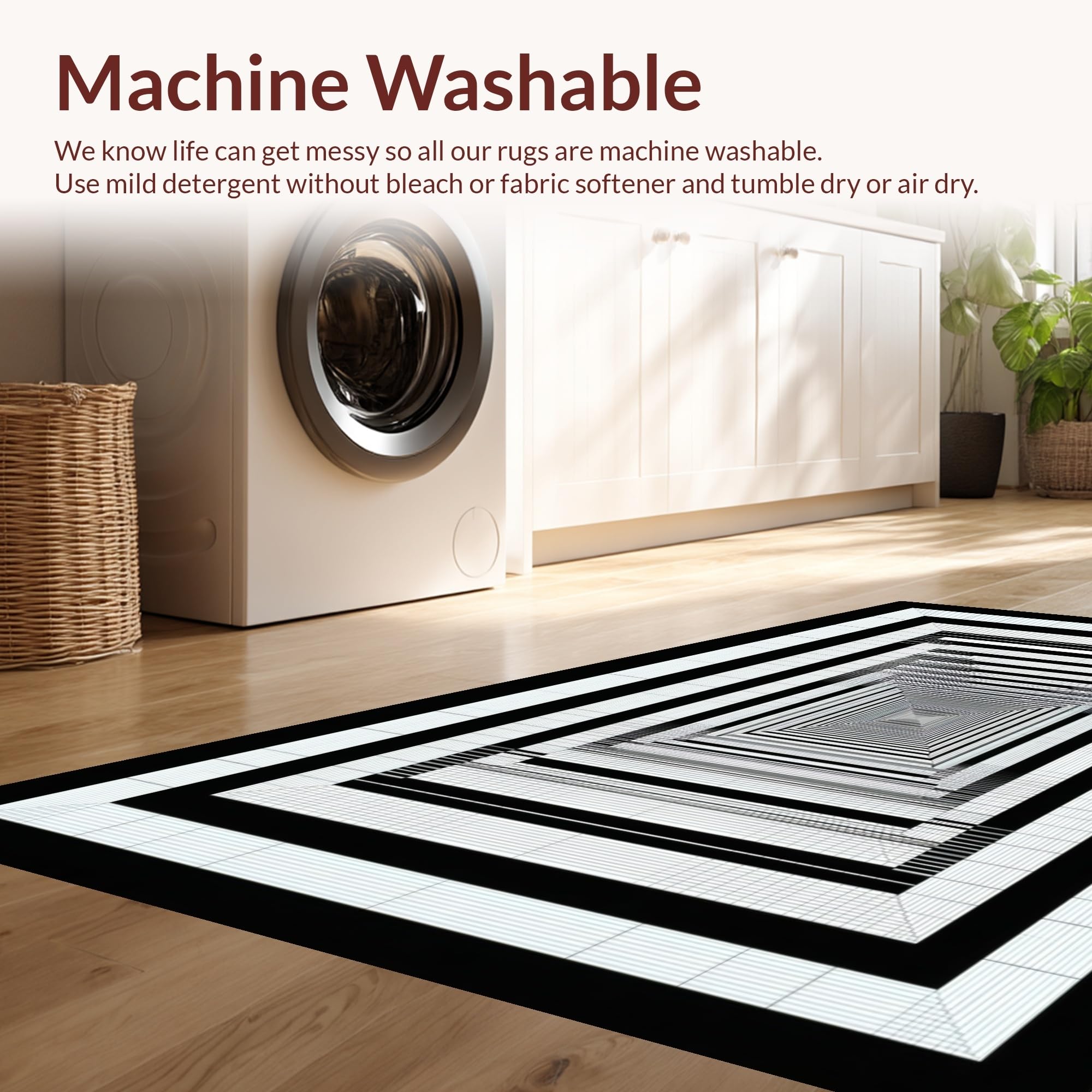 Ultra Soft Area Rug, Non Slip, Stain Resistant, Washable Area Rugs for Living Room, Bedroom, Chic Black and White Optical Pattern(Black) Overview: