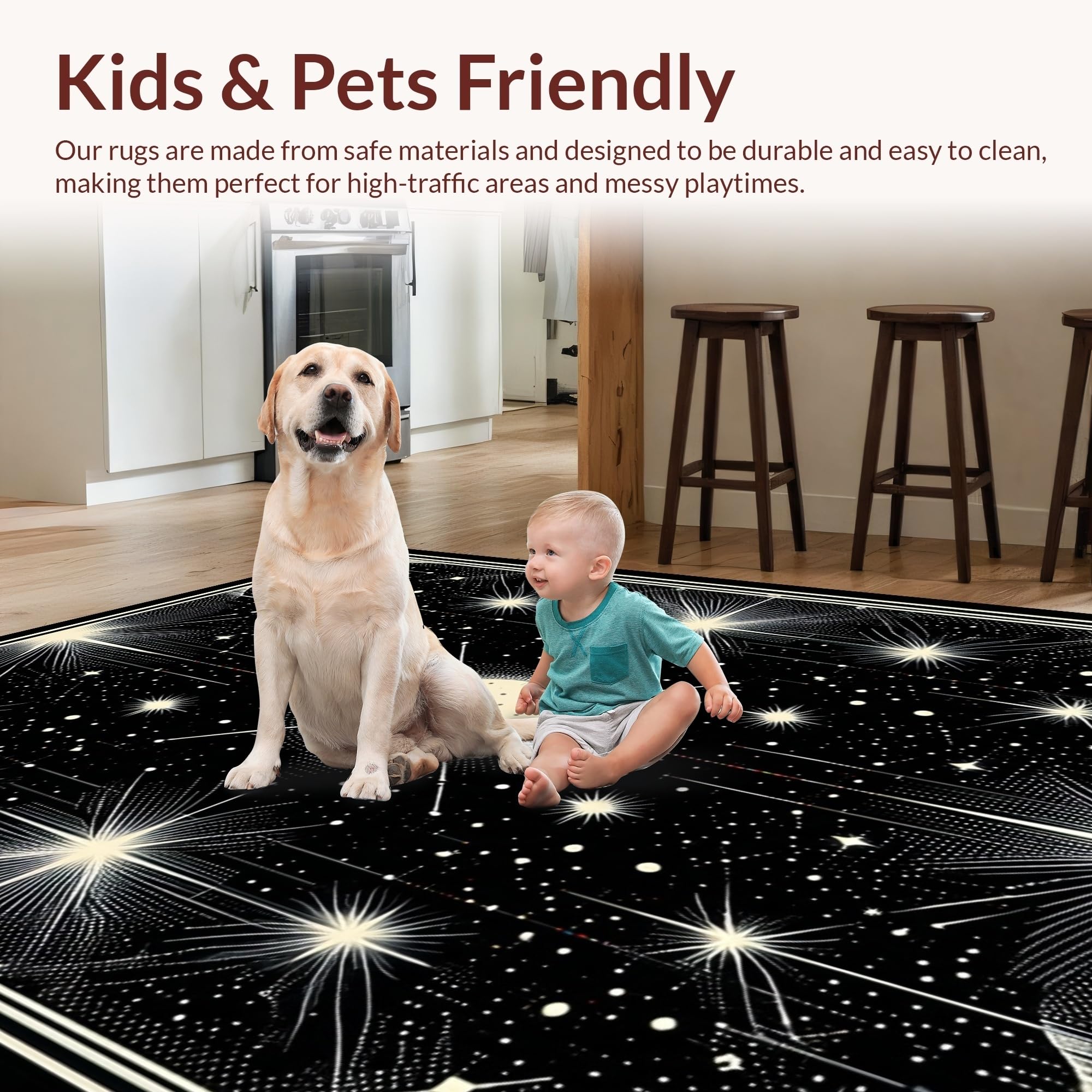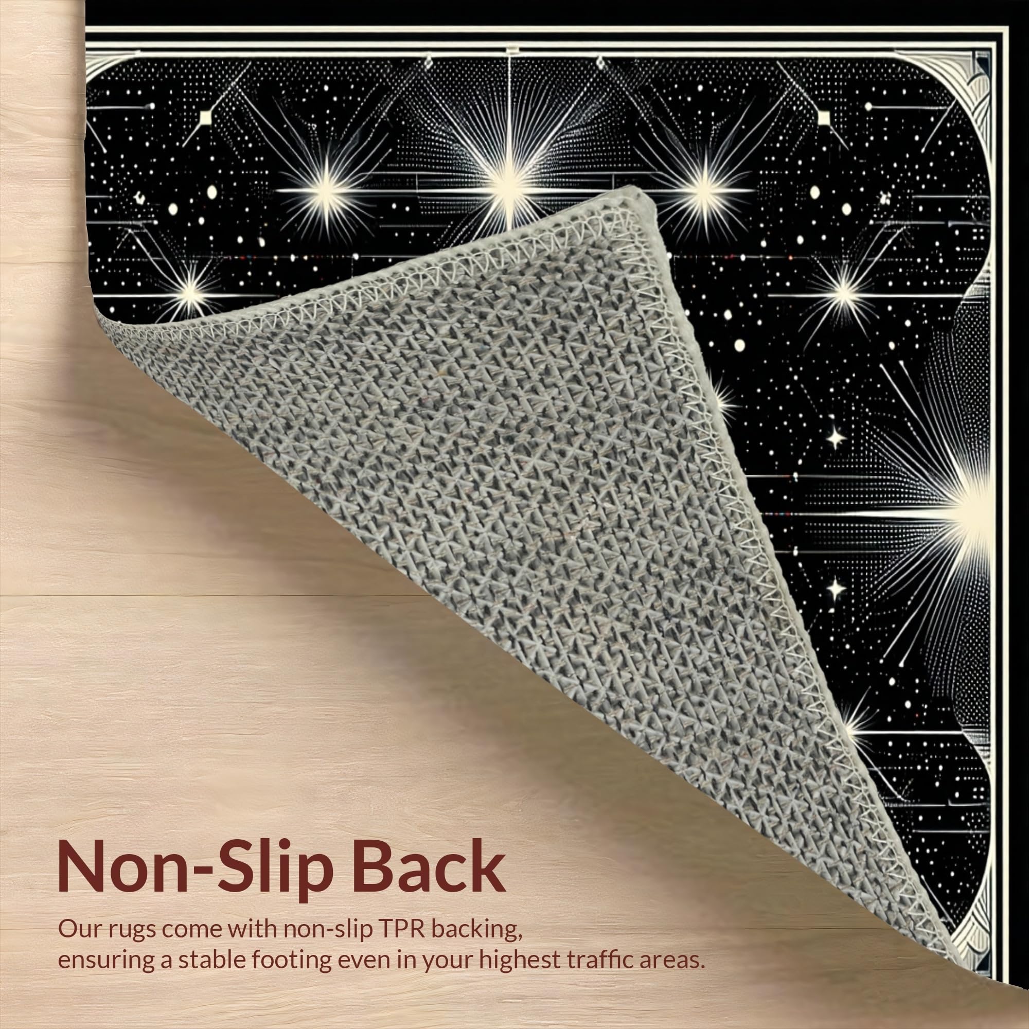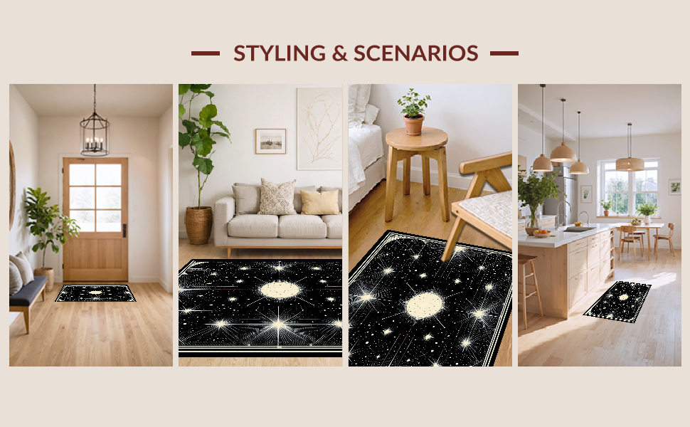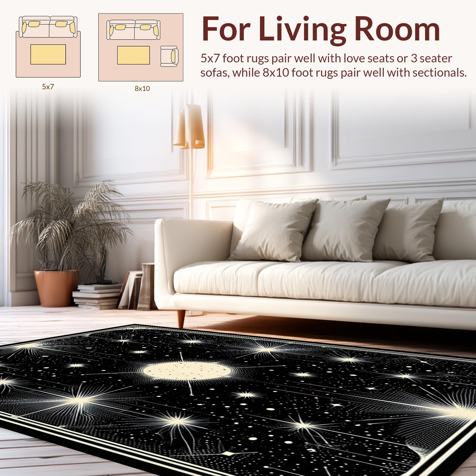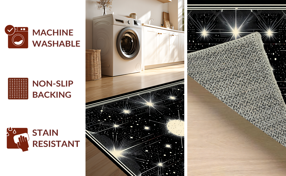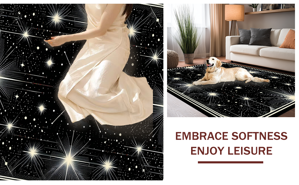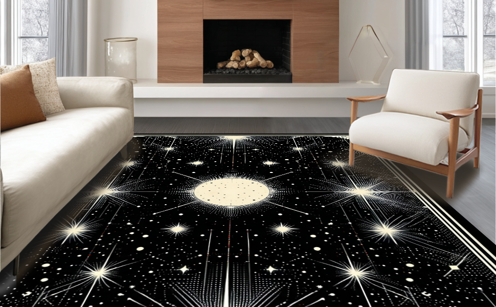 Ultra Soft Area Rug, Non Slip, Stain Resistant, Washable Area Rugs for Living Room, Bedroom, Chic Black and White Starry Aesthetic(White) Overview: