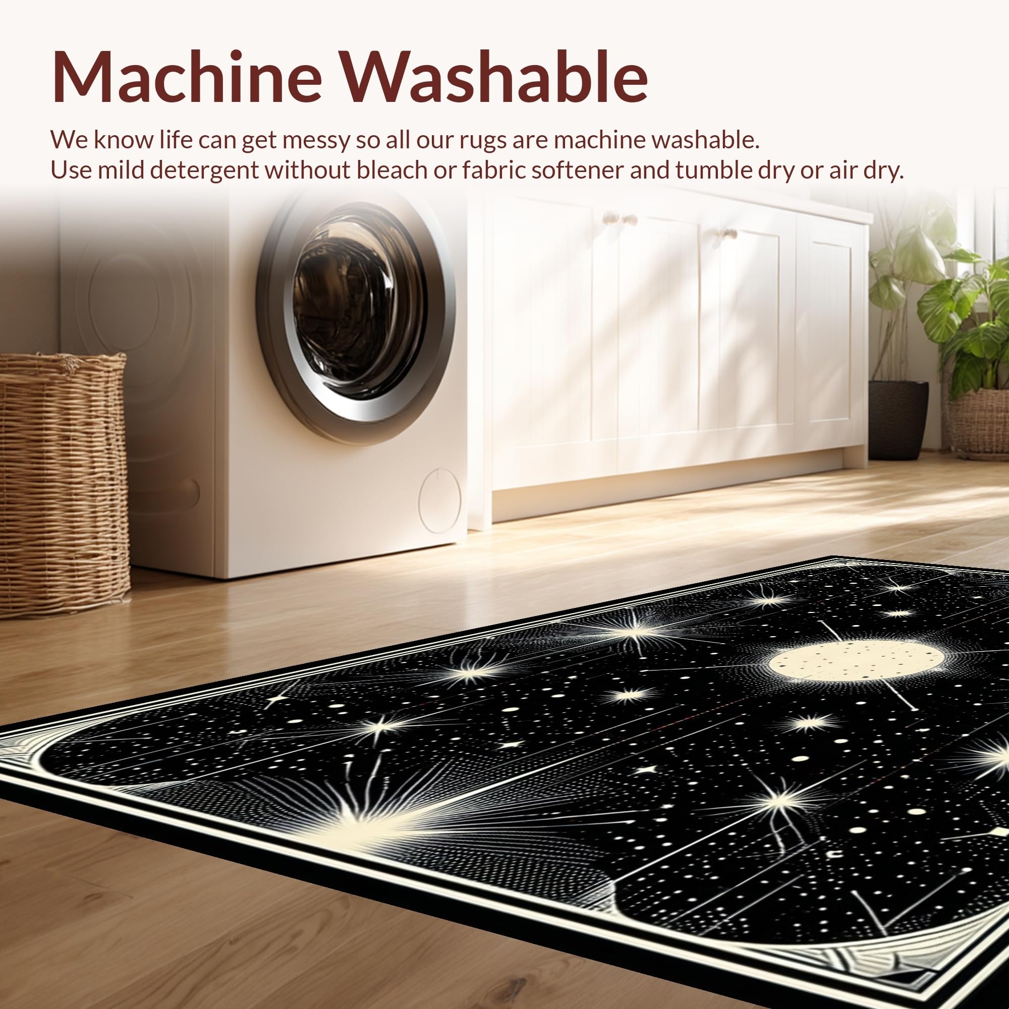 - Machine Washable: Our rugs can be easily thrown in the wash machine.