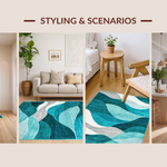 Ultra Soft Area Rug, Non Slip, Stain Resistant, Washable Area Rugs for Living Room, Bedroom, Chic Black and White Tiled Motif(Blue) Overview: