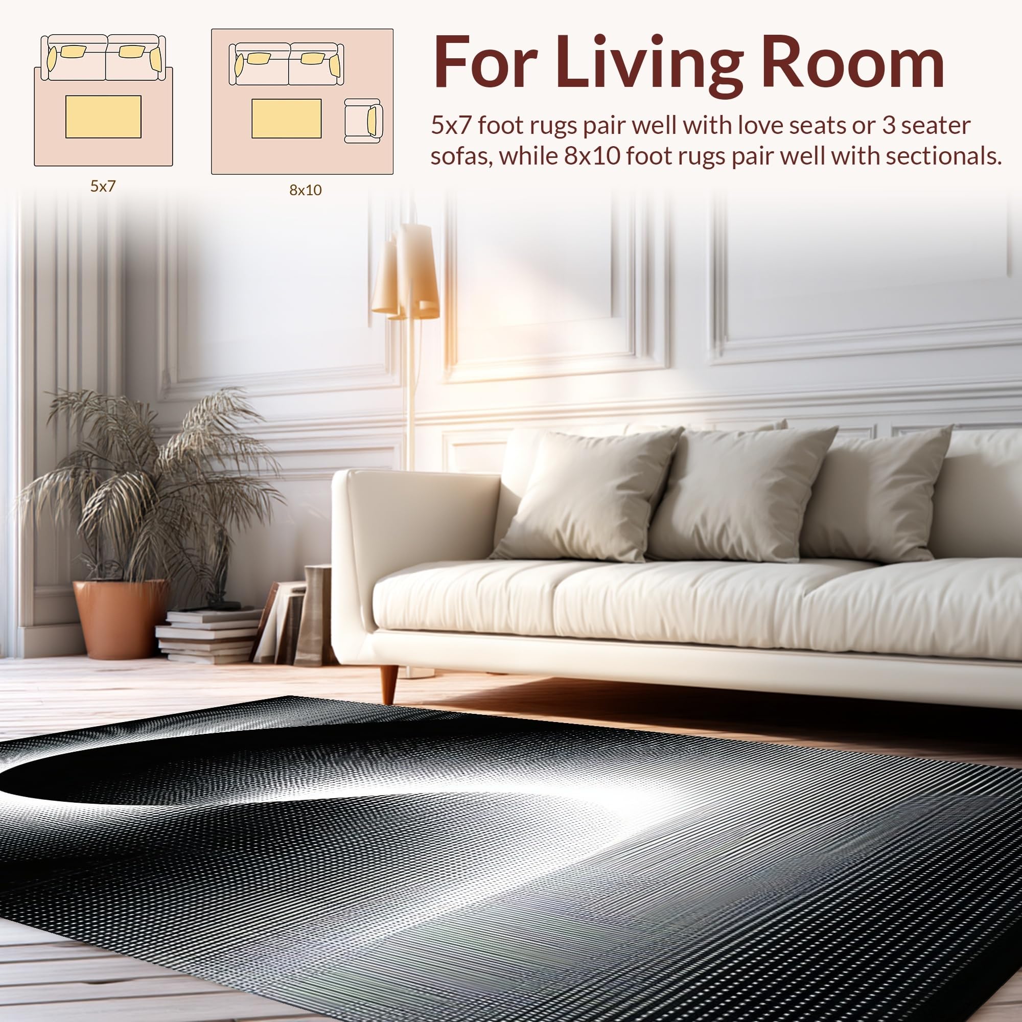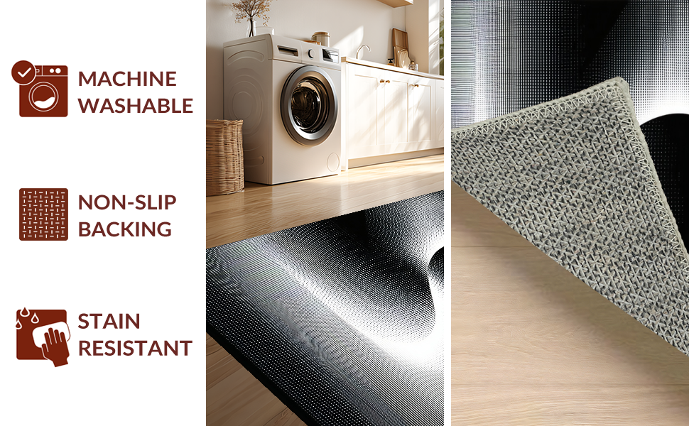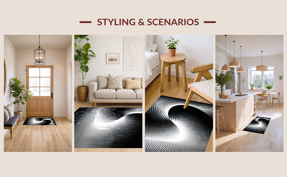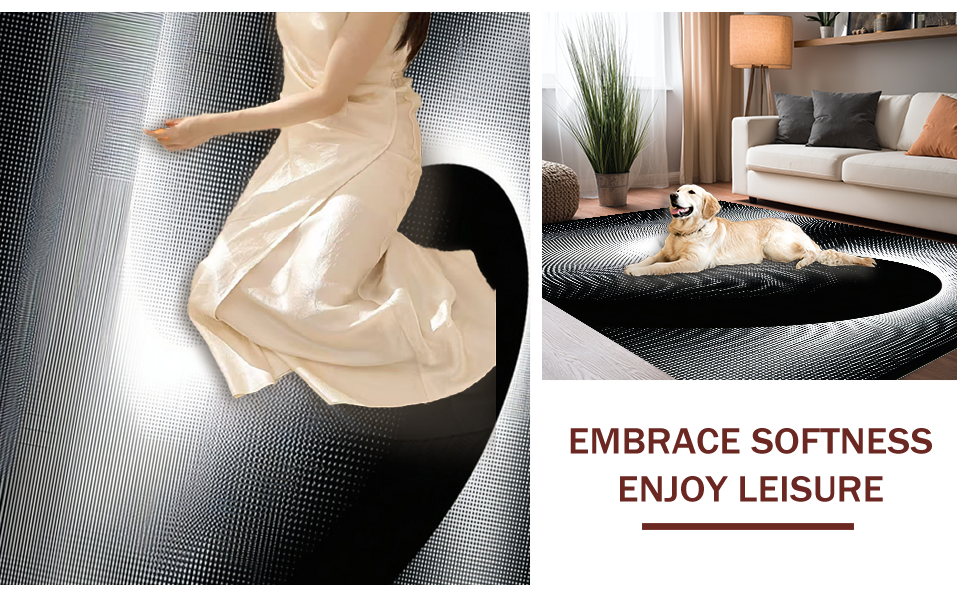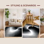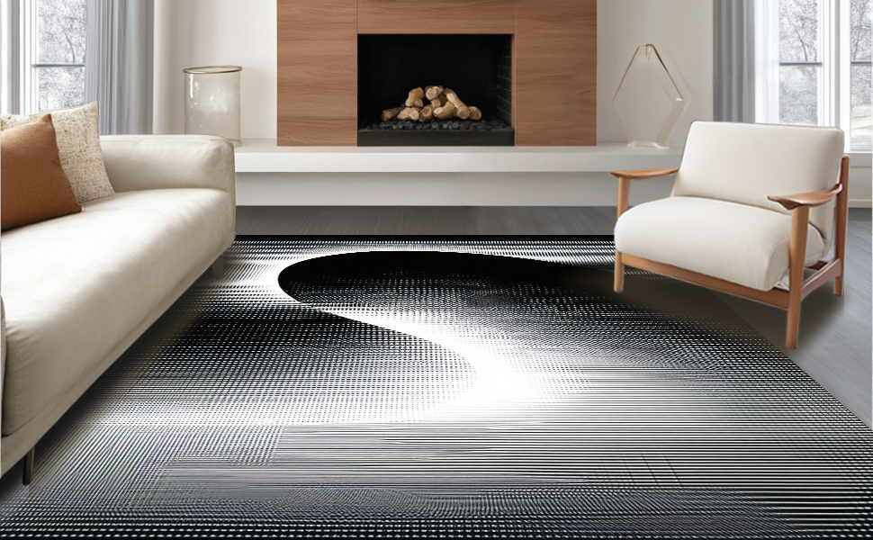 Ultra Soft Area Rug, Non Slip, Stain Resistant, Washable Area Rugs for Living Room, Bedroom, Chic Black and White Vortex Design(Black) Overview: