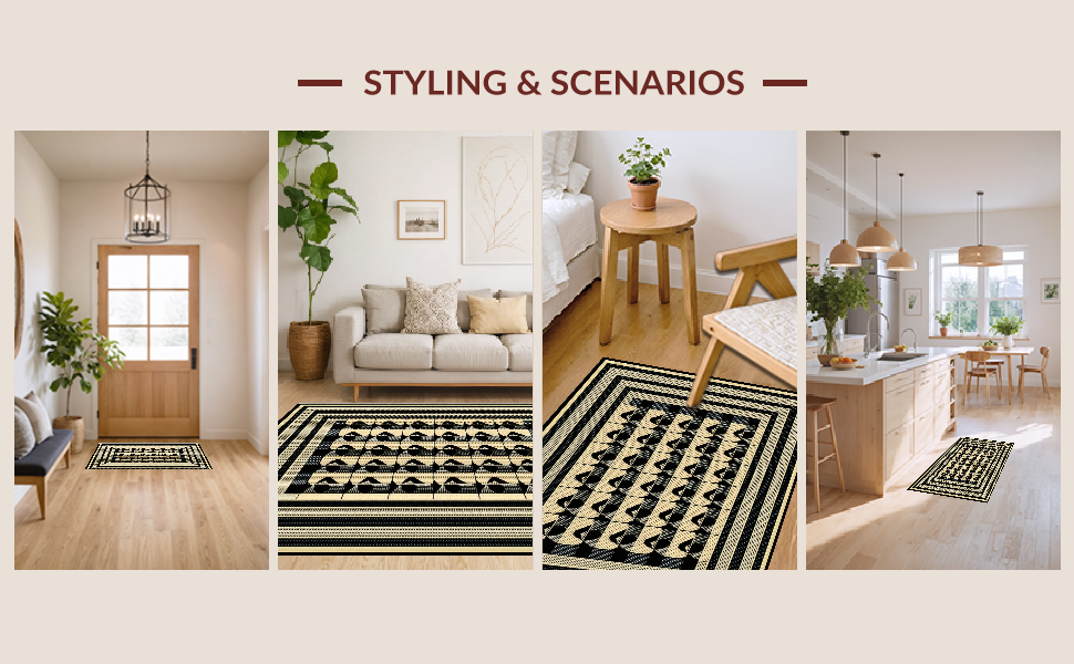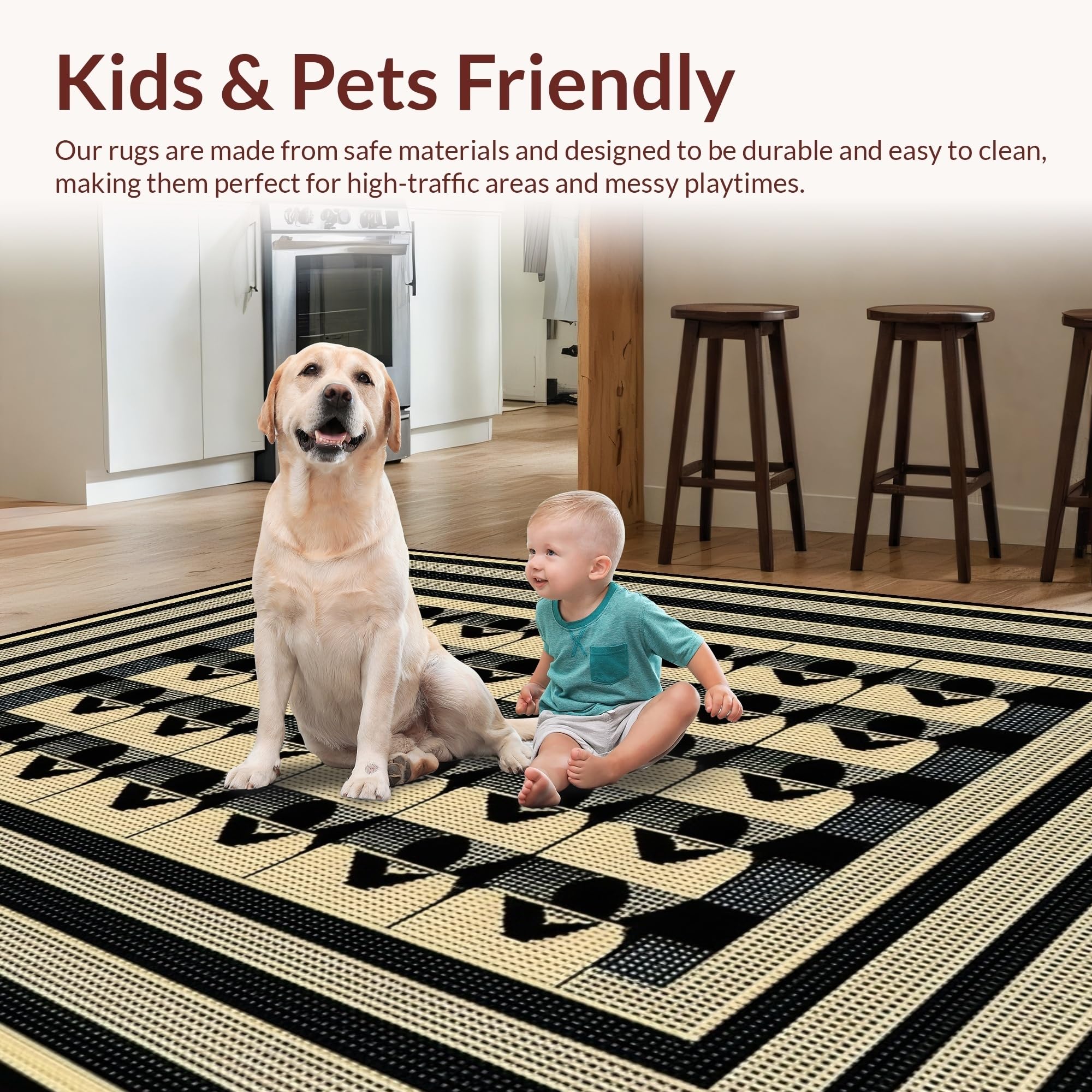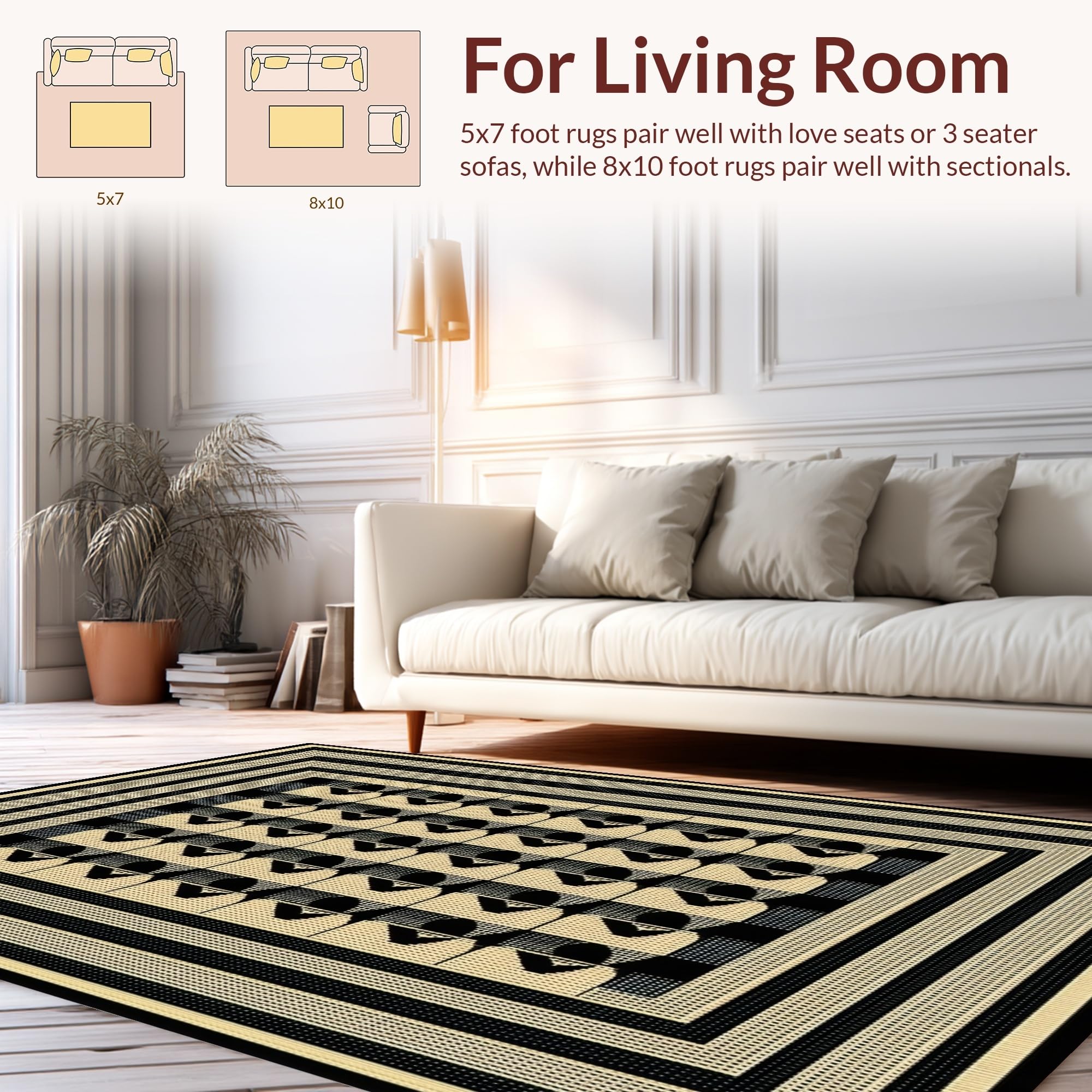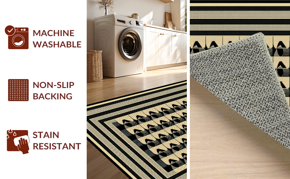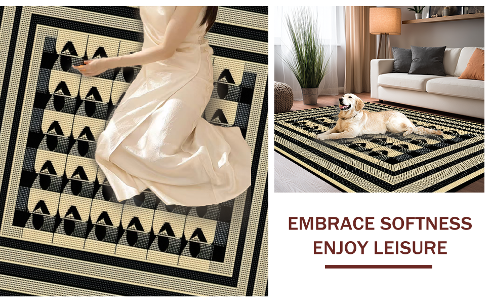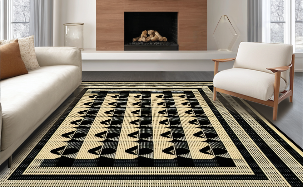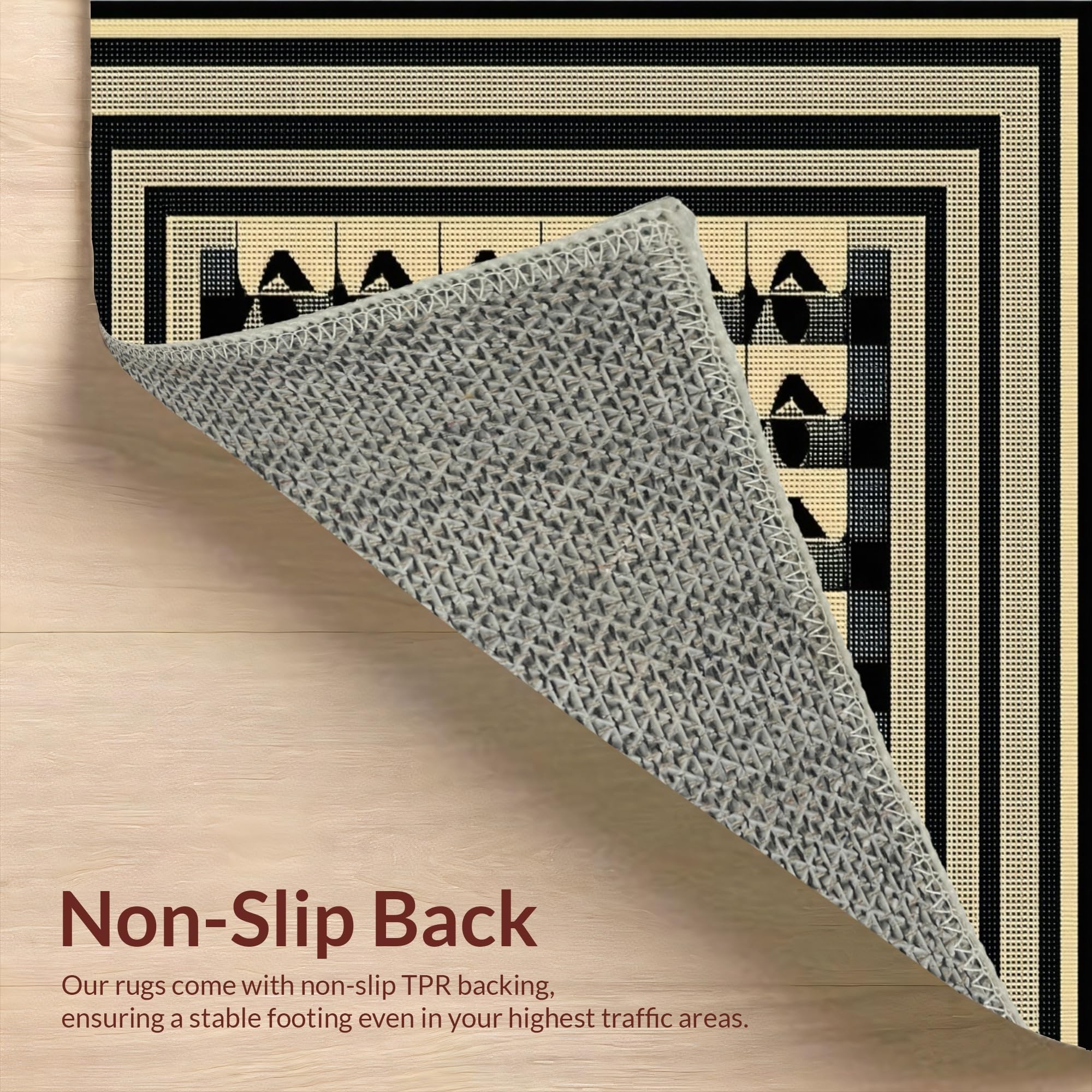 Ultra Soft Area Rug, Non Slip, Stain Resistant, Washable Area Rugs for Living Room, Bedroom, Chic Black Beige Rustic Charm(Black) Overview: