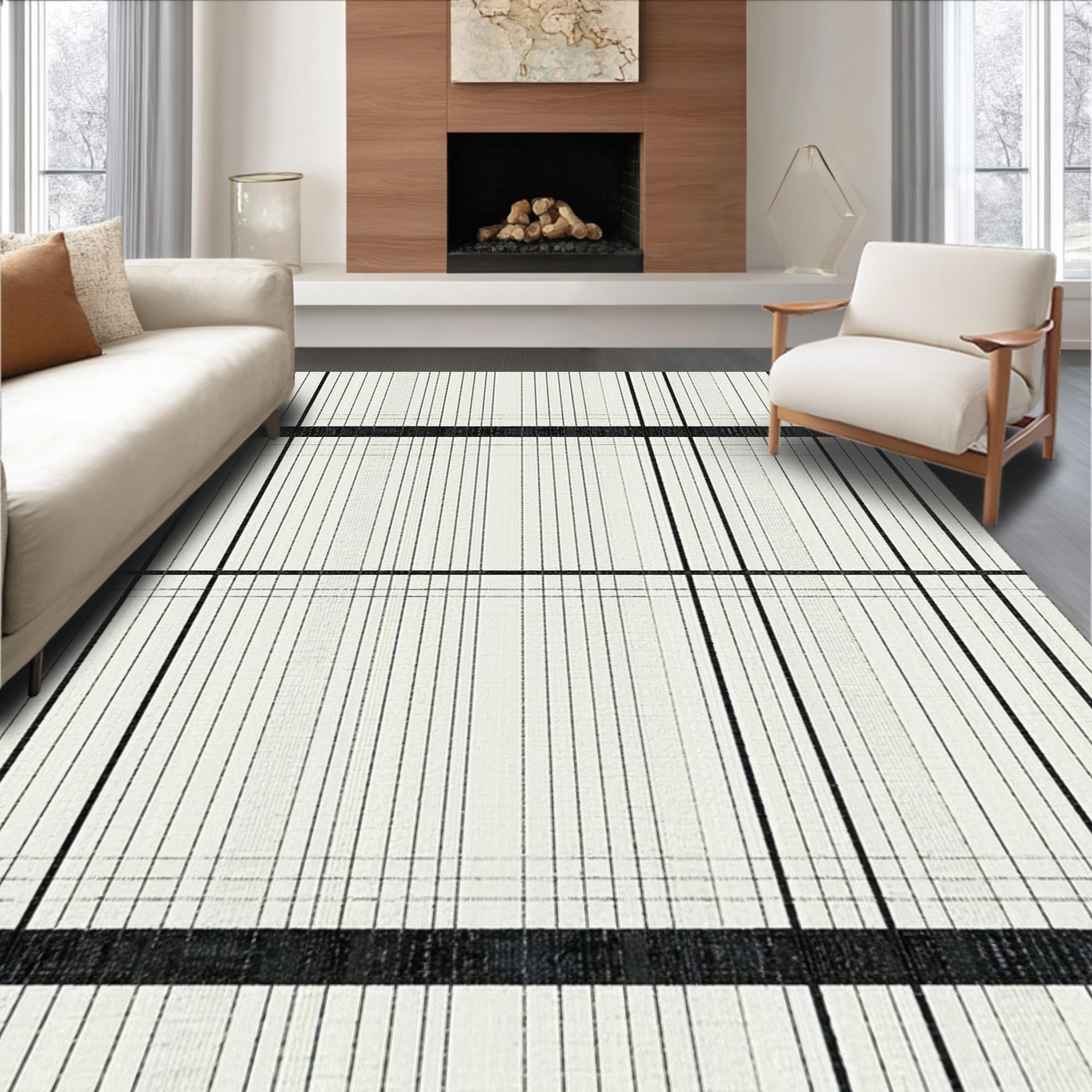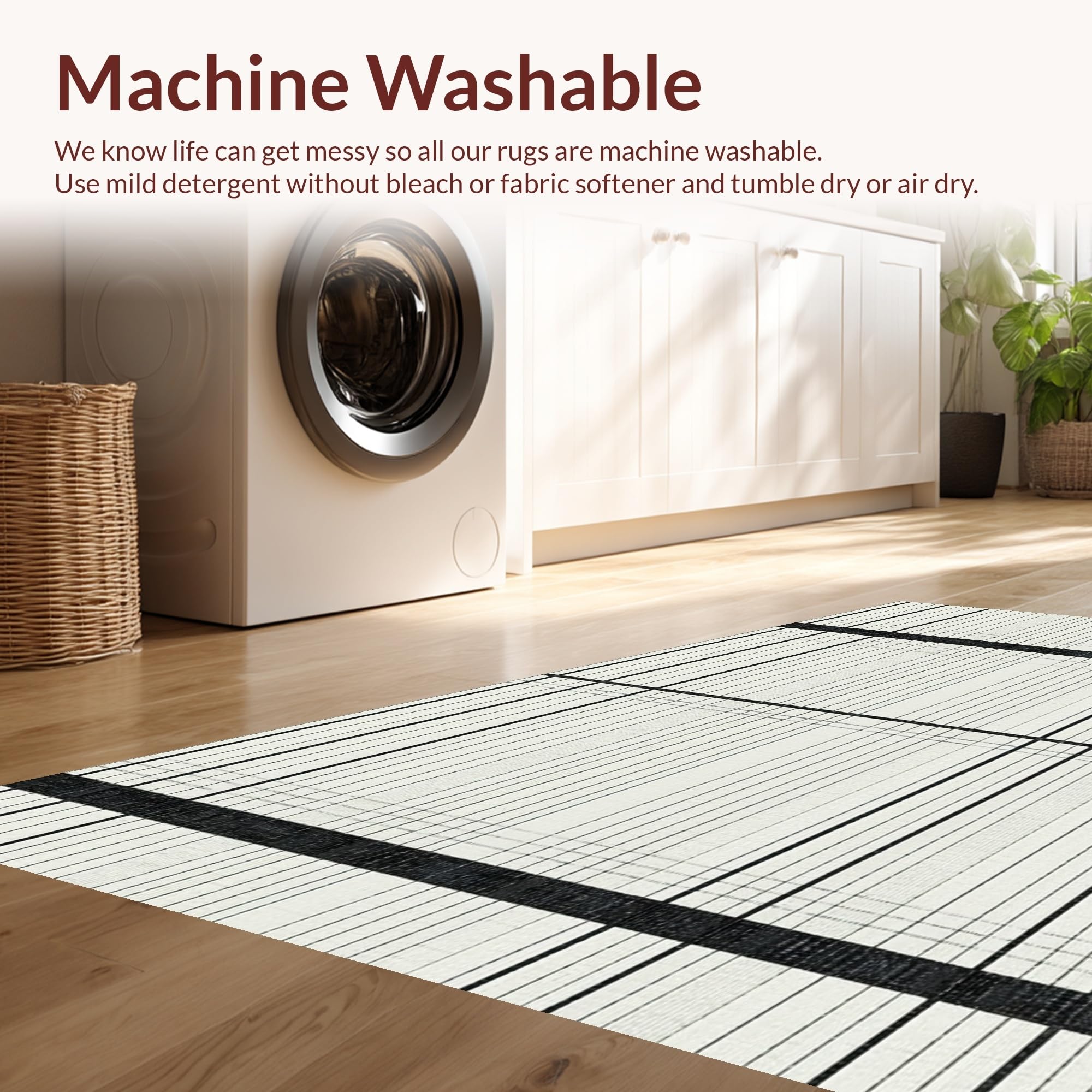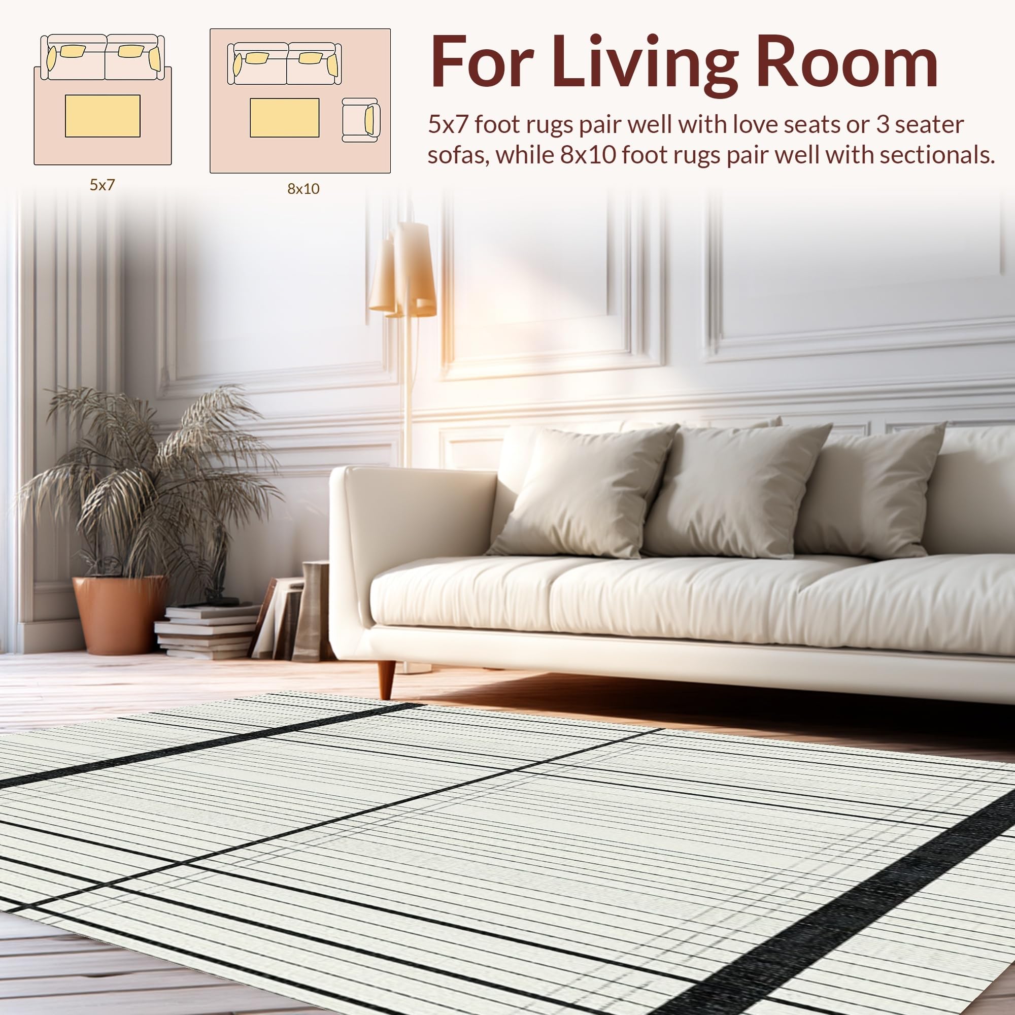 Ultra Soft Area Rug, Non Slip, Stain Resistant, Washable Area Rugs for Living Room, Bedroom, Chic Black White Striped Rug: Modern Geometric Area Rug Design(Beige) Overview: