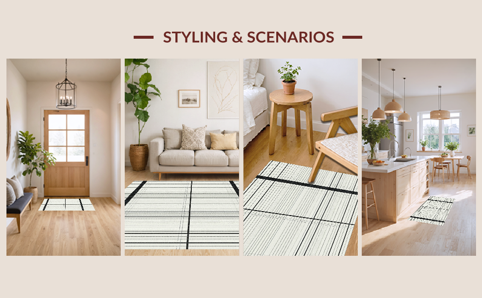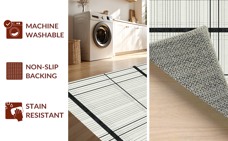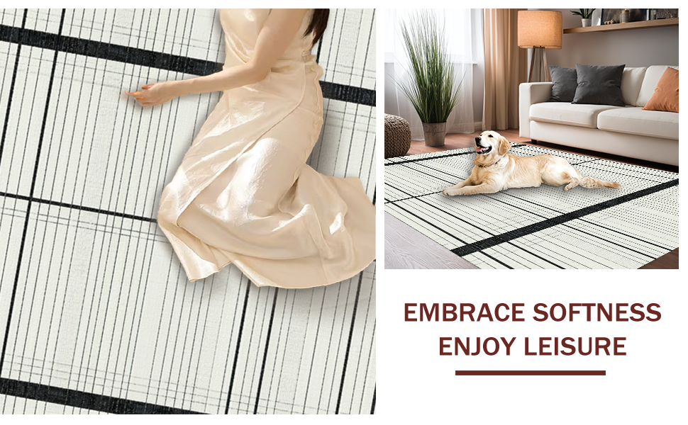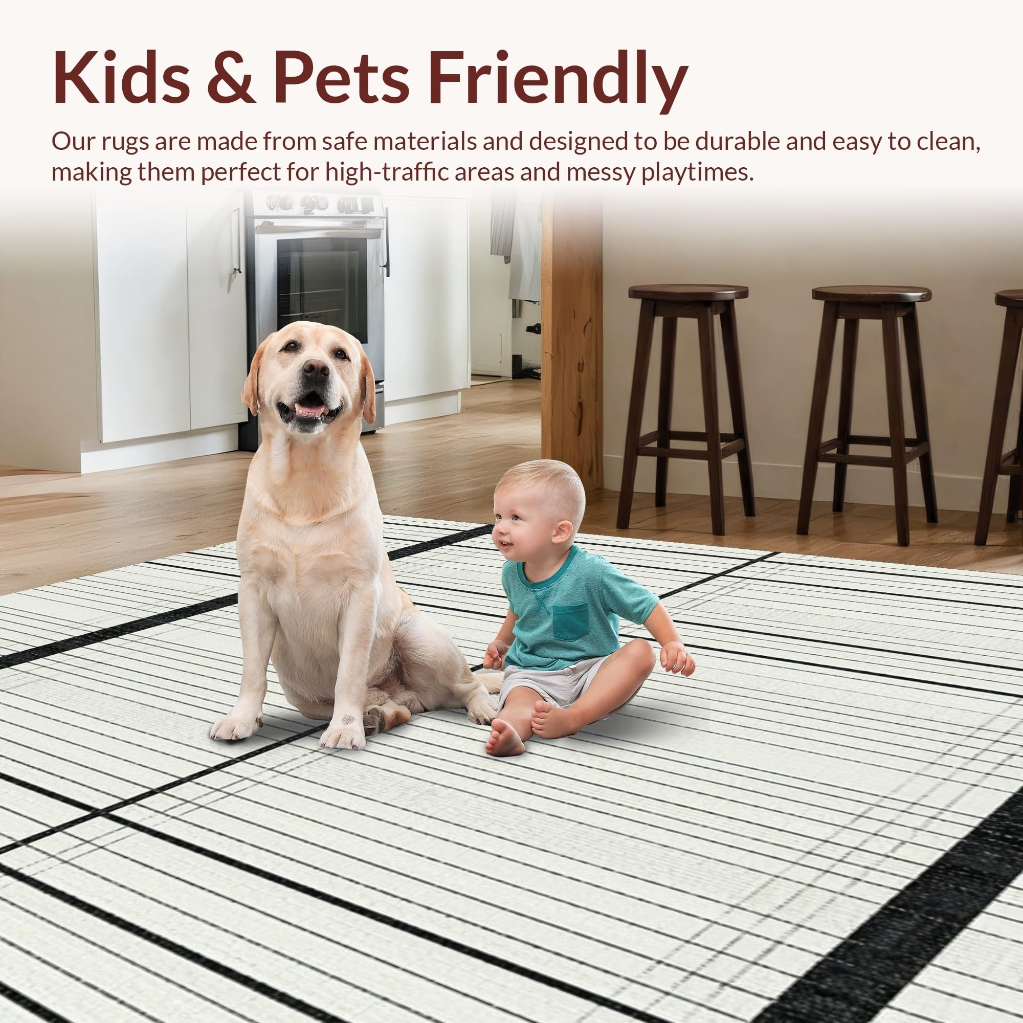 Ultra Soft Area Rug, Non Slip, Stain Resistant, Washable Area Rugs for Living Room, Bedroom, Chic Black White Striped Rug: Modern Geometric Area Rug Design(Beige) Overview:
