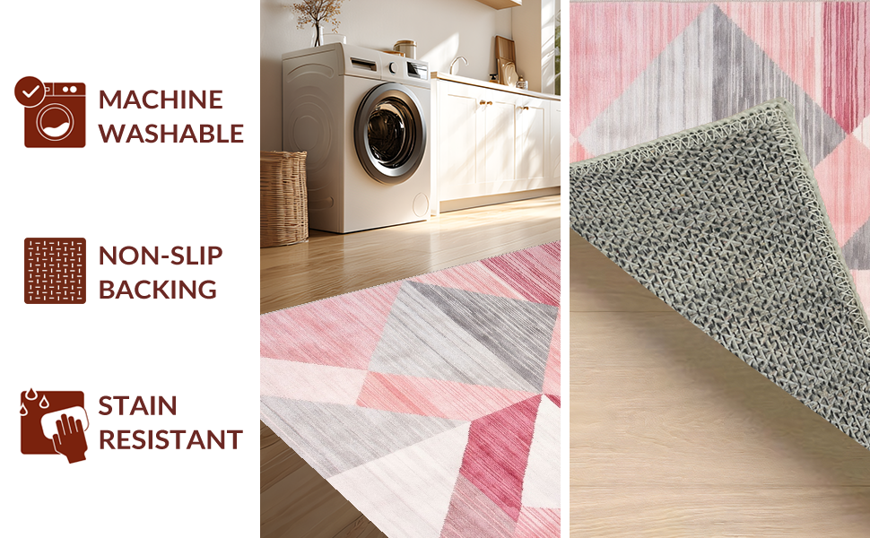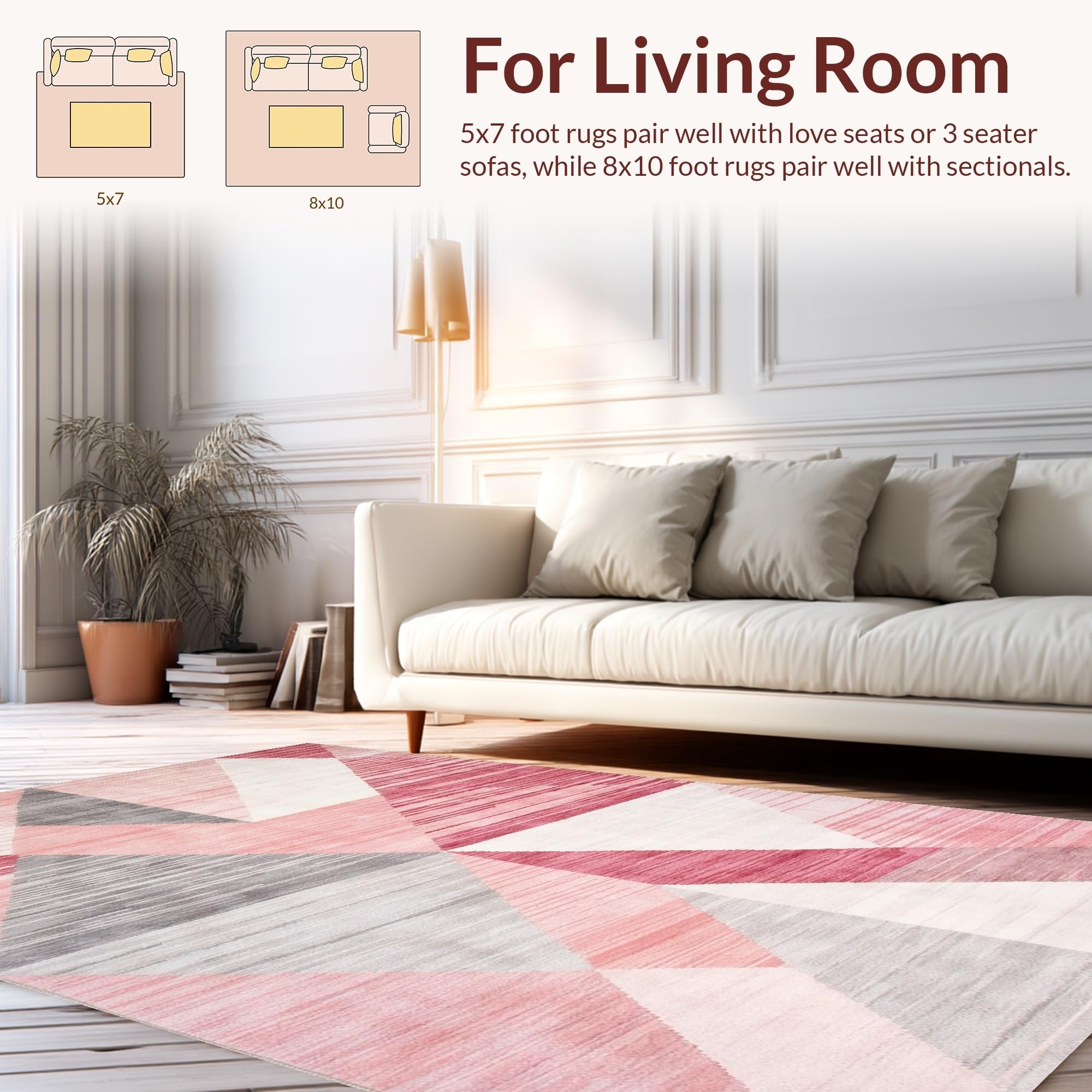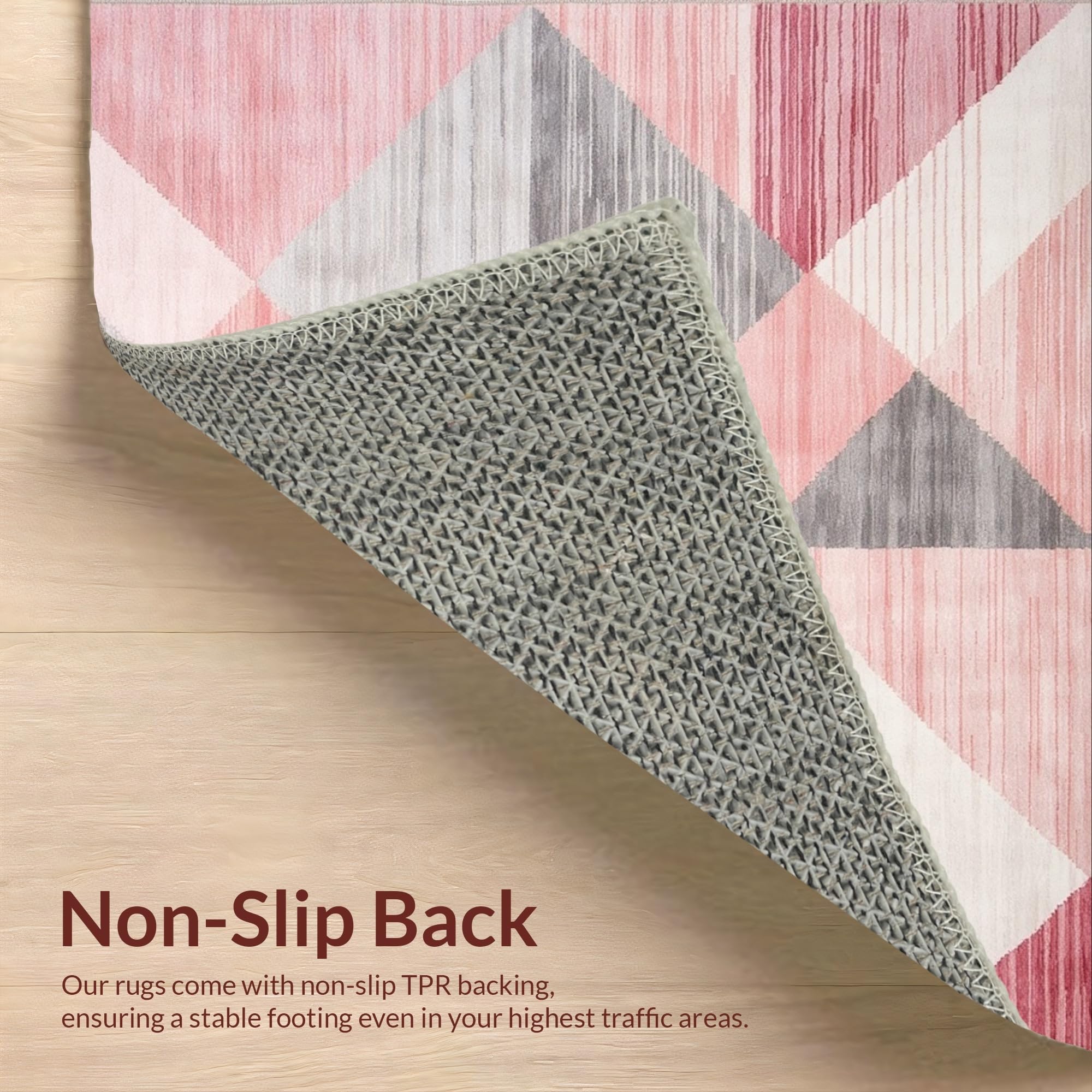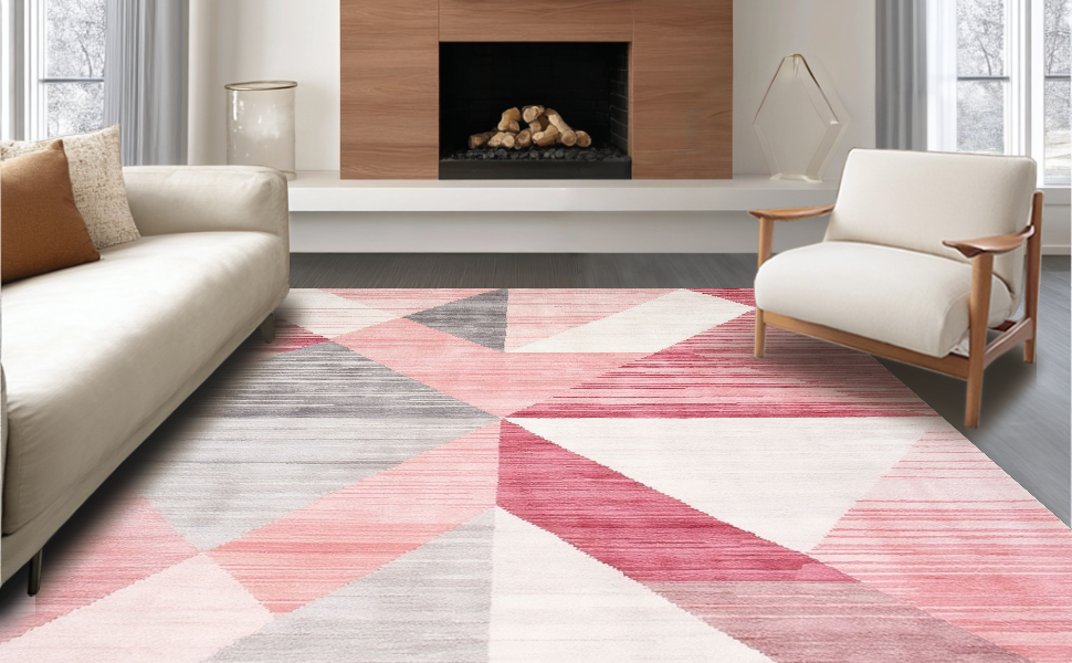 Ultra Soft Area Rug, Non Slip, Stain Resistant, Washable Area Rugs for Living Room, Bedroom, Chic Blush Geometric Fusion(Pink) Overview: