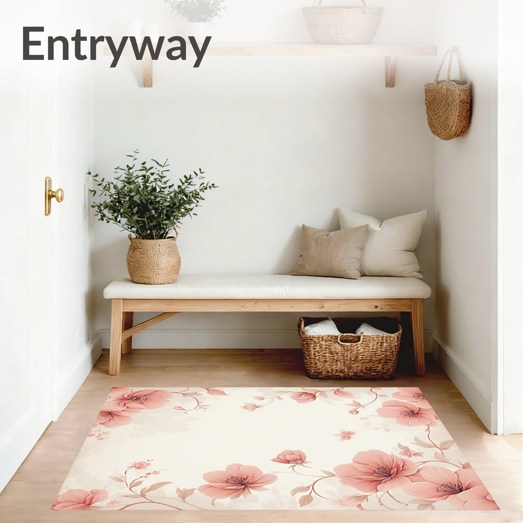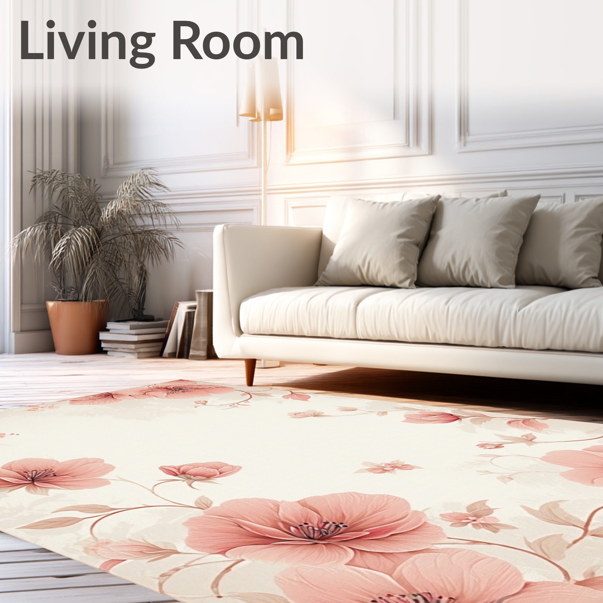 Ultra Soft Area Rug, Non Slip, Stain Resistant, Washable Area Rugs for Living Room, Bedroom, Chic Boho Beige Decorative With Blush Petal Arrangement(Ivory) Overview: