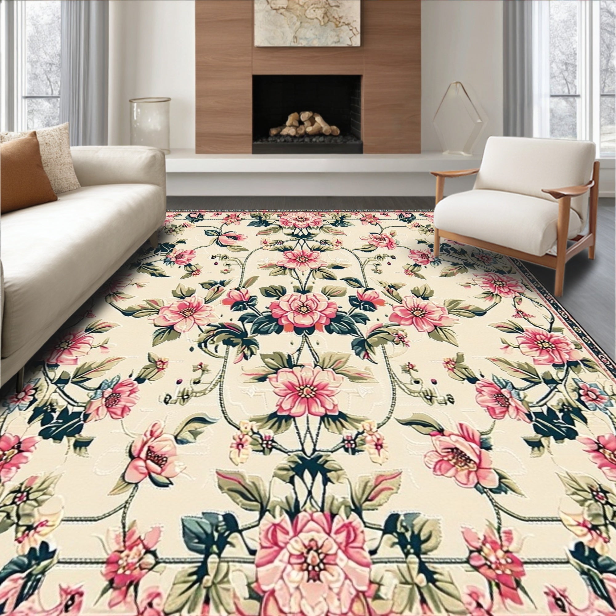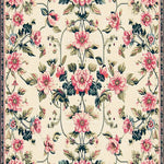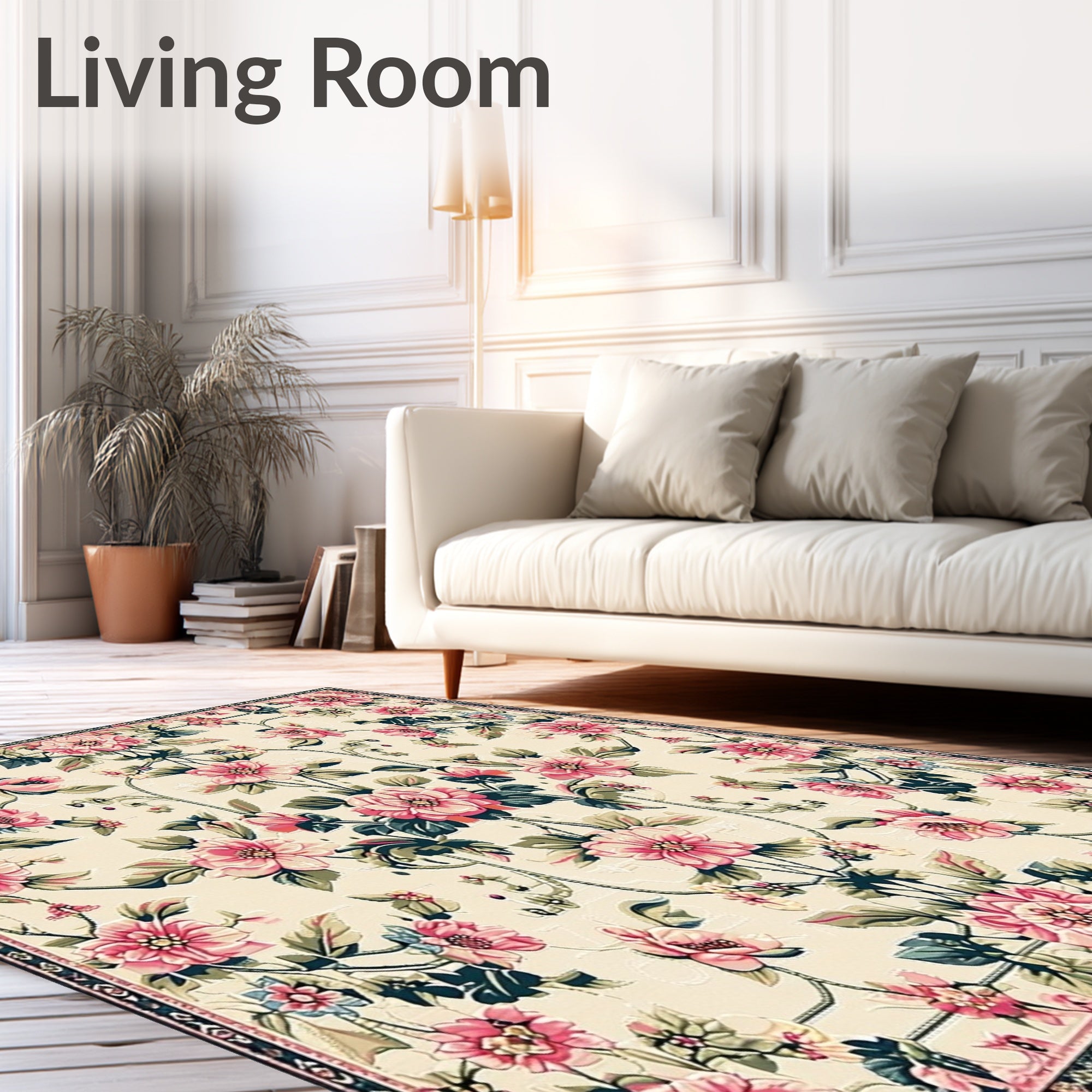 Ultra Soft Area Rug, Non Slip, Stain Resistant, Washable Area Rugs for Living Room, Bedroom, Chic Boho Floral with Pink Blossom and Deep Green Leaf Accents on Beige(Beige) Overview: