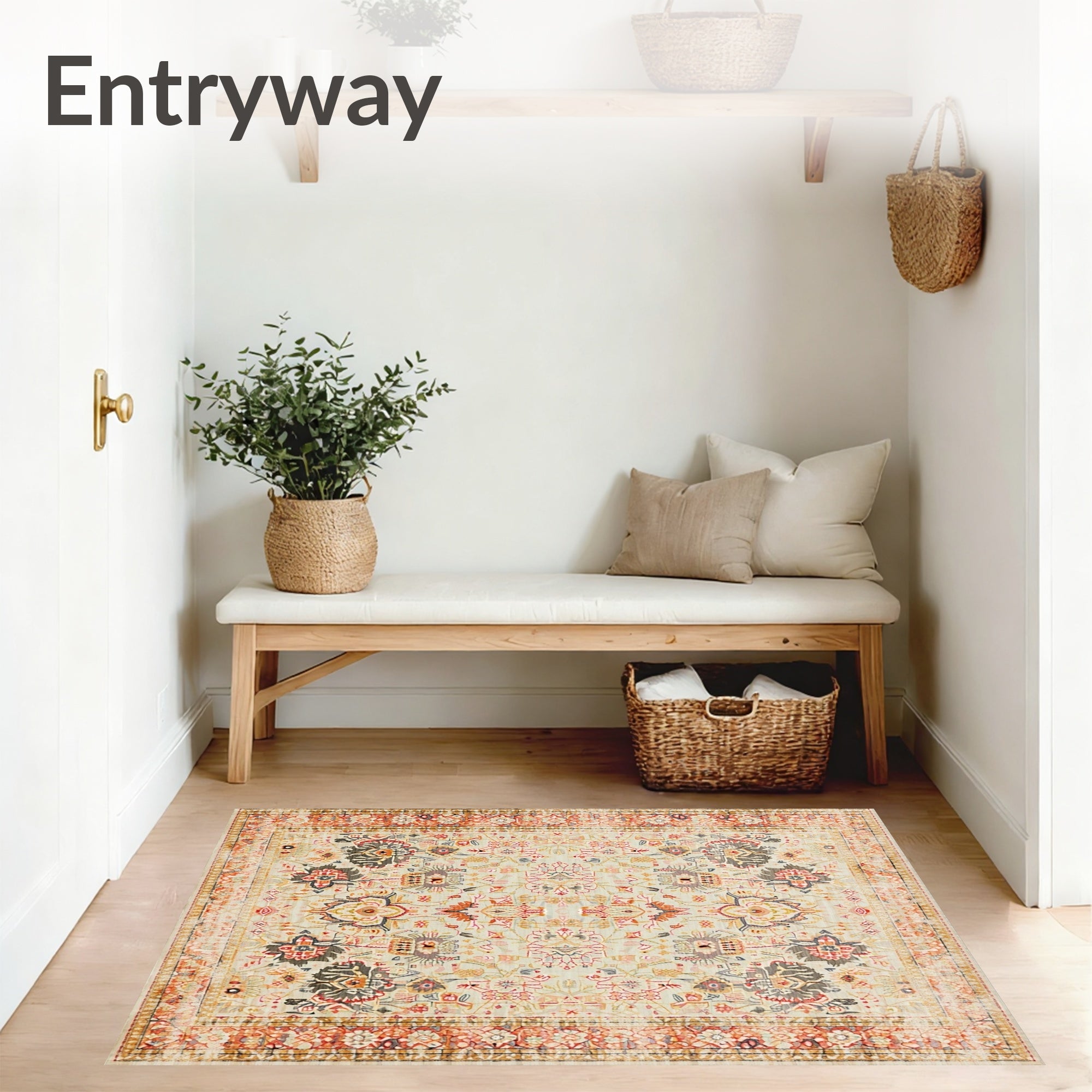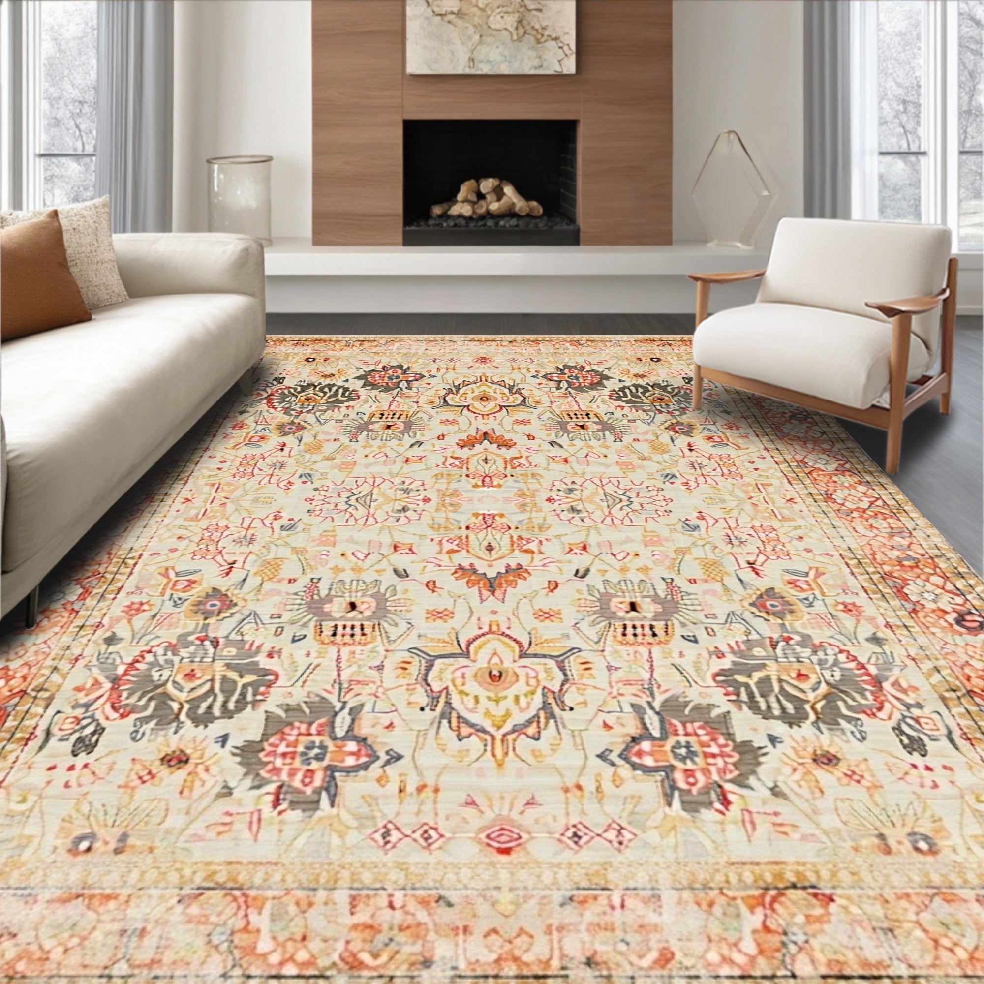 Ultra Soft Area Rug, Non Slip, Stain Resistant, Washable Area Rugs for Living Room, Bedroom, Chic Boho Inspired Area With Elegant Floral(Beige) Overview: