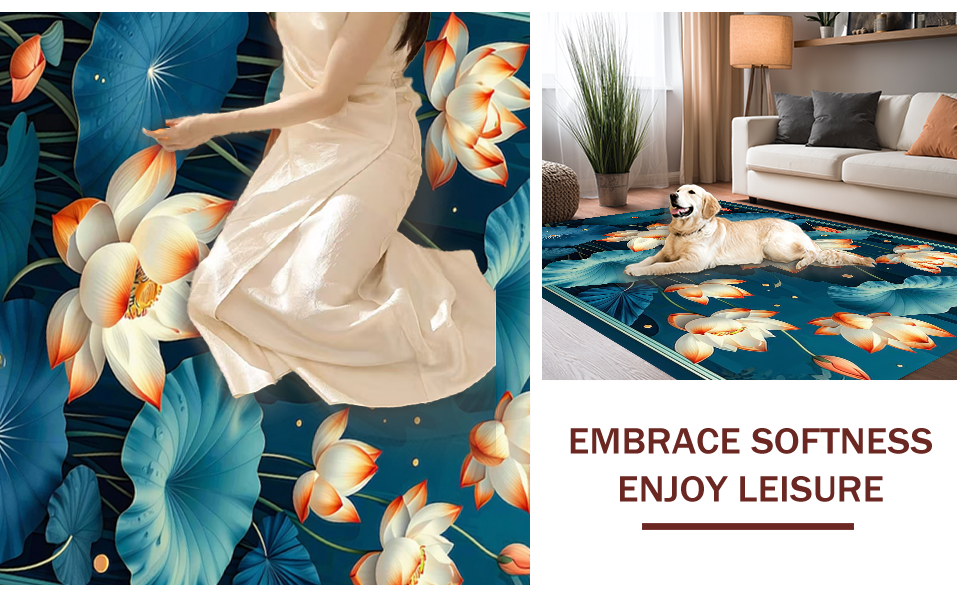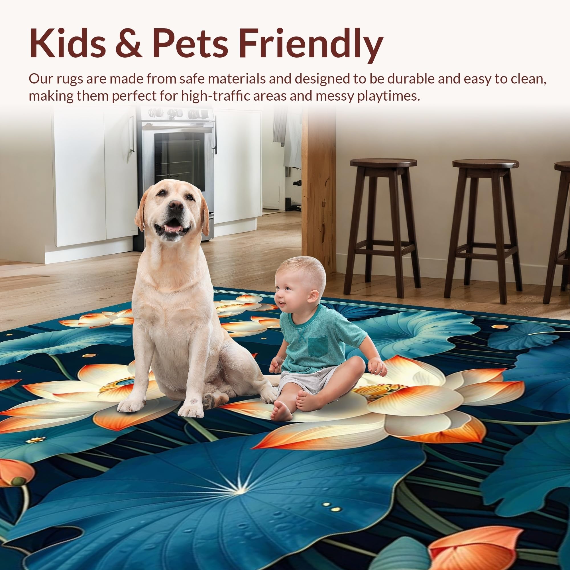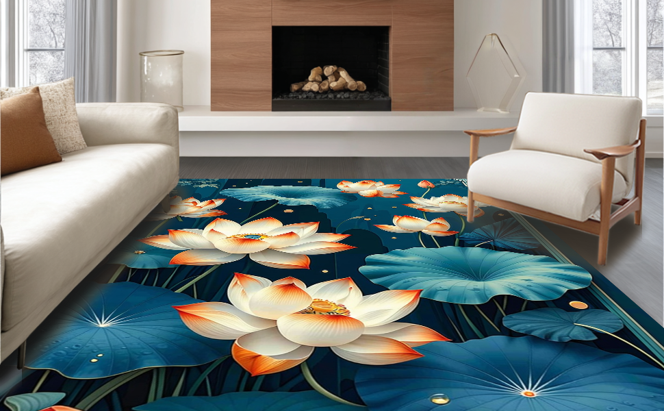 Ultra Soft Area Rug, Non Slip, Stain Resistant, Washable Area Rugs for Living Room, Bedroom, Chic Botanical Geometry Fusion(Blue) Overview: