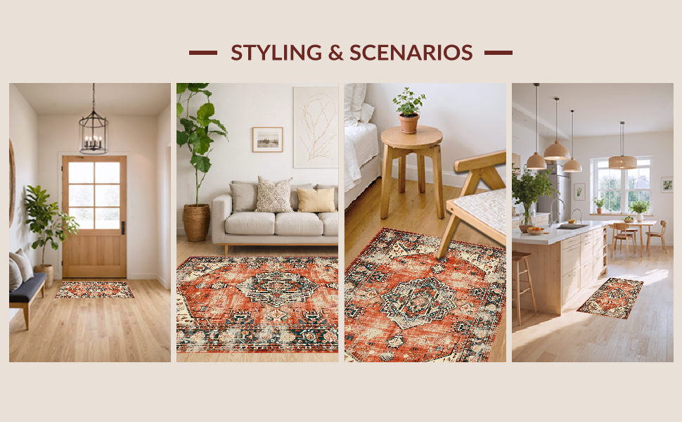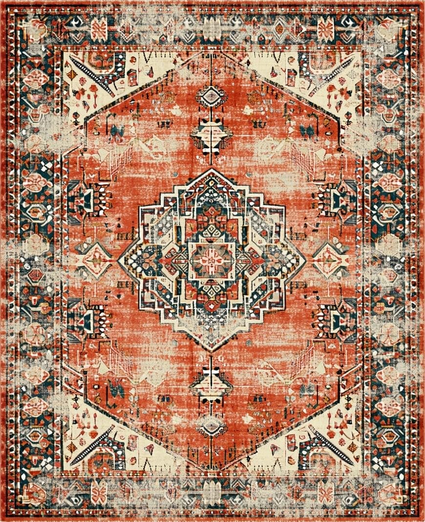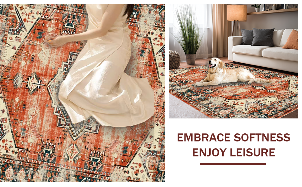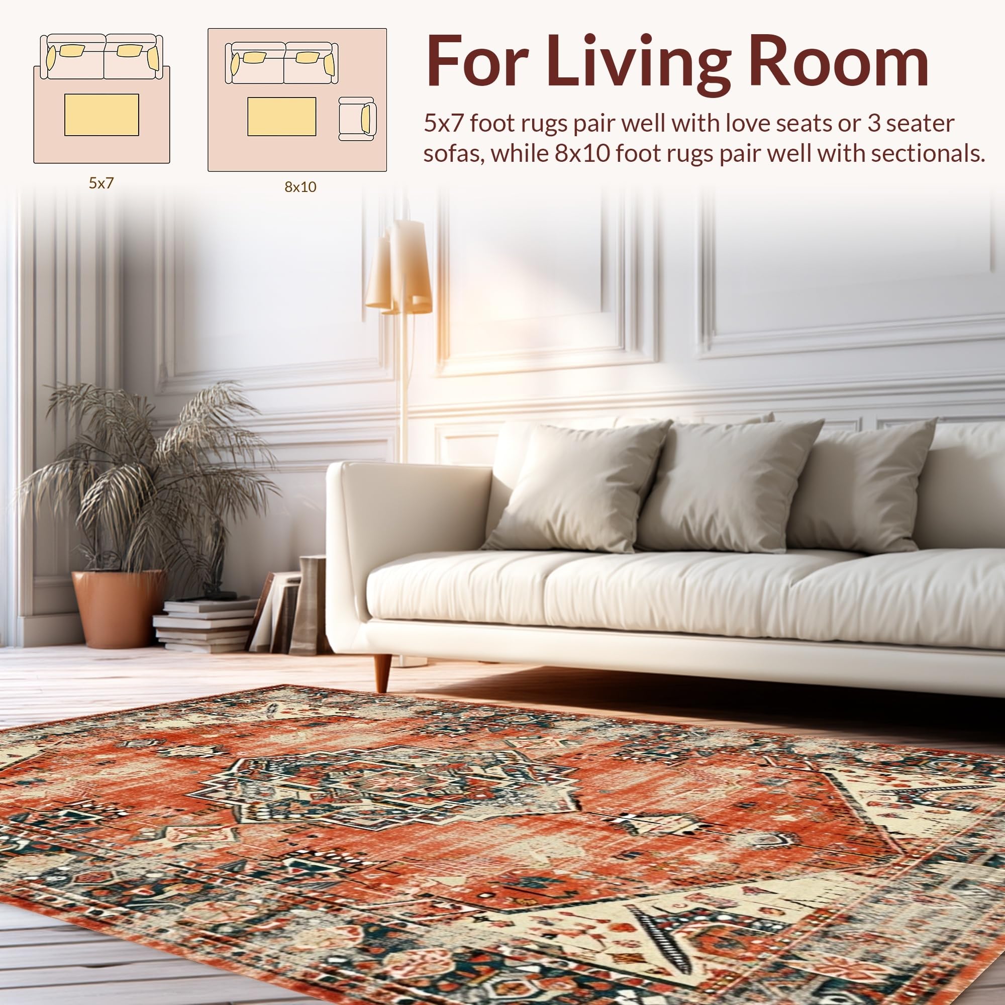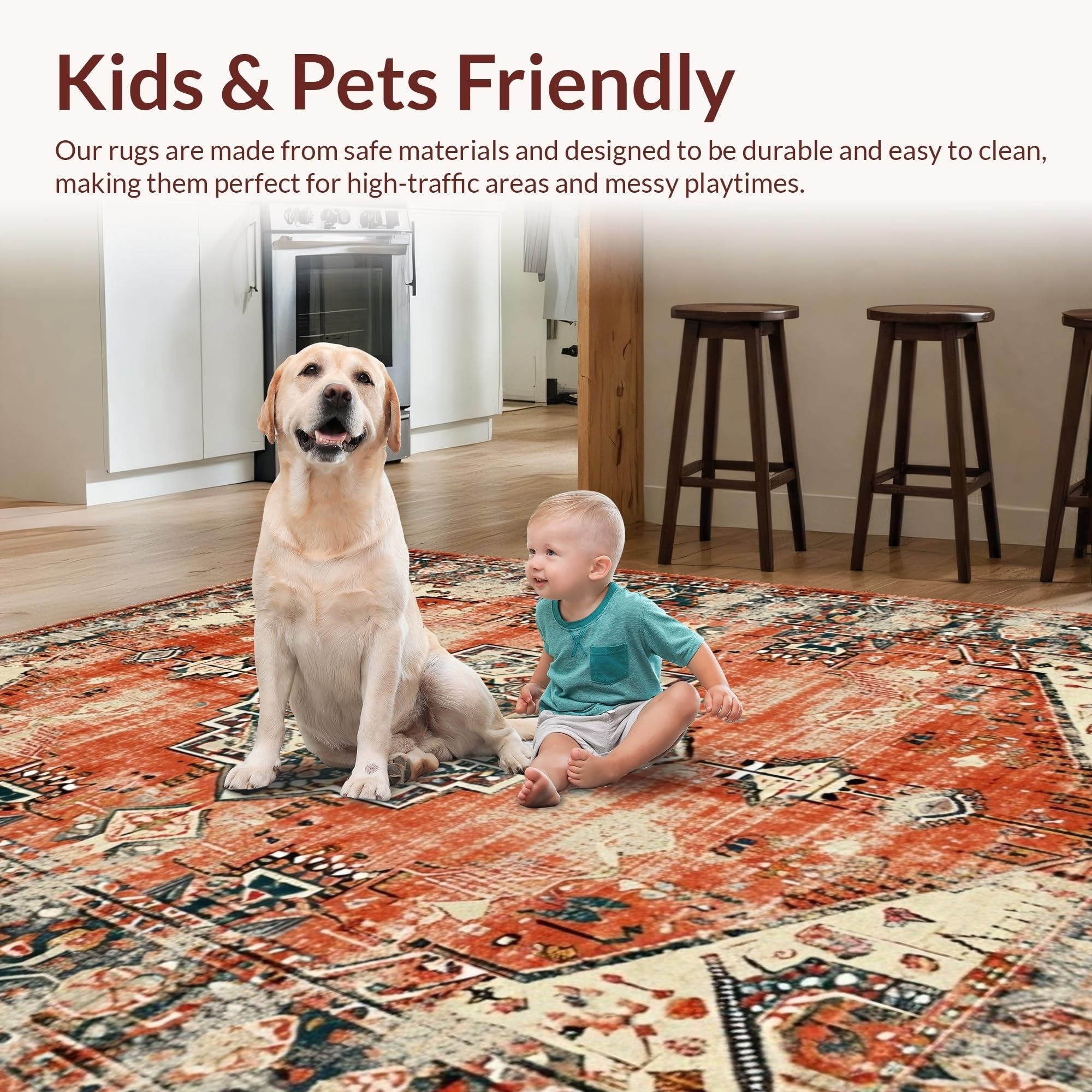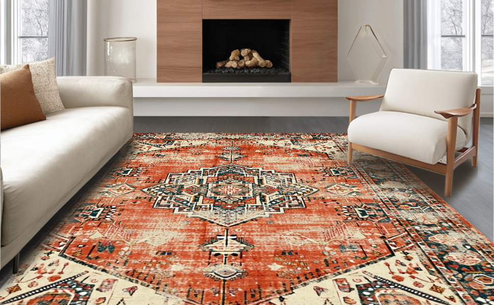 Ultra Soft Area Rug, Non Slip, Stain Resistant, Washable Area Rugs for Living Room, Bedroom, Chic Central Medallion Creation(Red) Overview: