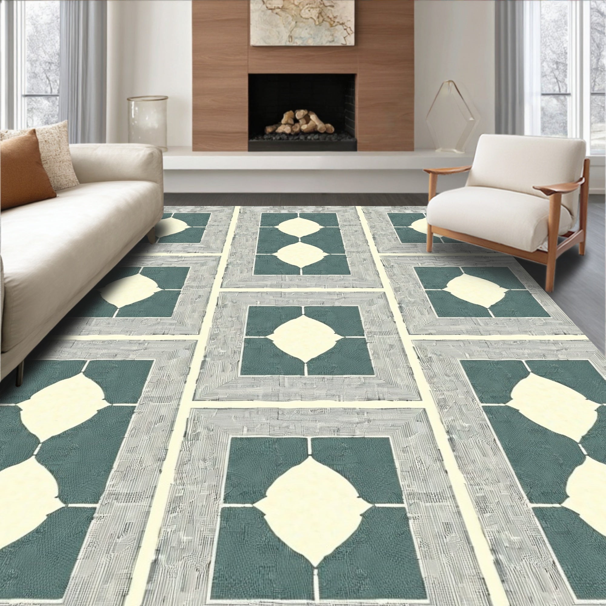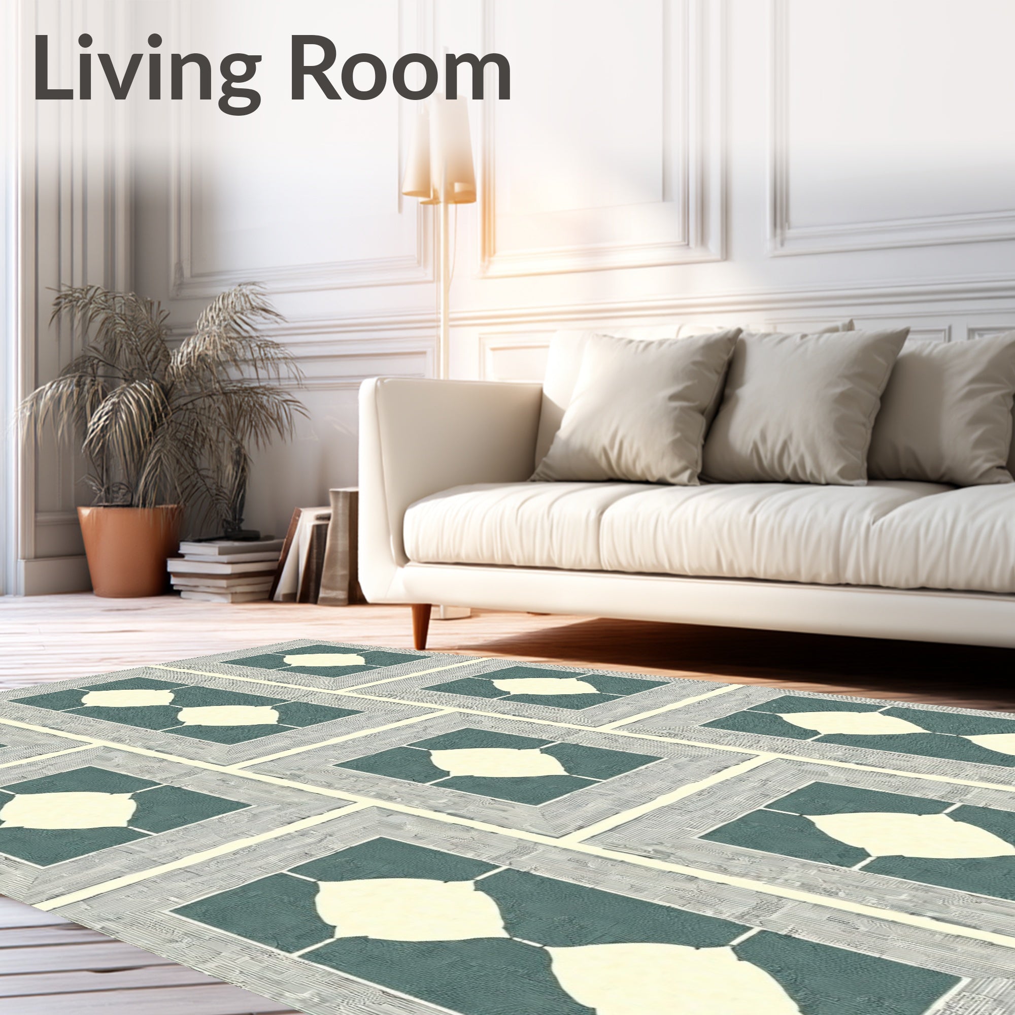 Ultra Soft Area Rug, Non Slip, Stain Resistant, Washable Area Rugs for Living Room, Bedroom, Chic Checkered Overlay with Nordic Inspired Motif(Gray) Overview: