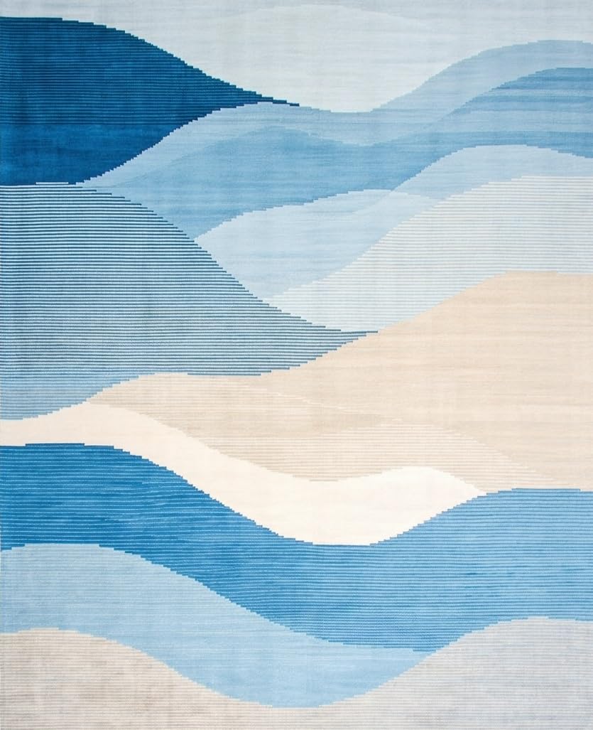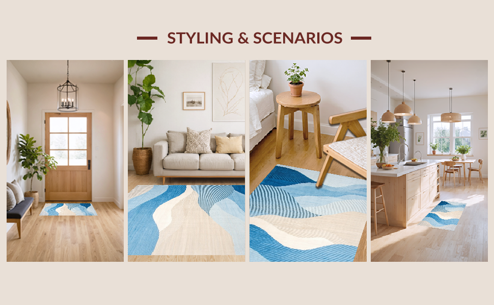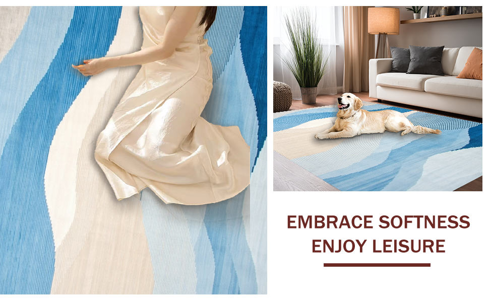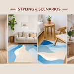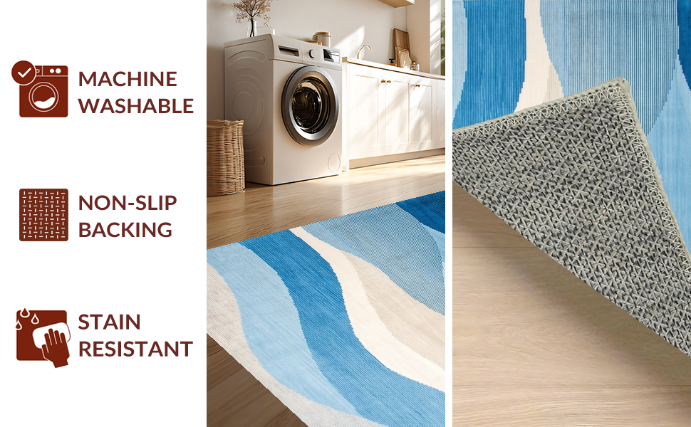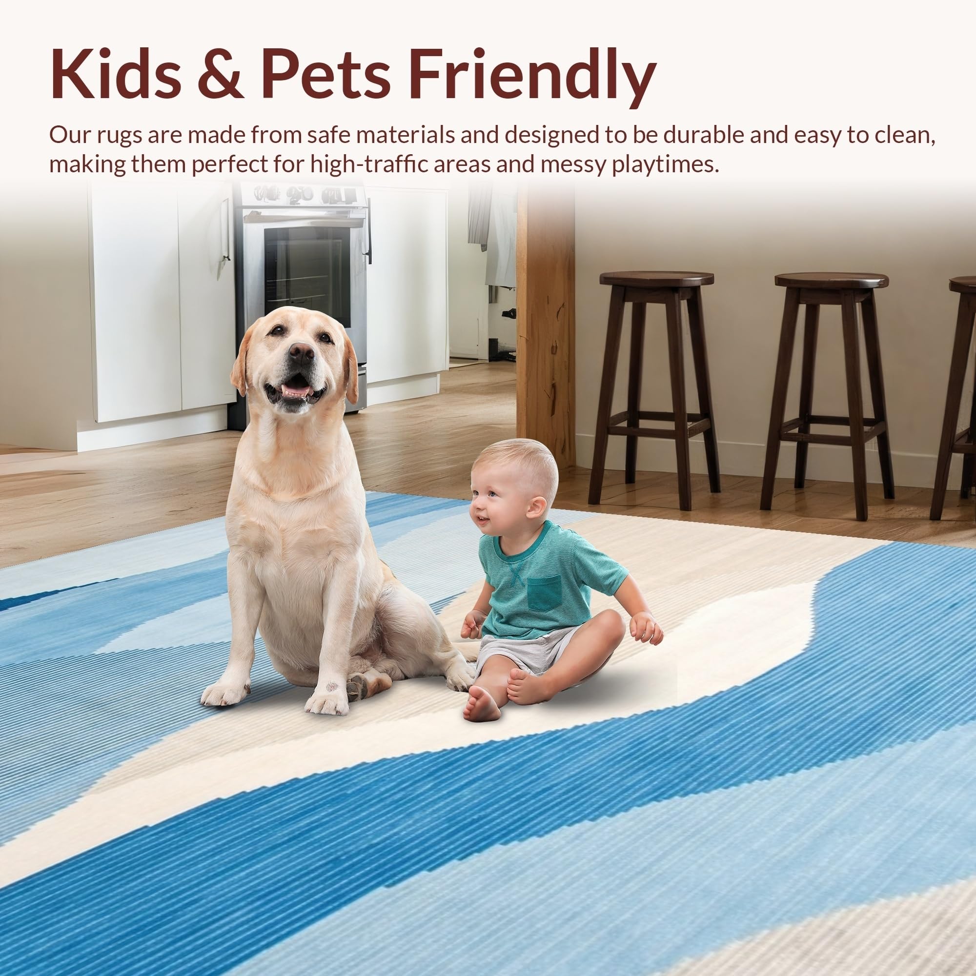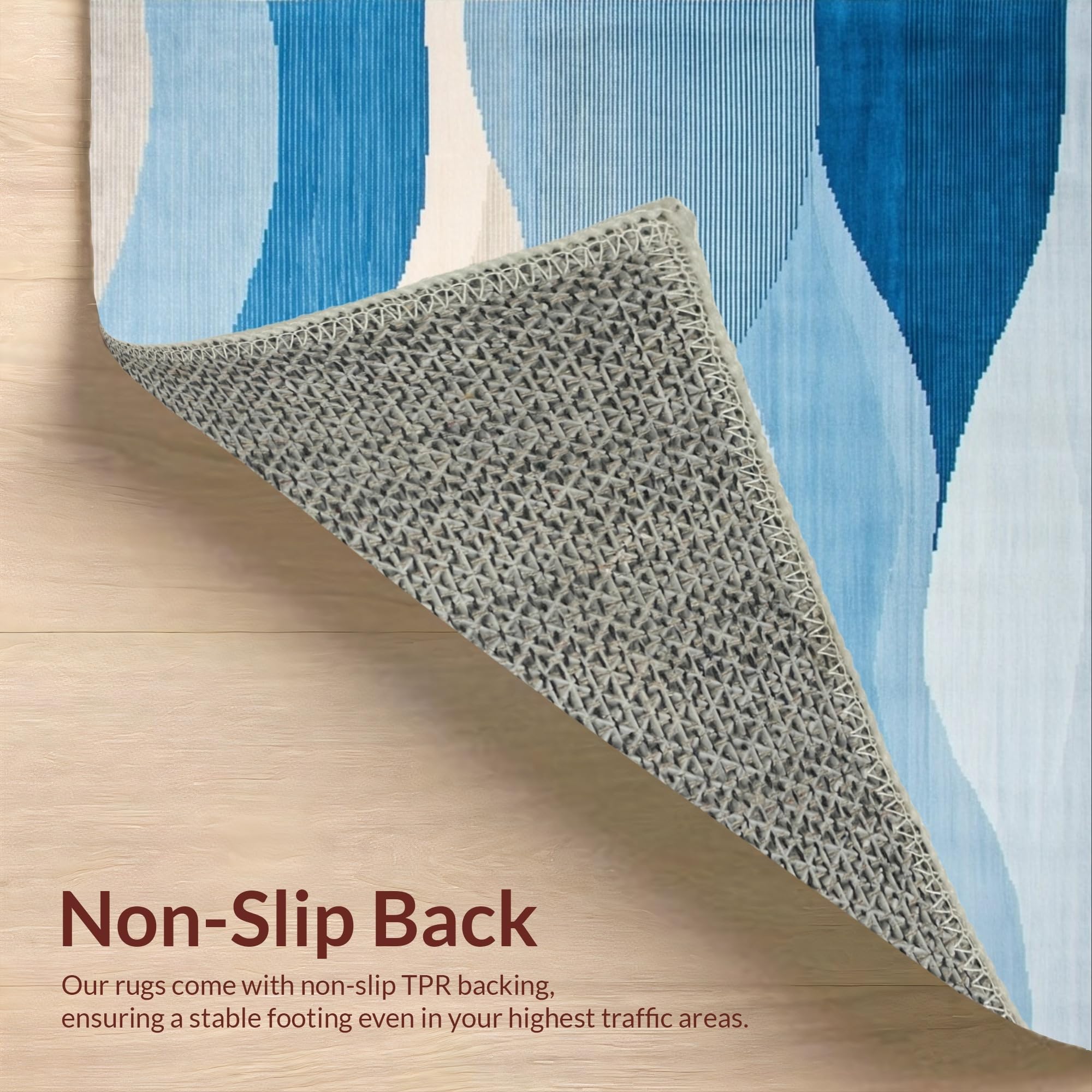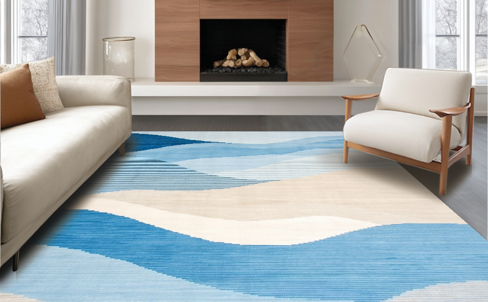 Ultra Soft Area Rug, Non Slip, Stain Resistant, Washable Area Rugs for Living Room, Bedroom, Chic Coastal Inspired Abstract Motif(Blue) Overview:
