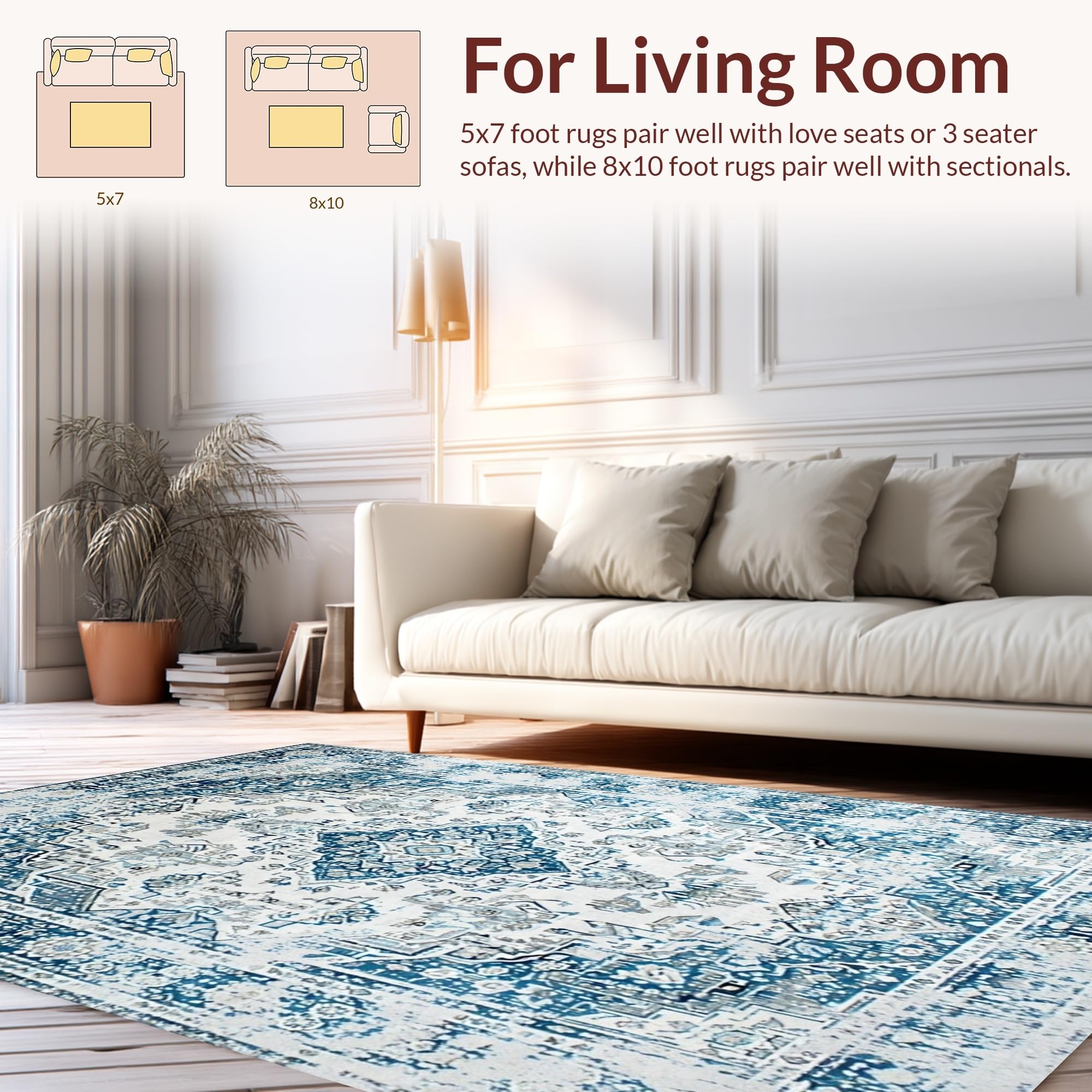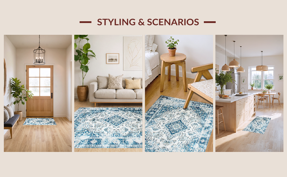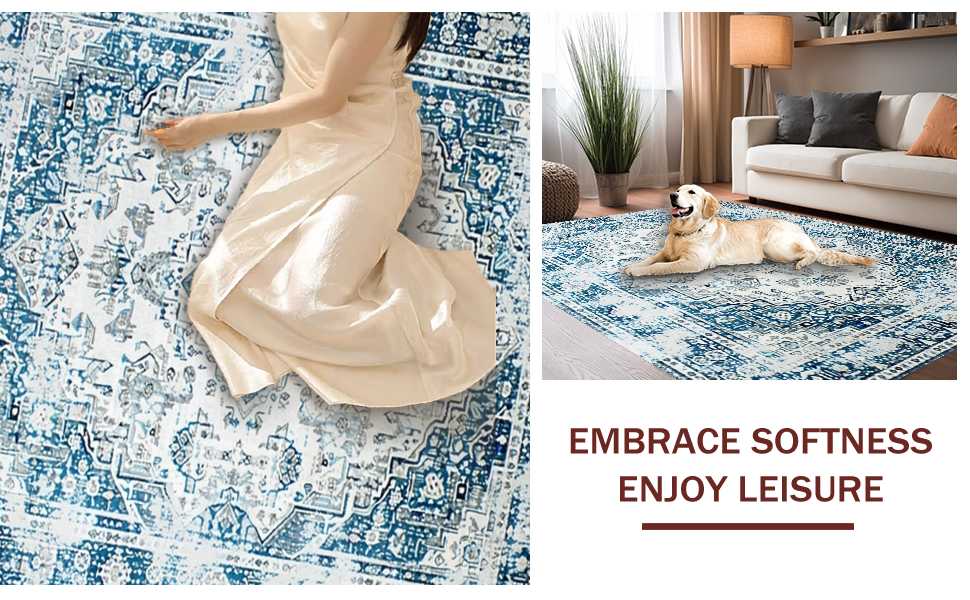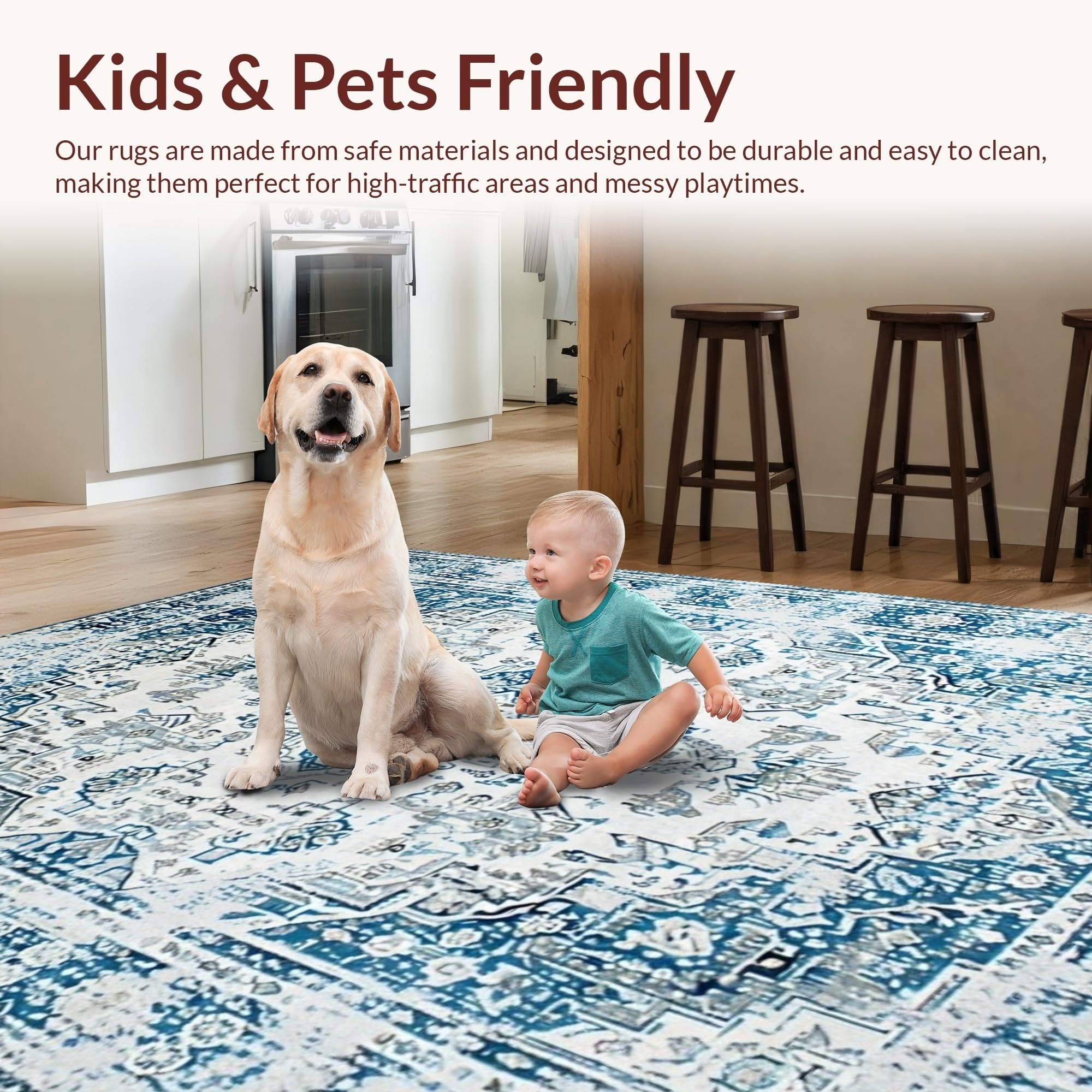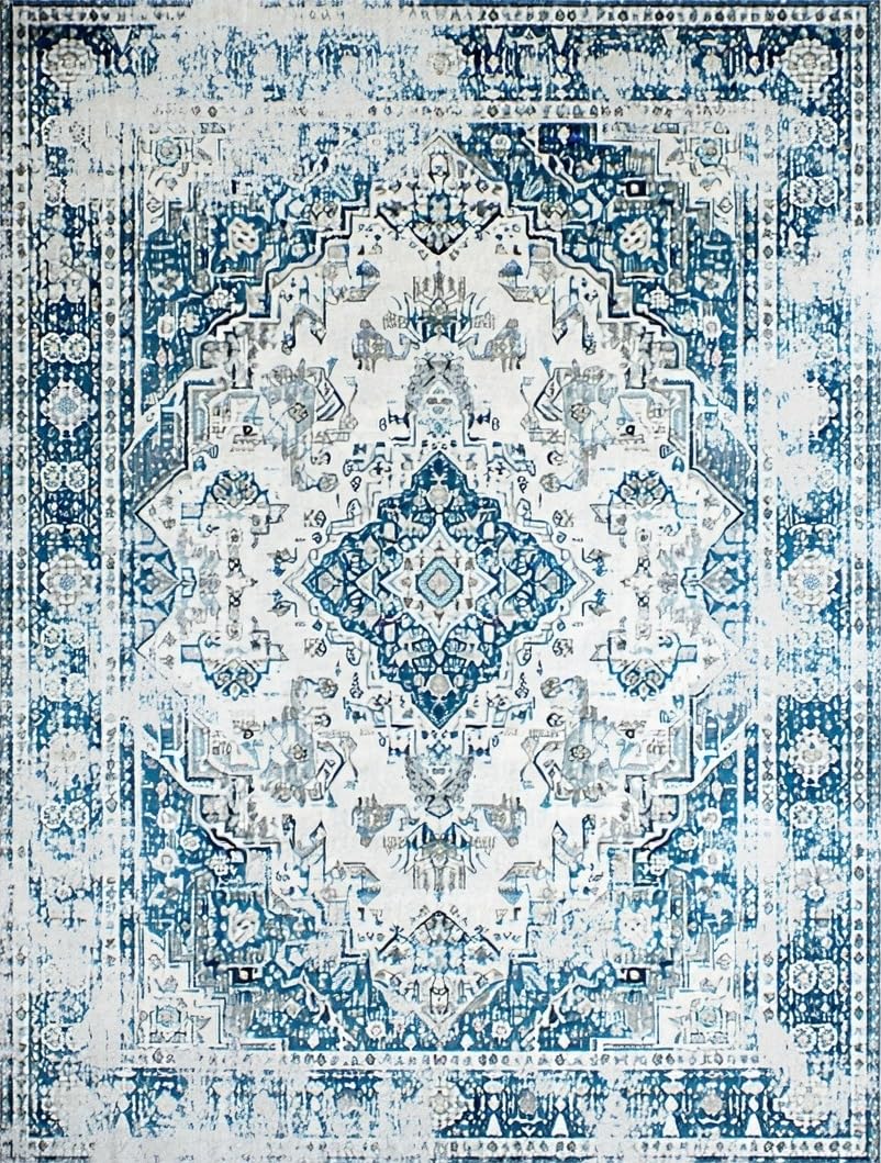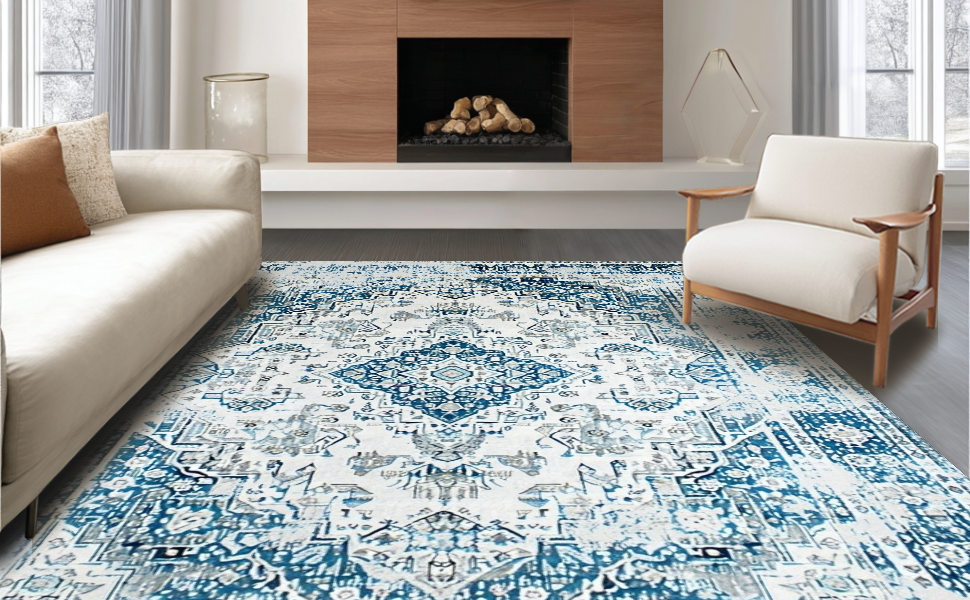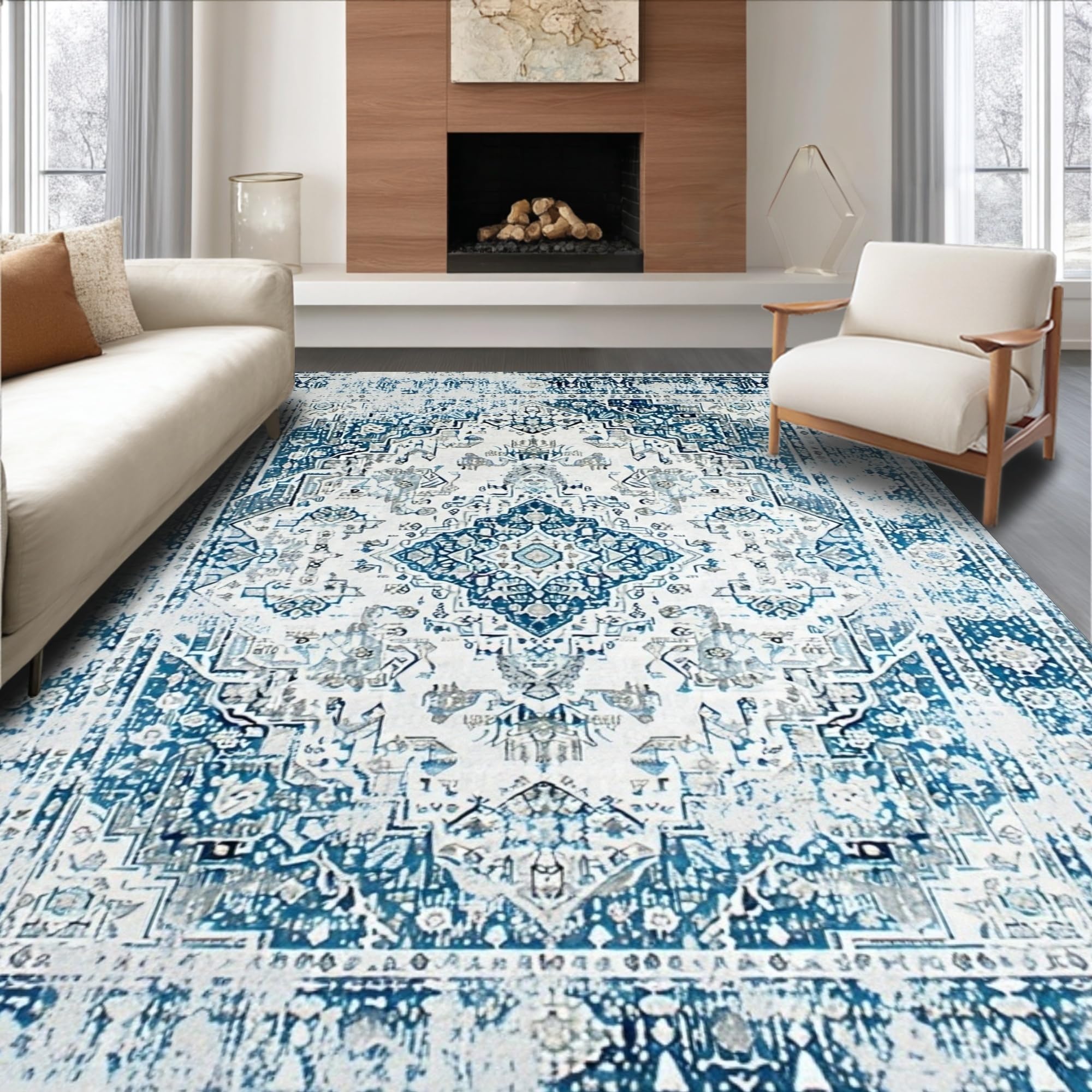 Ultra Soft Area Rug, Non Slip, Stain Resistant, Washable Area Rugs for Living Room, Bedroom, Chic Coastal Patterned Elements(Blue) Overview: