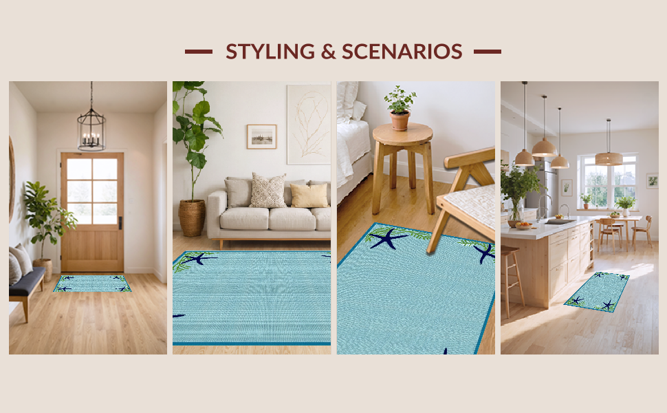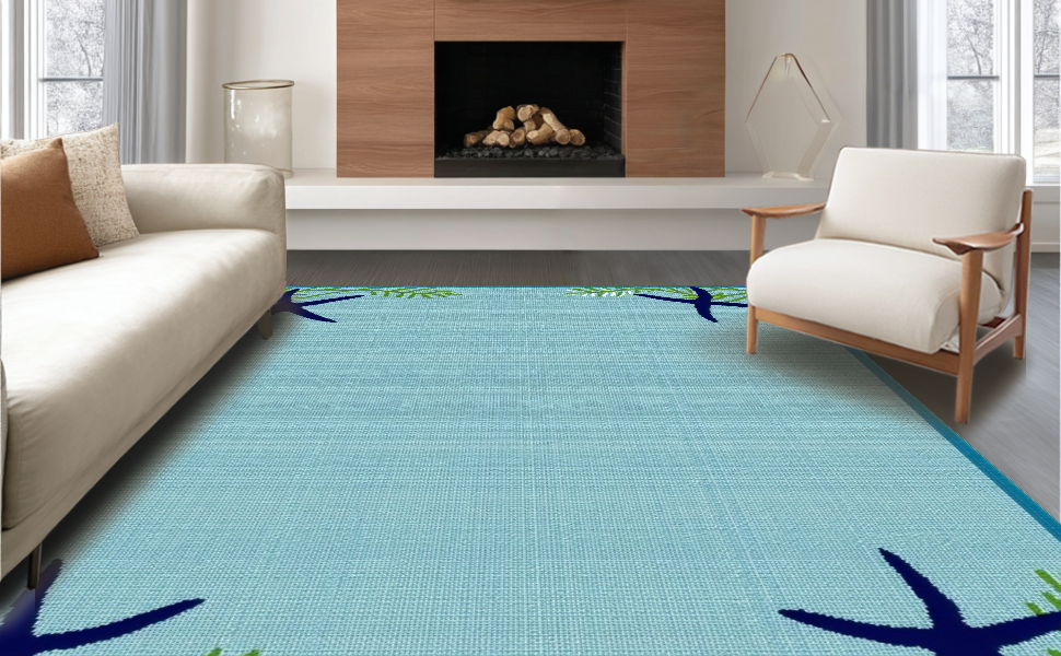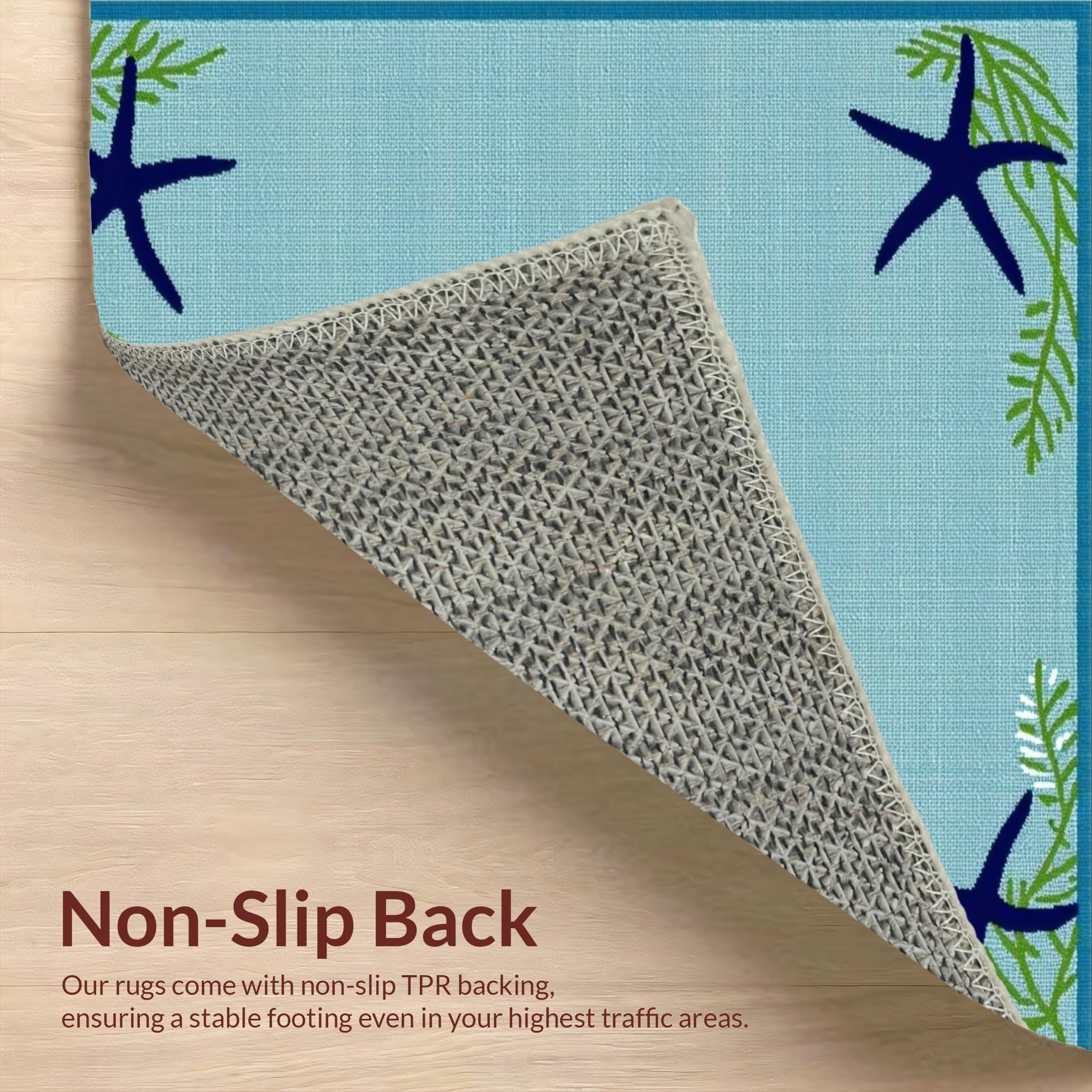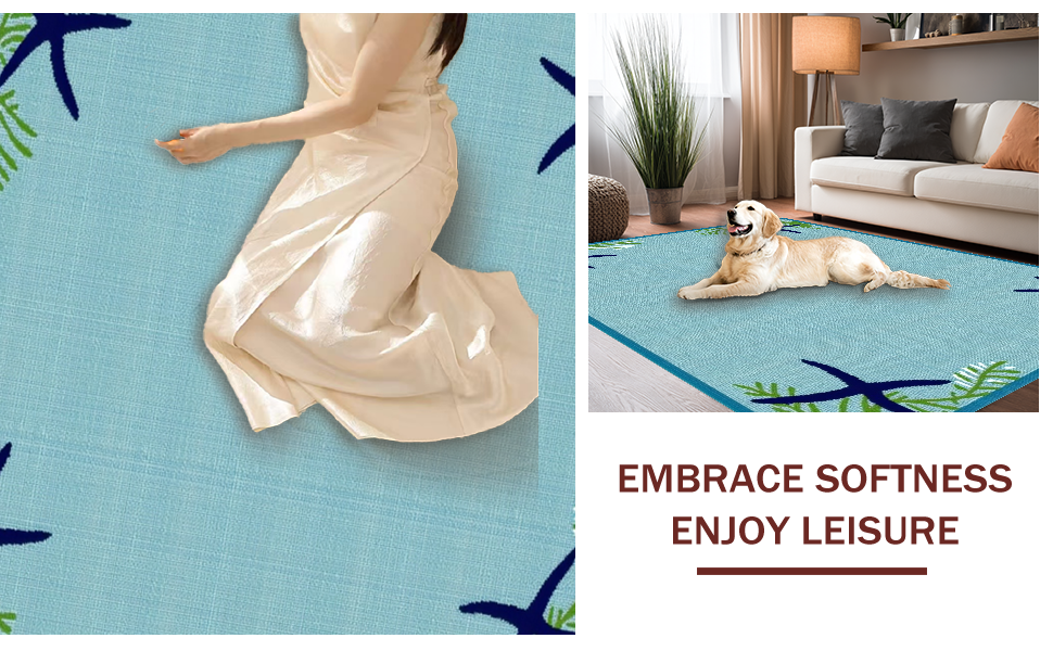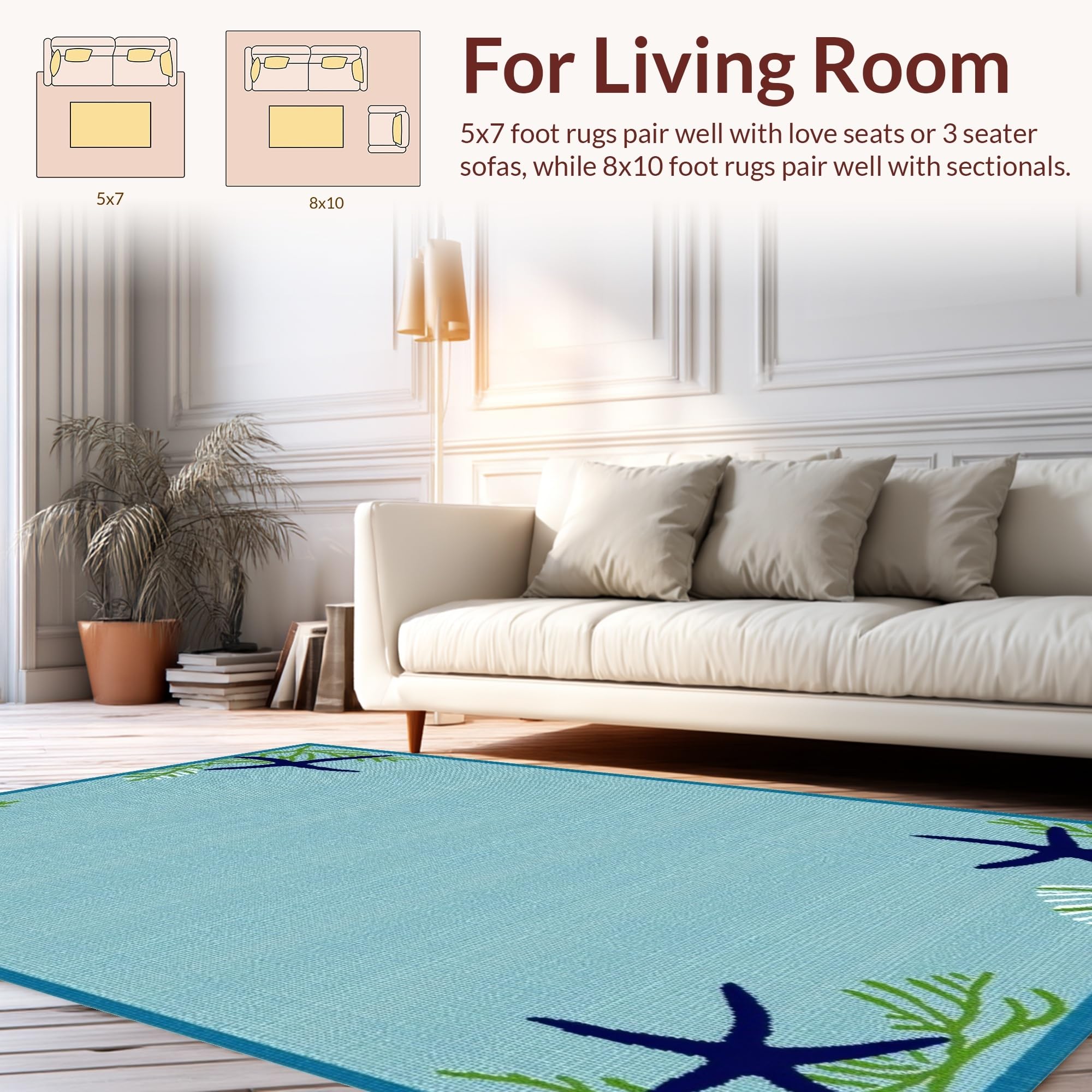 Ultra Soft Area Rug, Non Slip, Stain Resistant, Washable Area Rugs for Living Room, Bedroom, Chic Coastal Retreat Illustration(Blue) Overview: