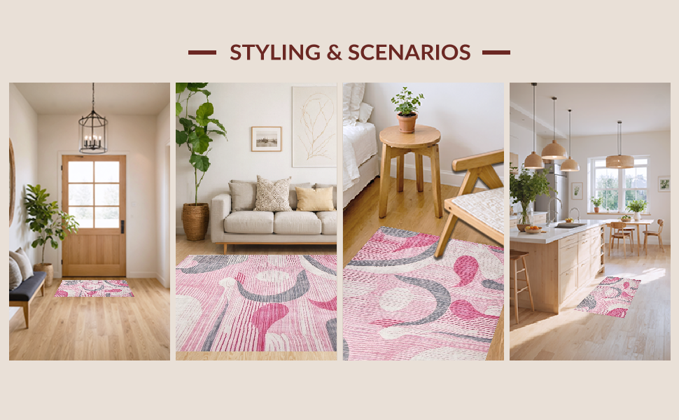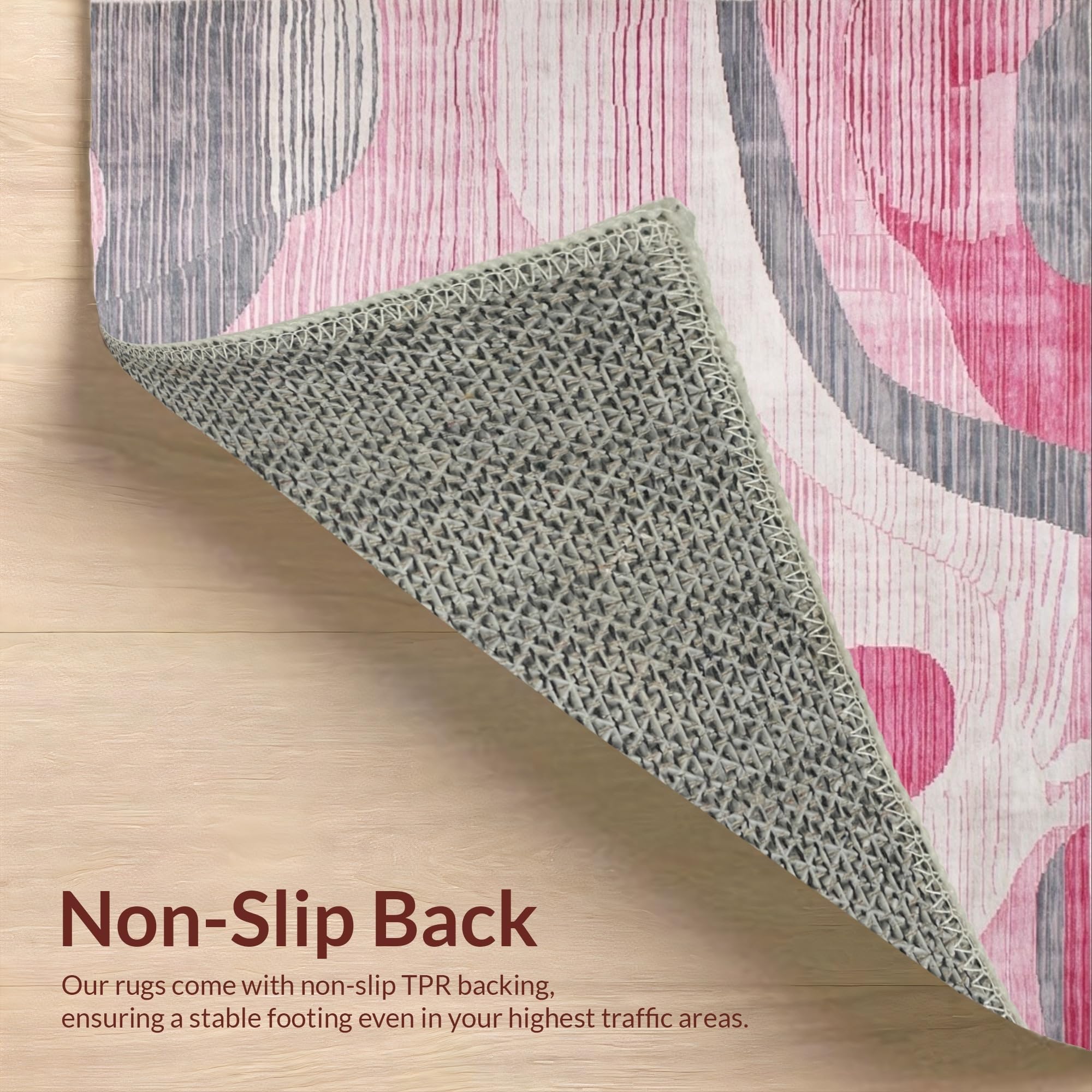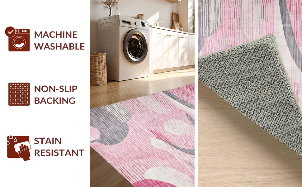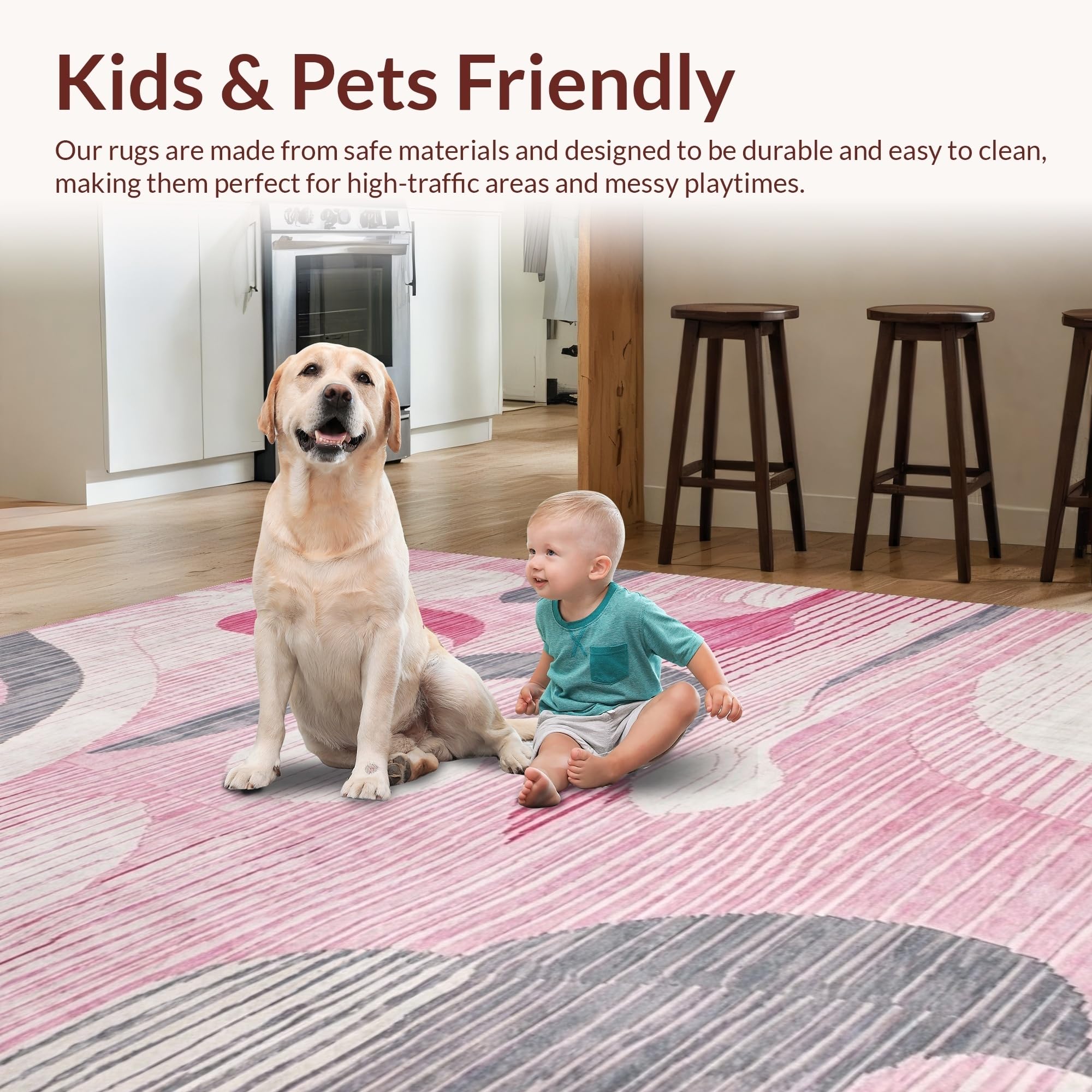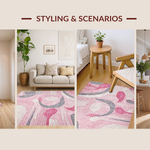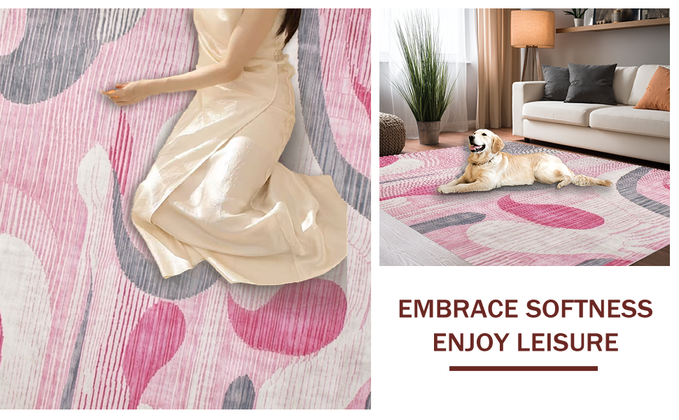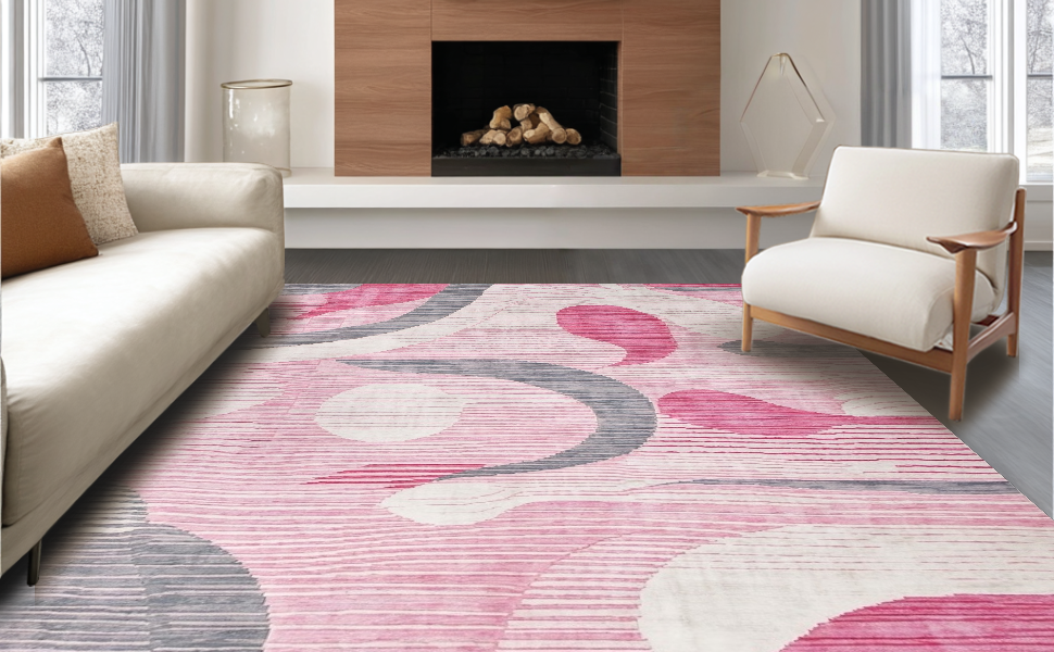 Ultra Soft Area Rug, Non Slip, Stain Resistant, Washable Area Rugs for Living Room, Bedroom, Chic Contemporary Artistic Elements(Pink) Overview: