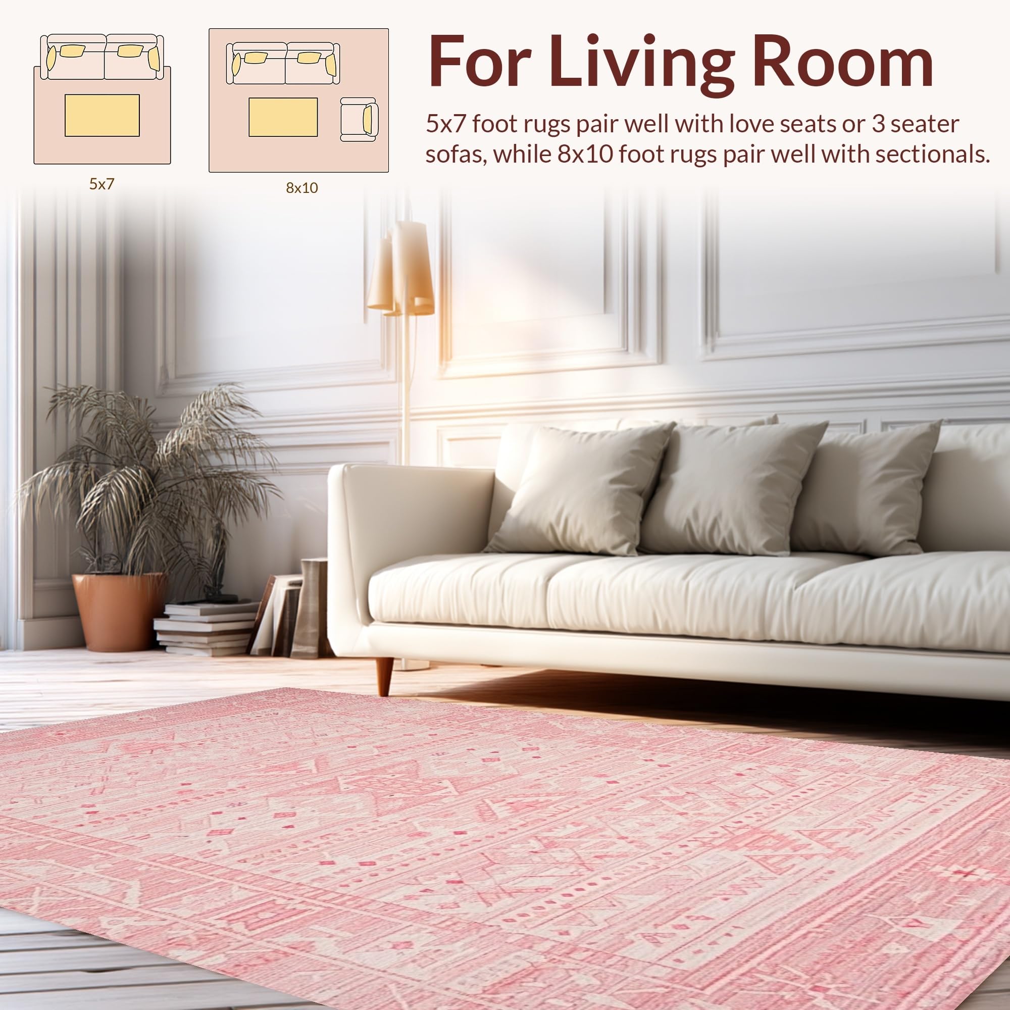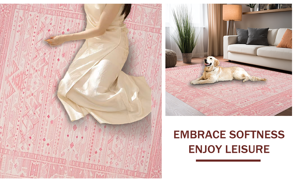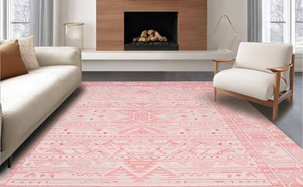 Ultra Soft Area Rug, Non Slip, Stain Resistant, Washable Area Rugs for Living Room, Bedroom, Chic Contemporary Dusty Pink Design(Red) Overview:
