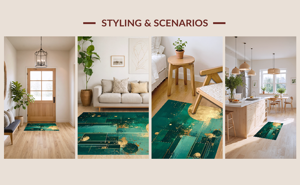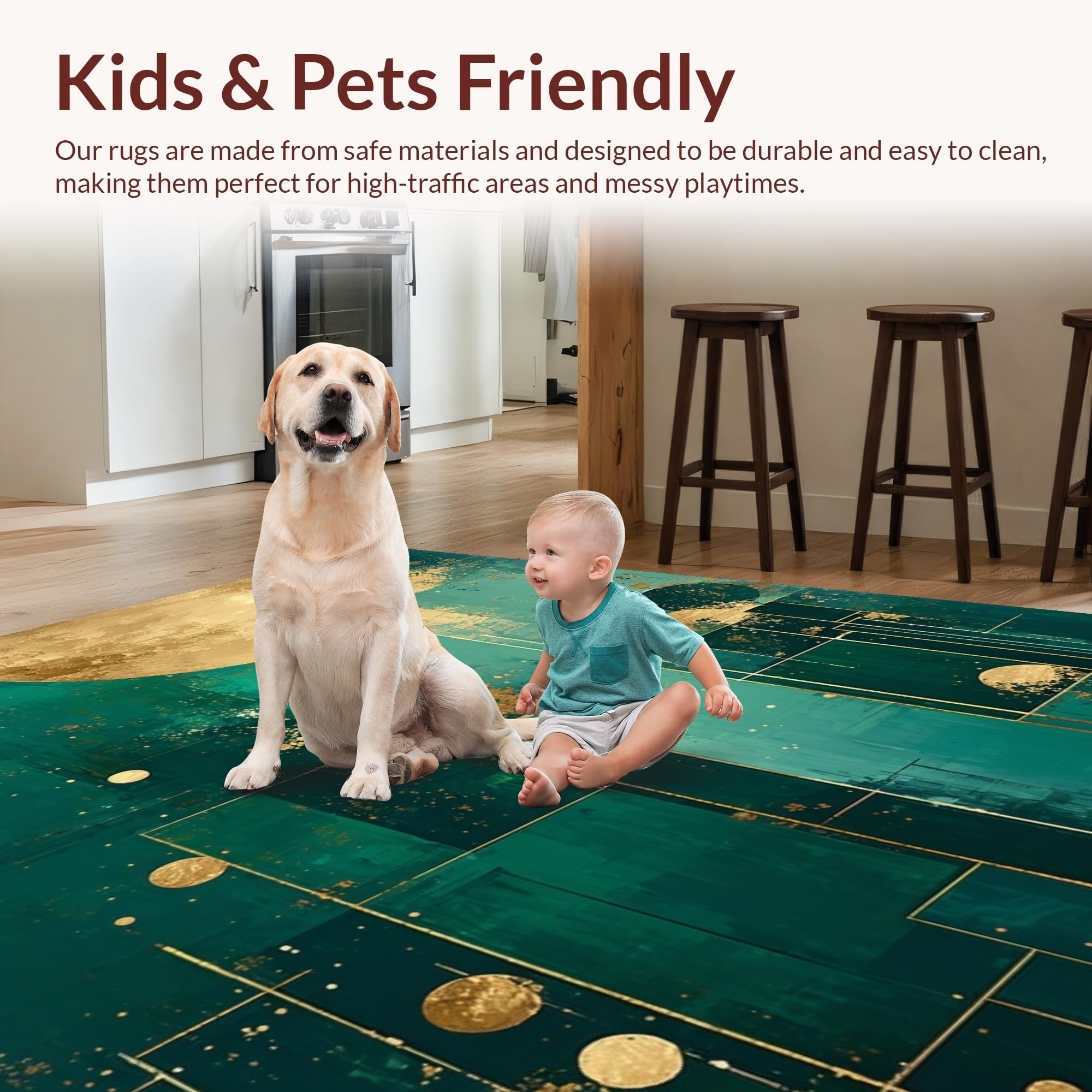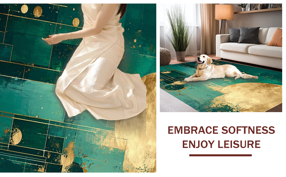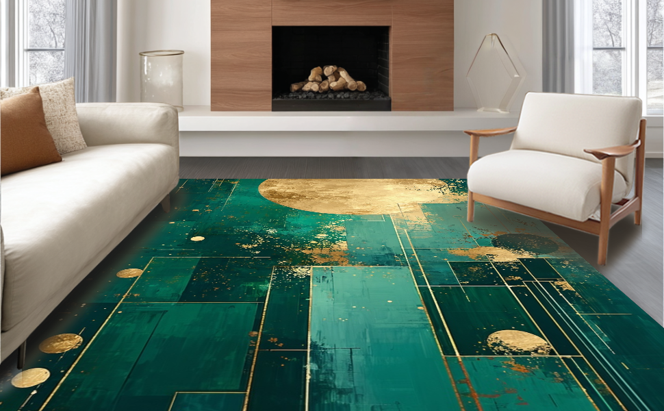 Ultra Soft Area Rug, Non Slip, Stain Resistant, Washable Area Rugs for Living Room, Bedroom, Chic Contemporary Faded Patterns(Green) Overview: