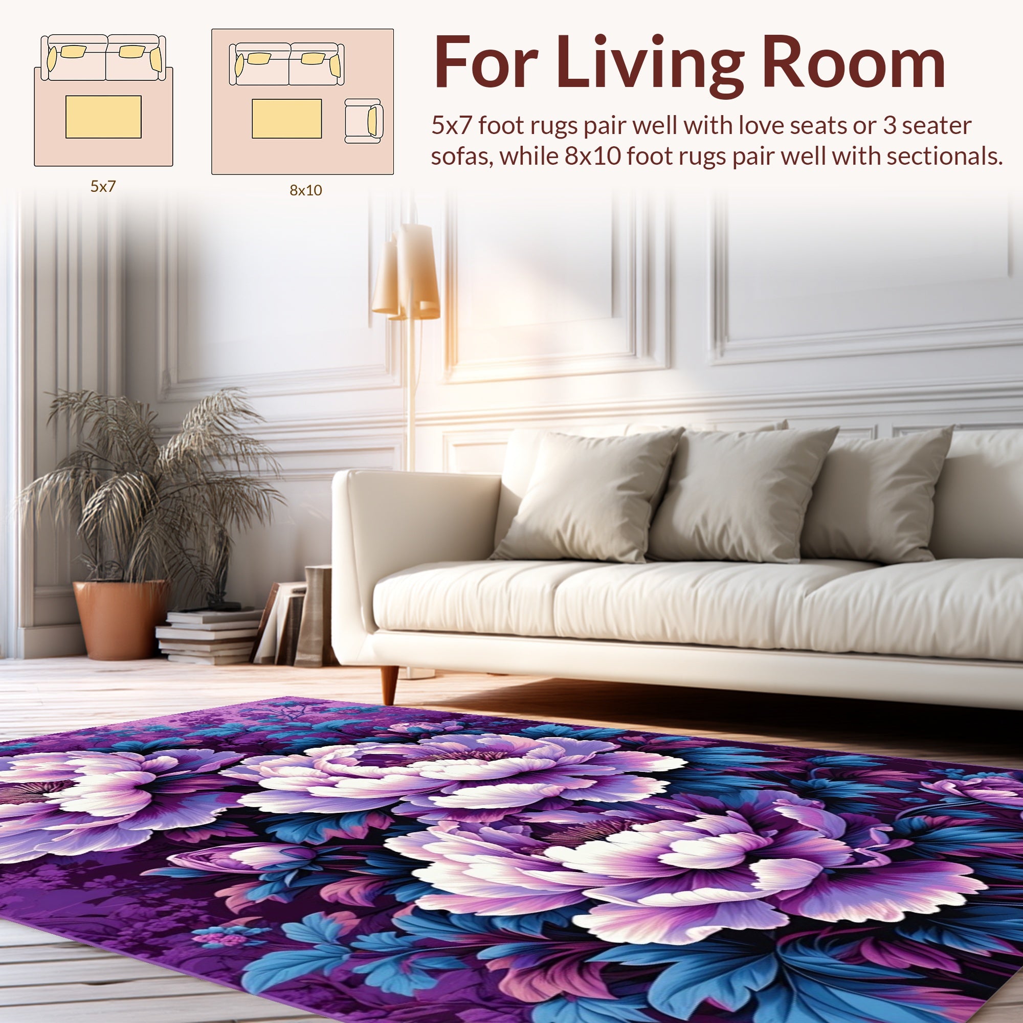 Flatwoven High Traffic Area Rug, Chic Contemporary Floral Touch, Non Slip, Stain Resistant, Washable Area Rugs for Living Room, Bedroom (Purple) Overview: