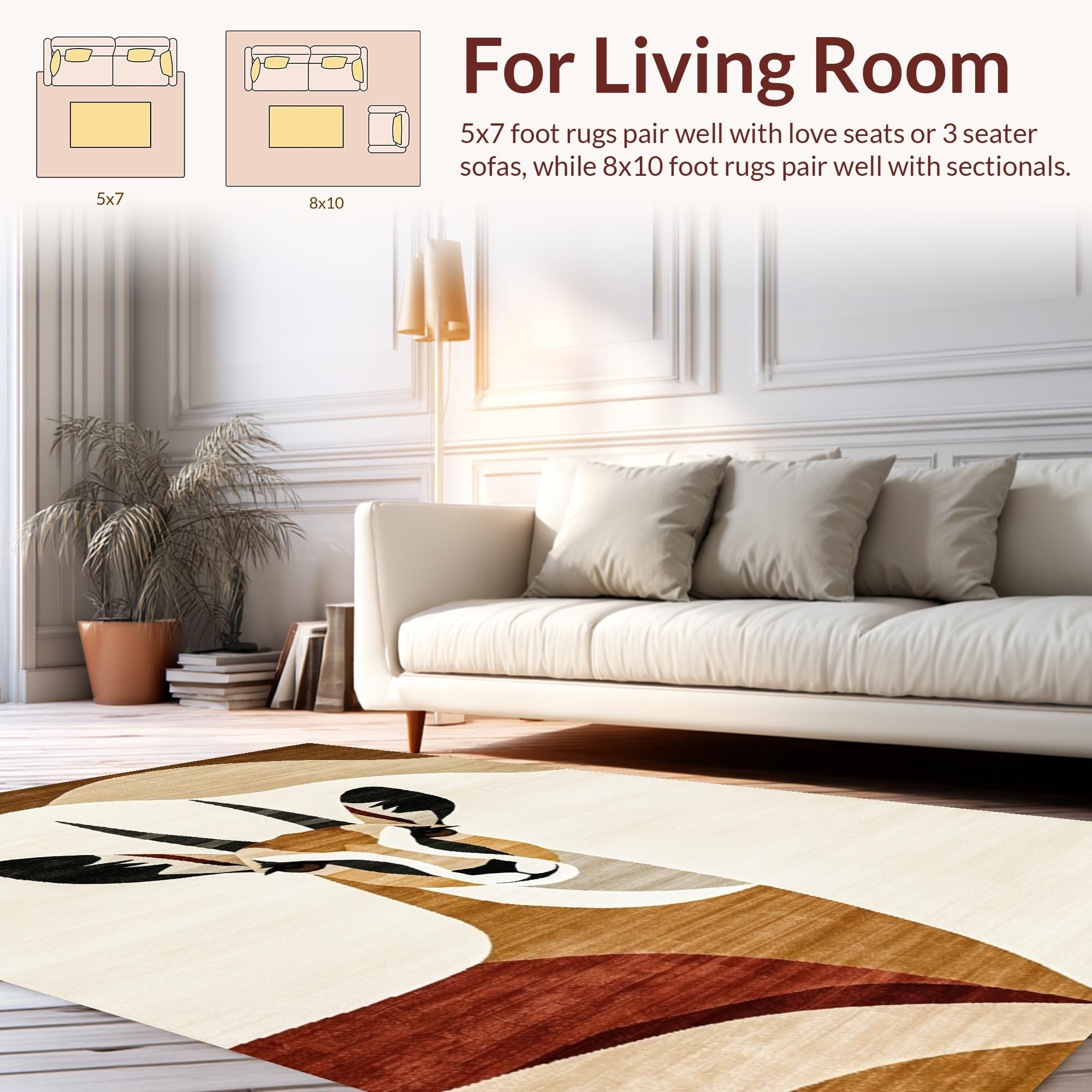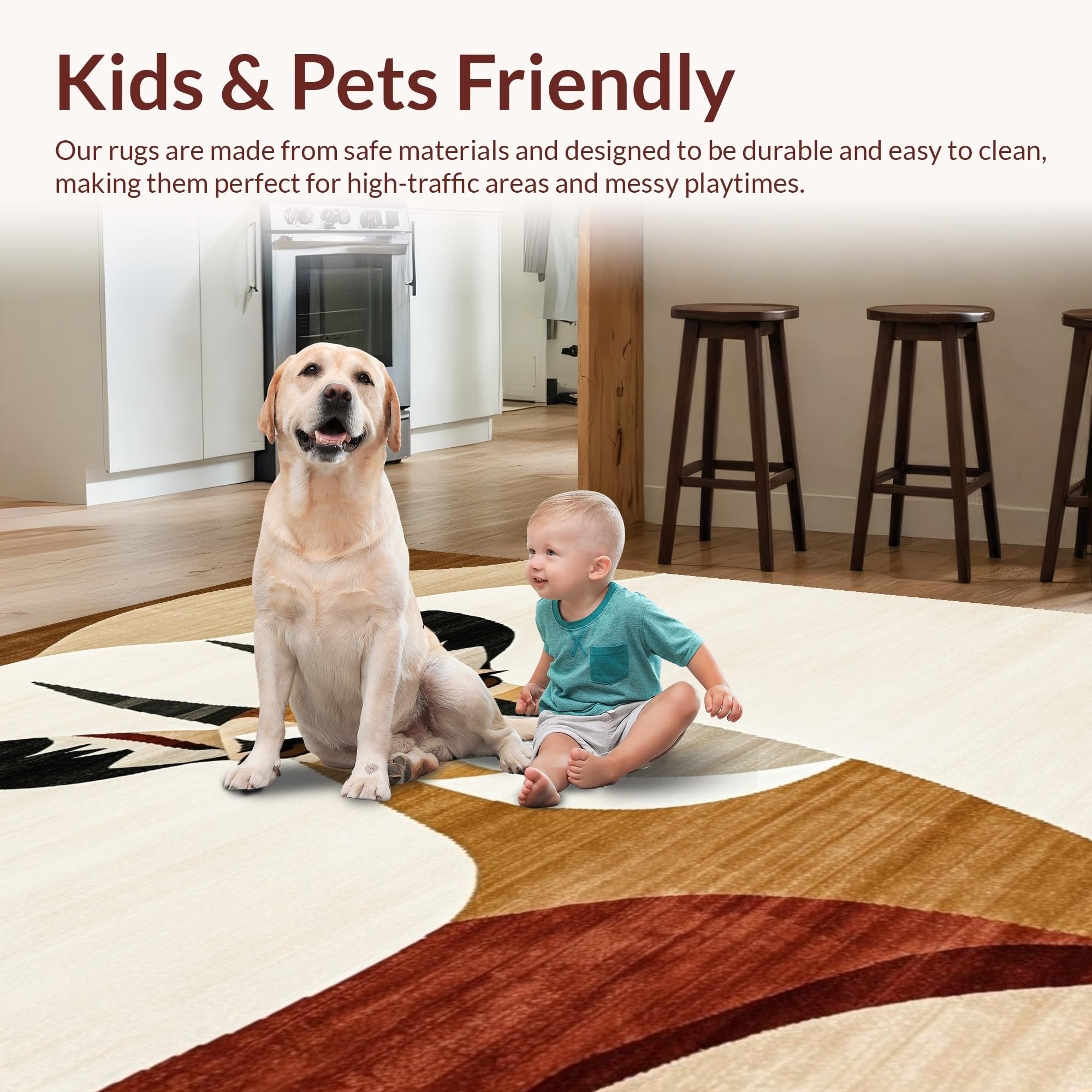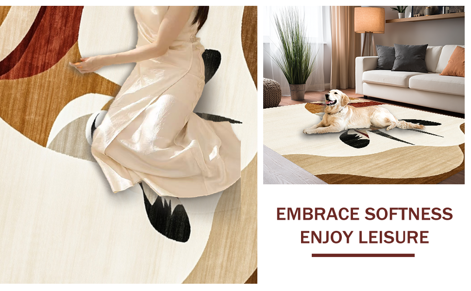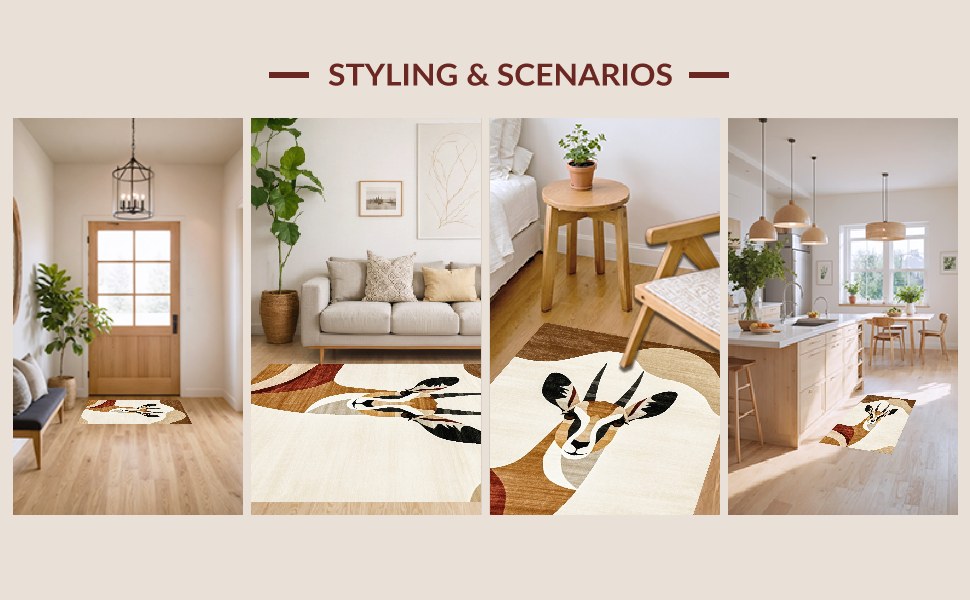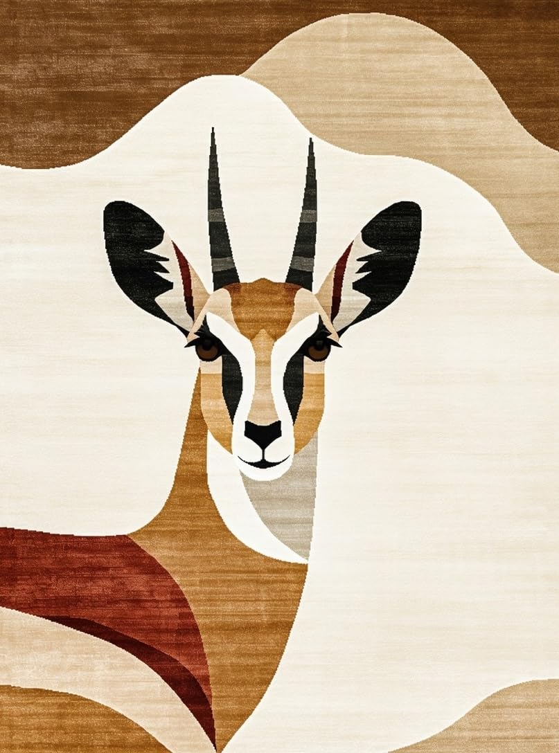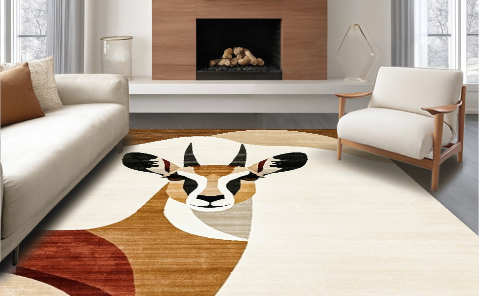 Ultra Soft Area Rug, Non Slip, Stain Resistant, Washable Area Rugs for Living Room, Bedroom, Chic Contemporary Wildlife Design(Beige) Overview: