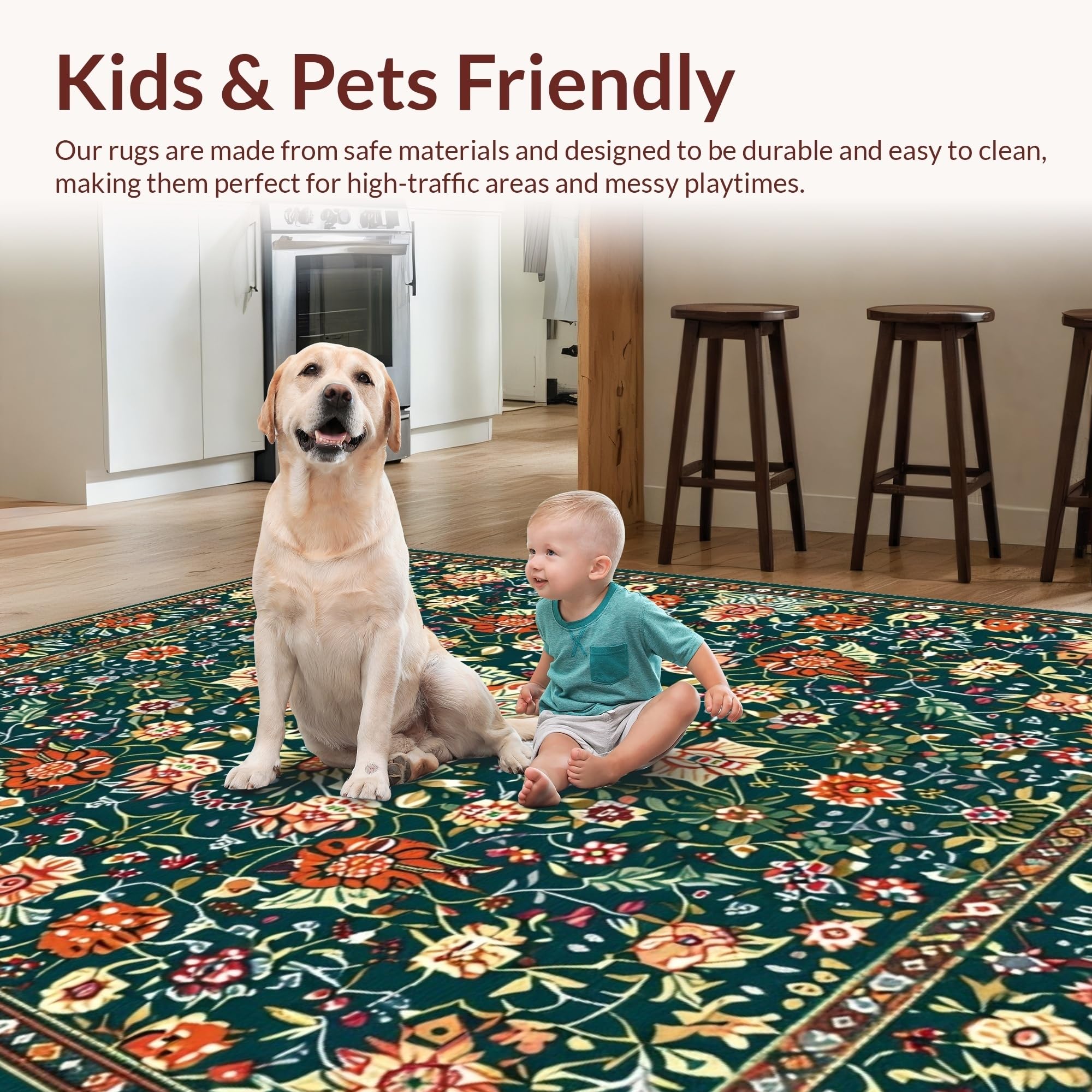 Ultra Soft Area Rug, Non Slip, Stain Resistant, Washable Area Rugs for Living Room, Bedroom, Chic Cottage Style Botanical Print(Green) Overview: