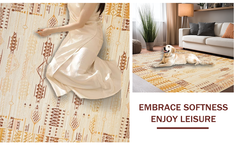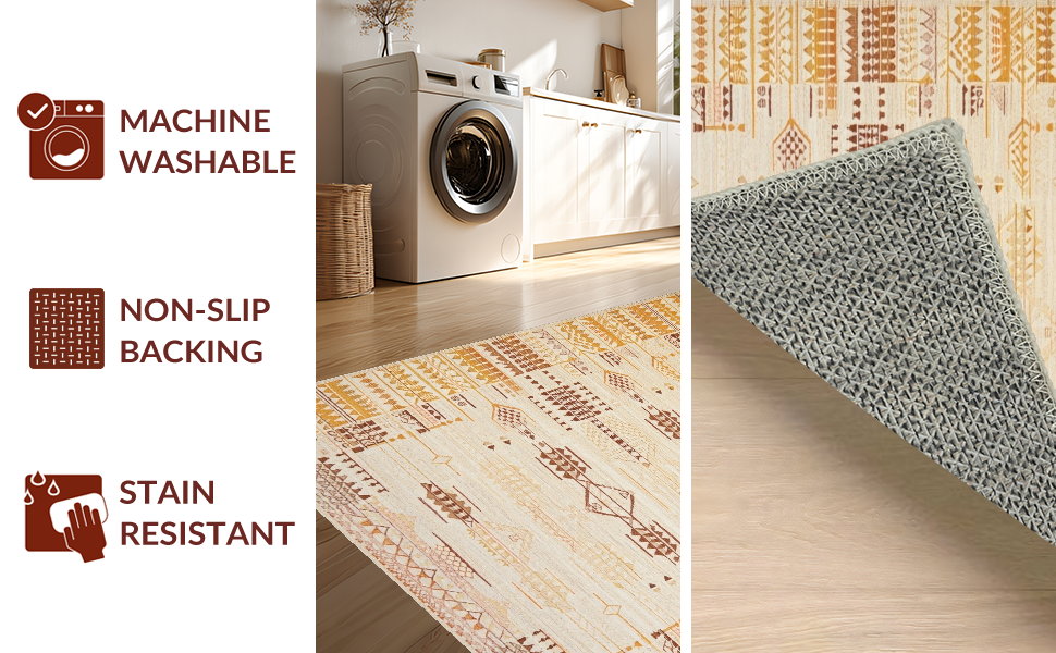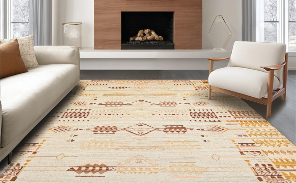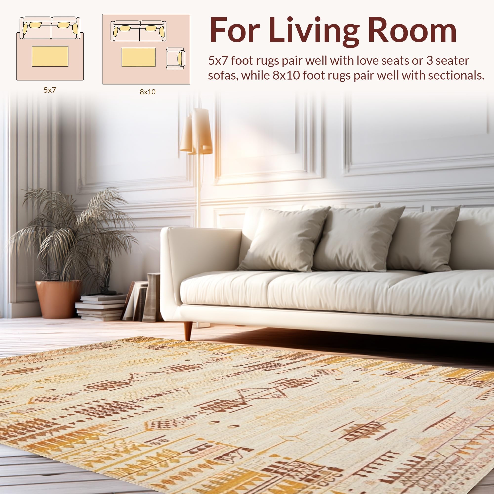 Ultra Soft Area Rug, Non Slip, Stain Resistant, Washable Area Rugs for Living Room, Bedroom, Chic Cotton Woven Pattern(Beige) Overview: