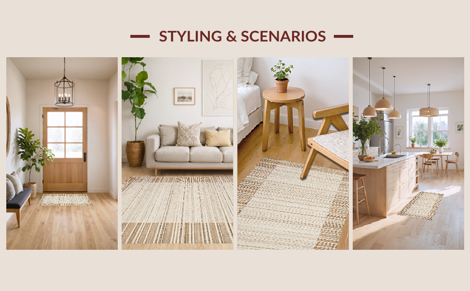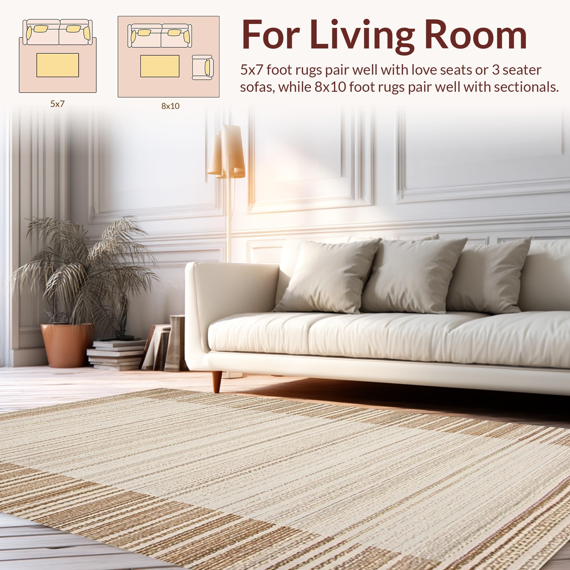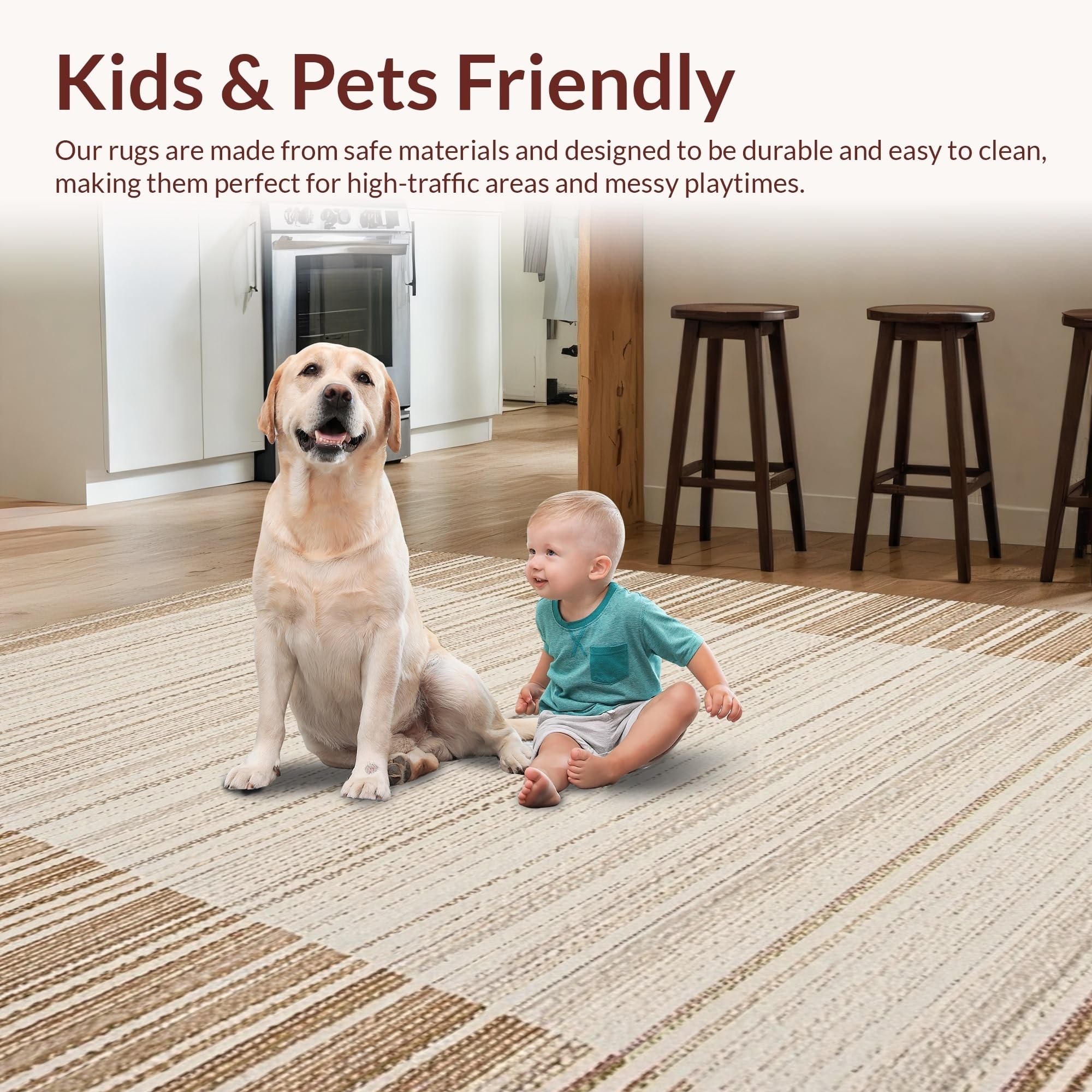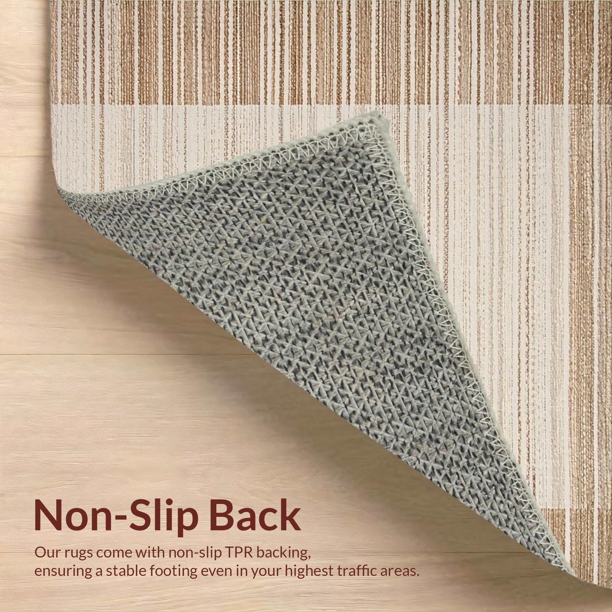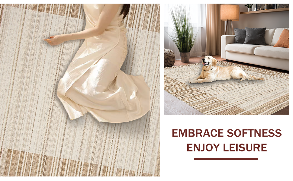 Ultra Soft Area Rug, Non Slip, Stain Resistant, Washable Area Rugs for Living Room, Bedroom, Chic Cozy Abstract Design(Beige) Overview: