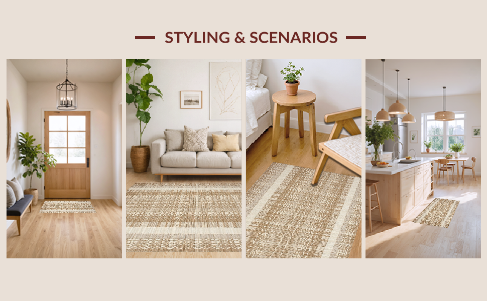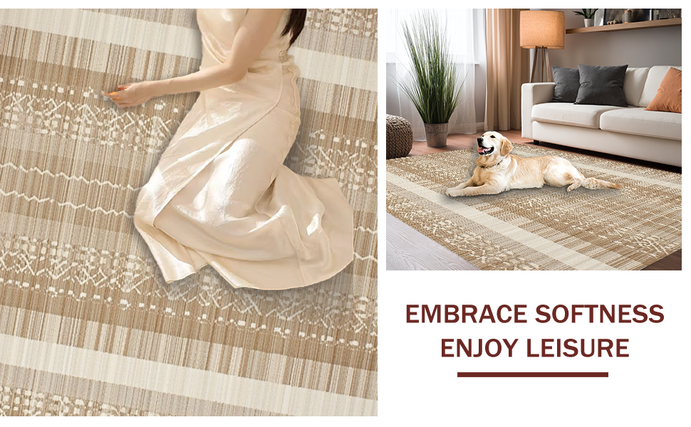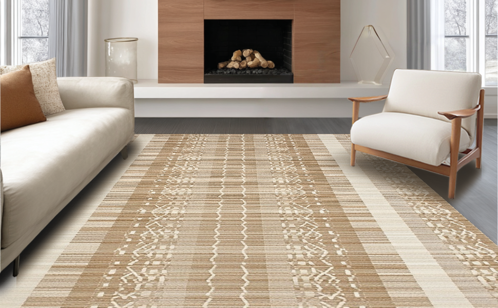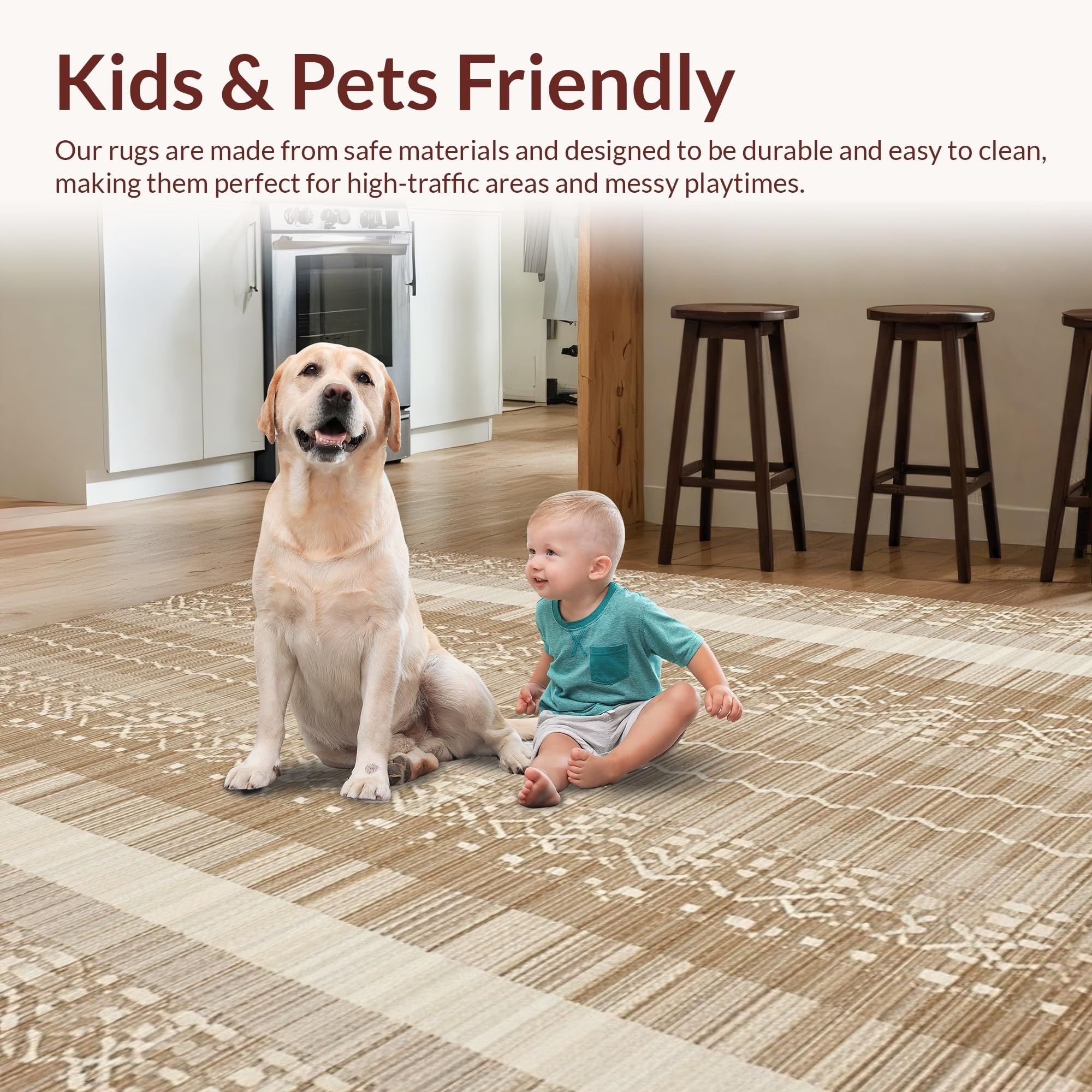 Ultra Soft Area Rug, Non Slip, Stain Resistant, Washable Area Rugs for Living Room, Bedroom, Chic Cozy Tiled Aesthetic(Beige) Overview: