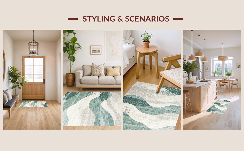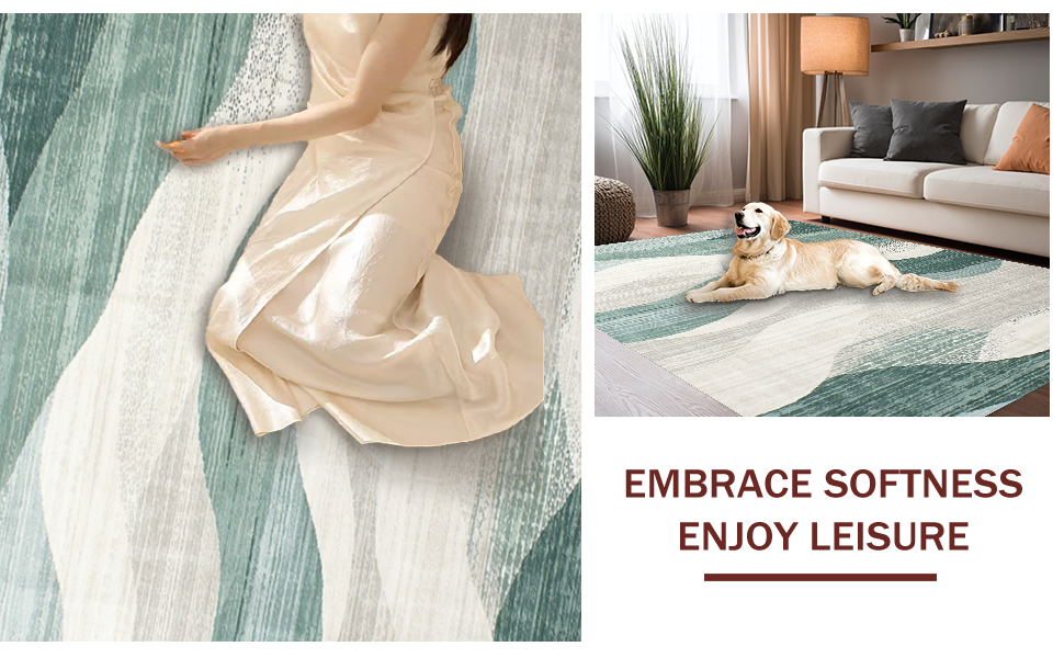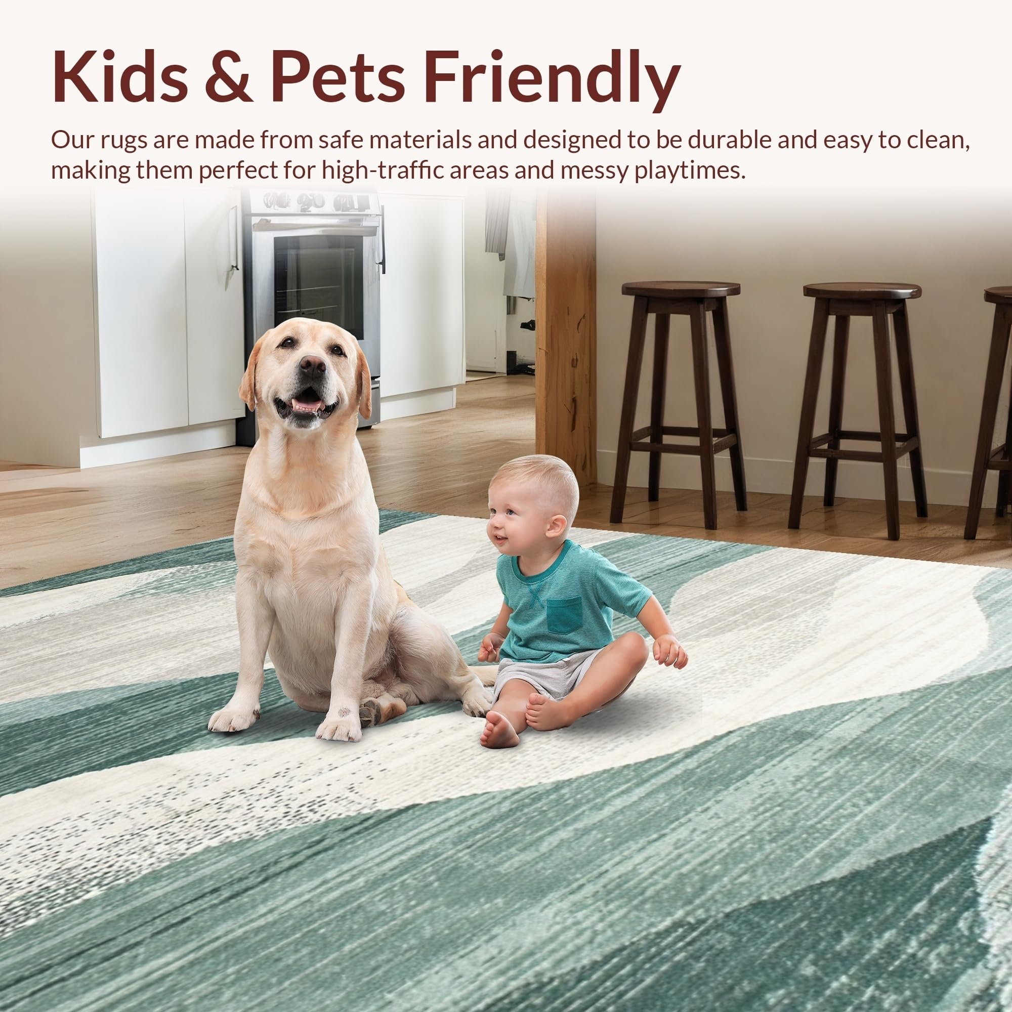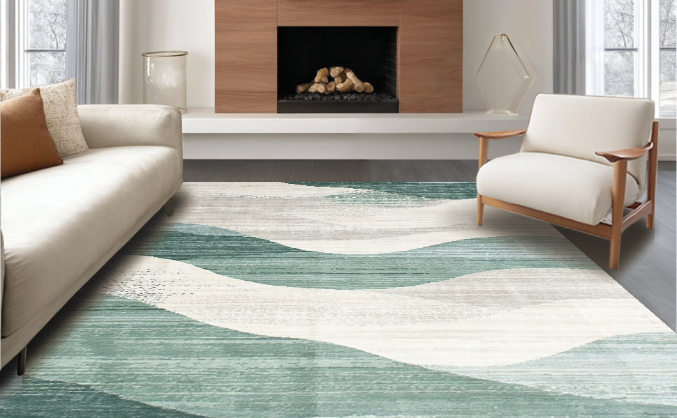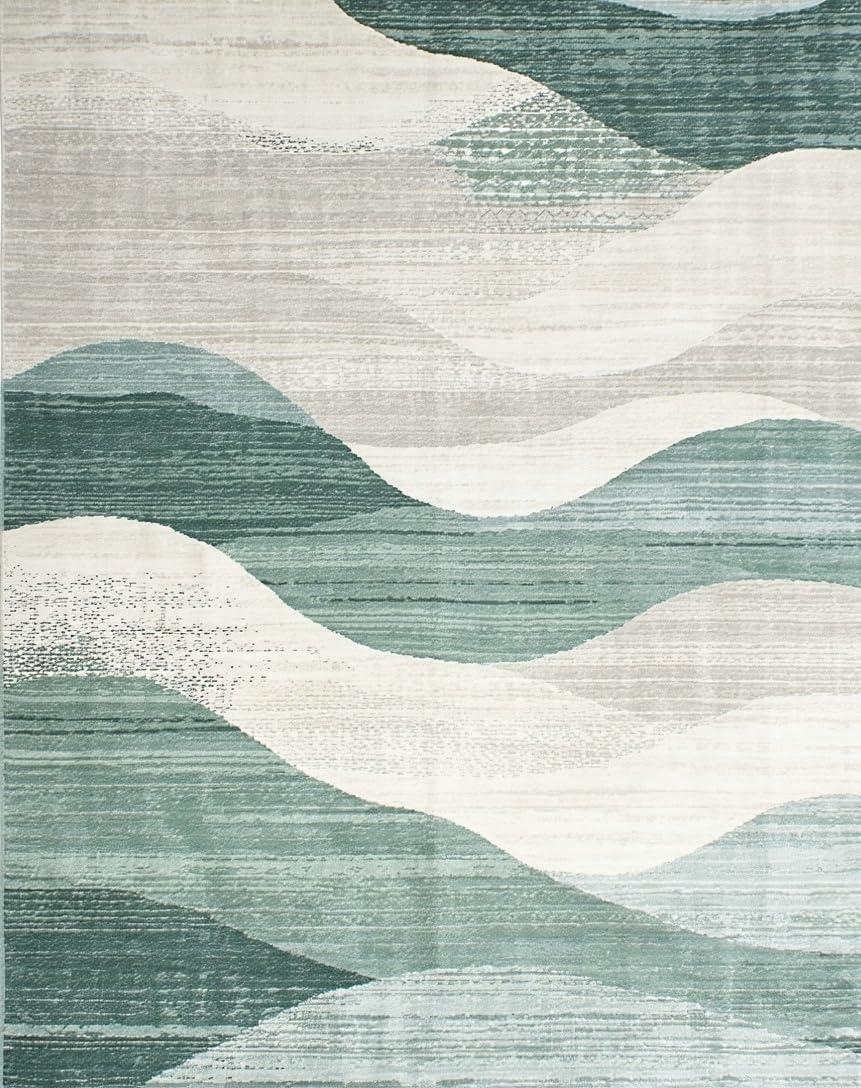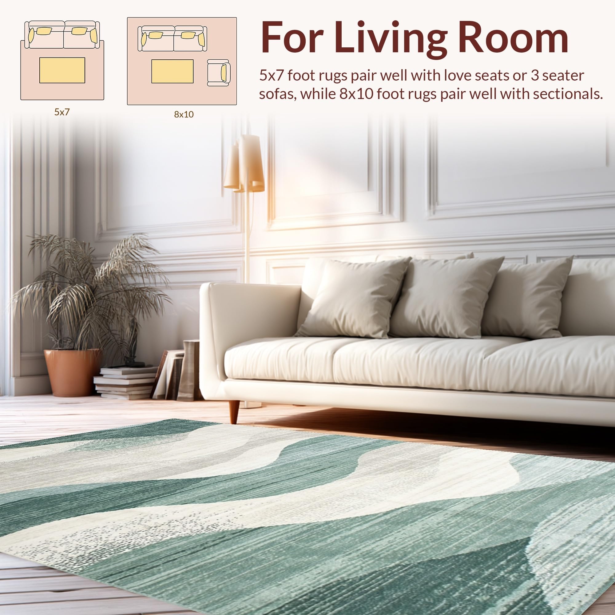 Ultra Soft Area Rug, Non Slip, Stain Resistant, Washable Area Rugs for Living Room, Bedroom, Chic Cream and Green Fluid Motif(Gray) Overview: