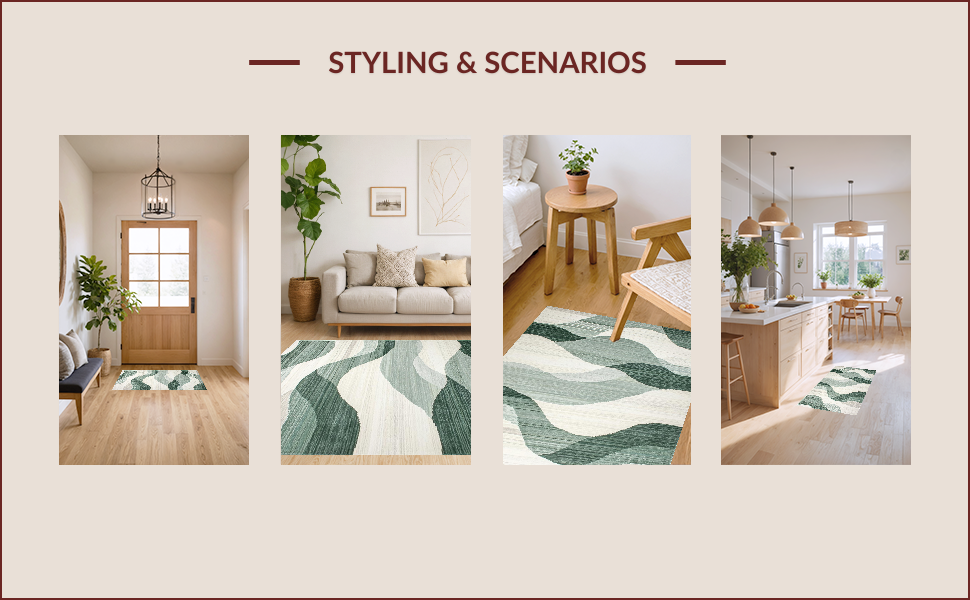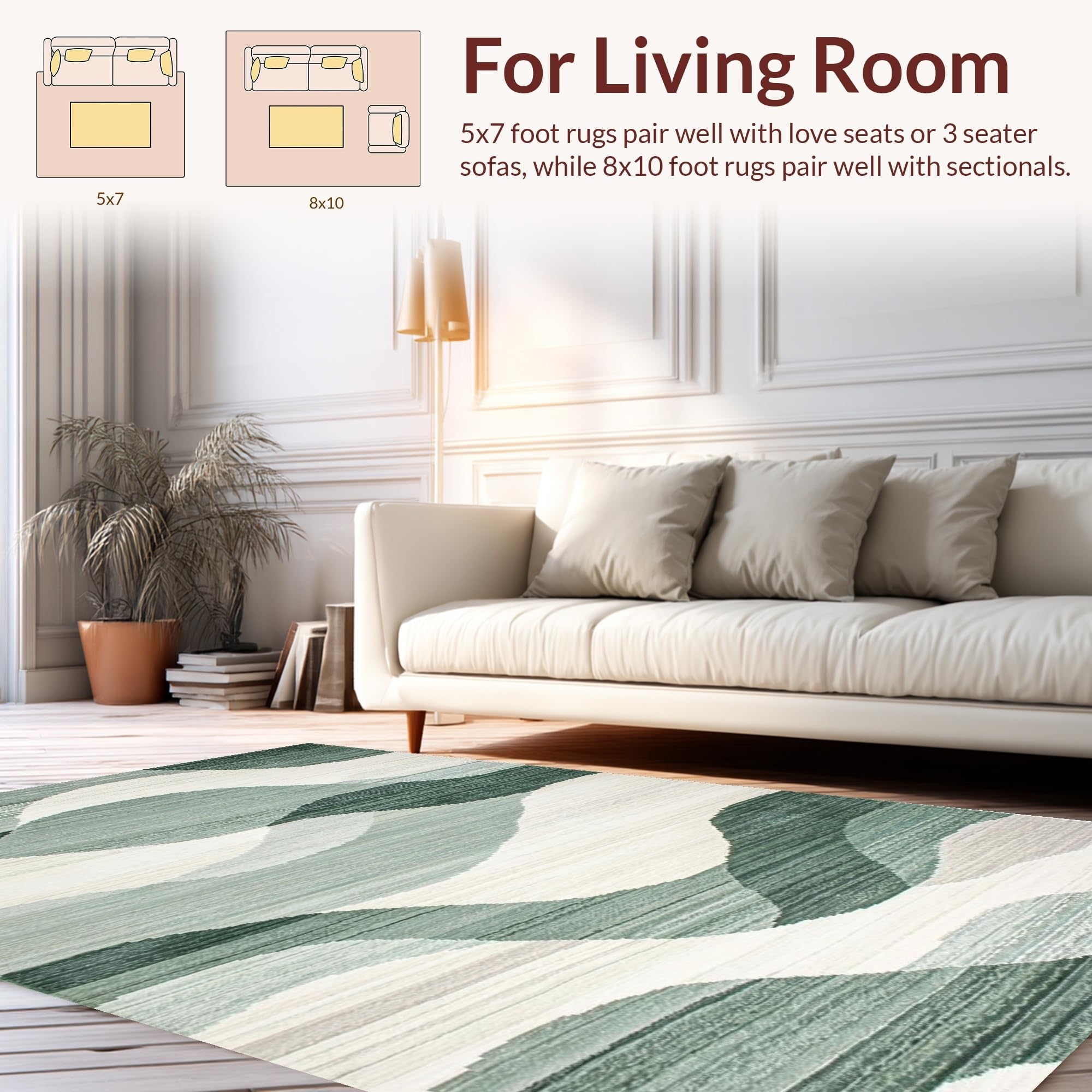 Ultra Soft Area Rug, Non Slip, Stain Resistant, Washable Area Rugs for Living Room, Bedroom, Chic Cream Sage Abstract Motif(Gray) Overview: