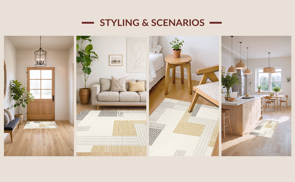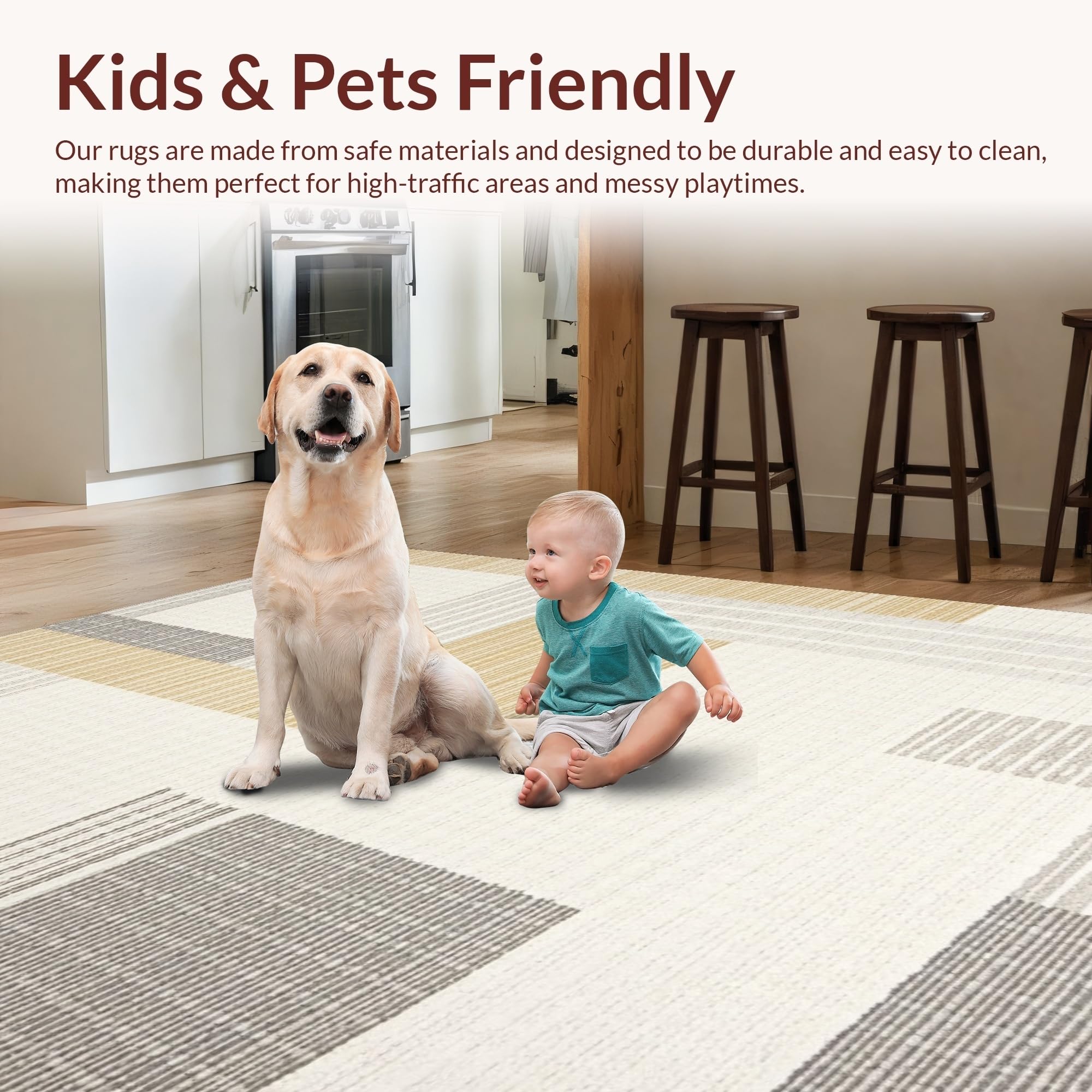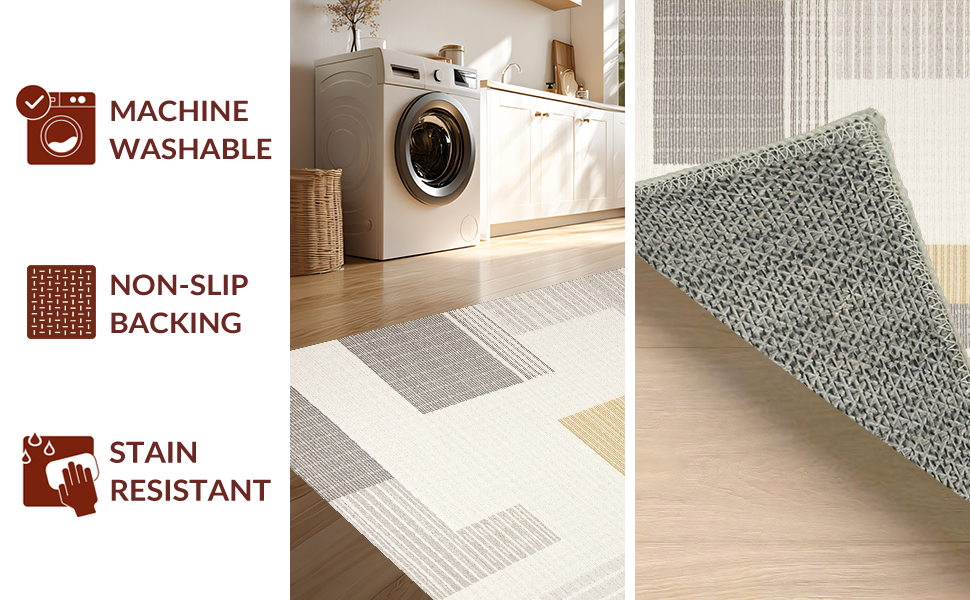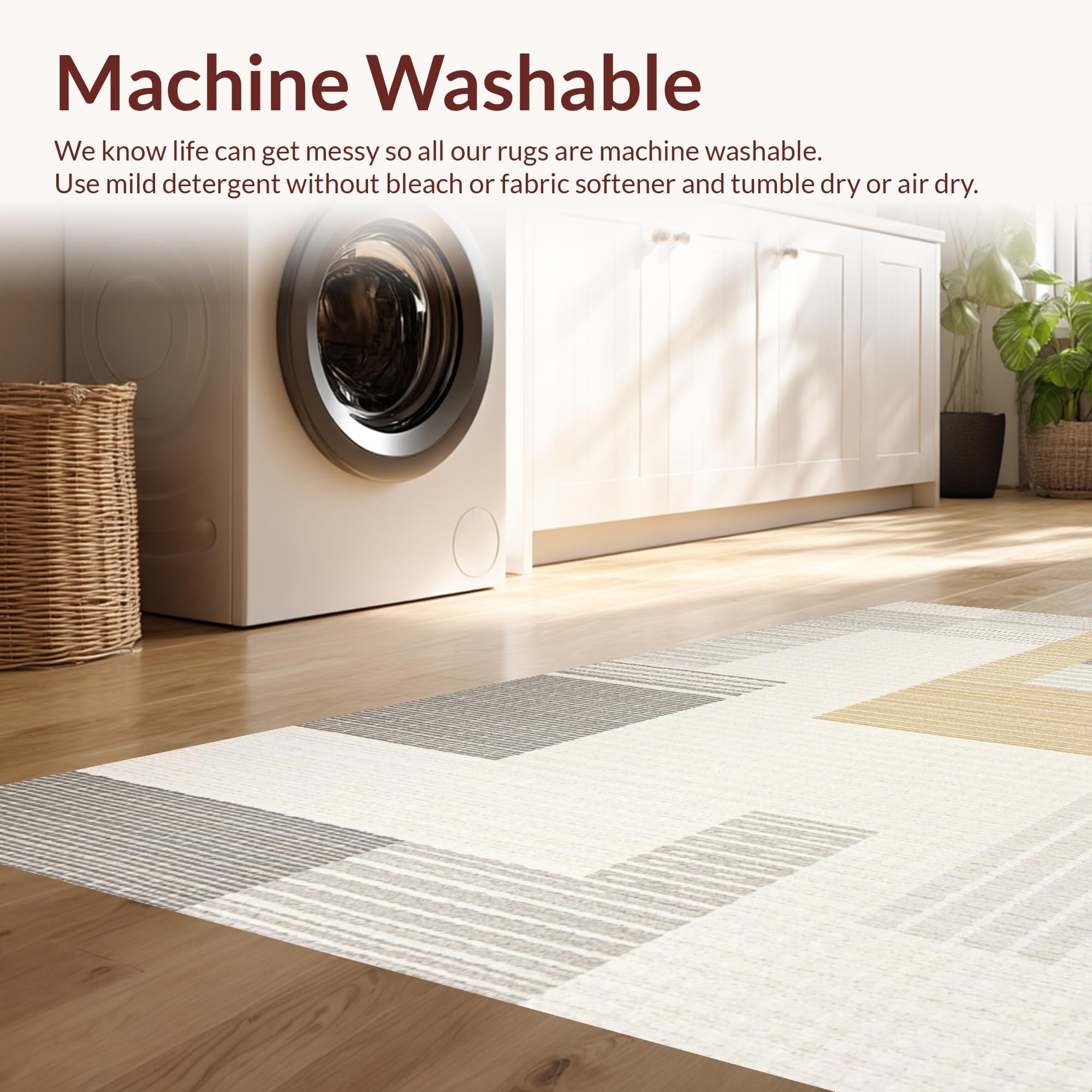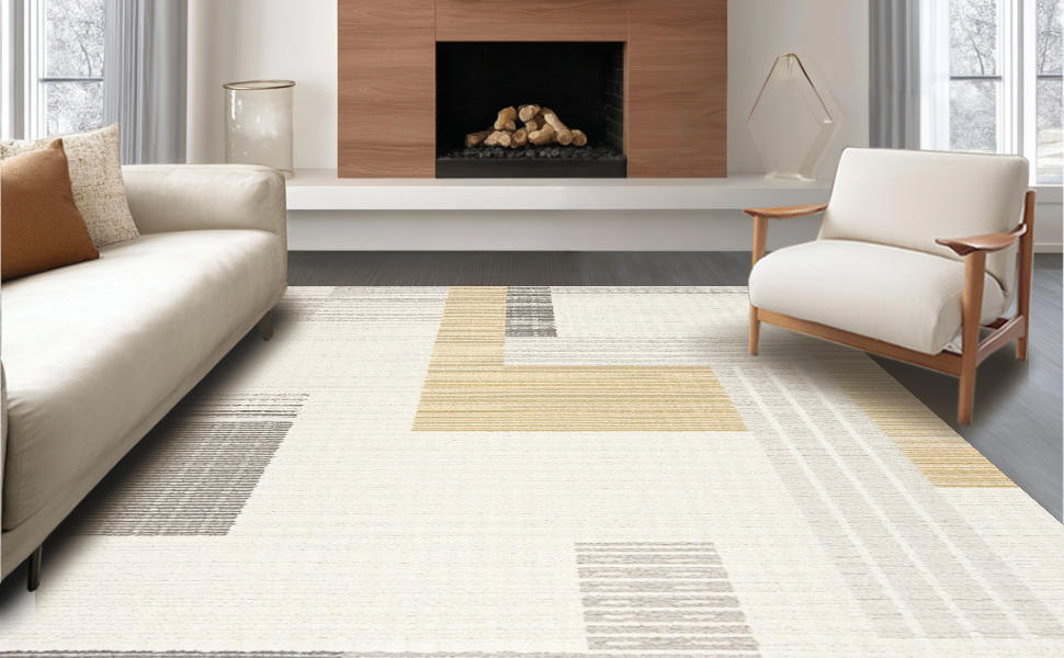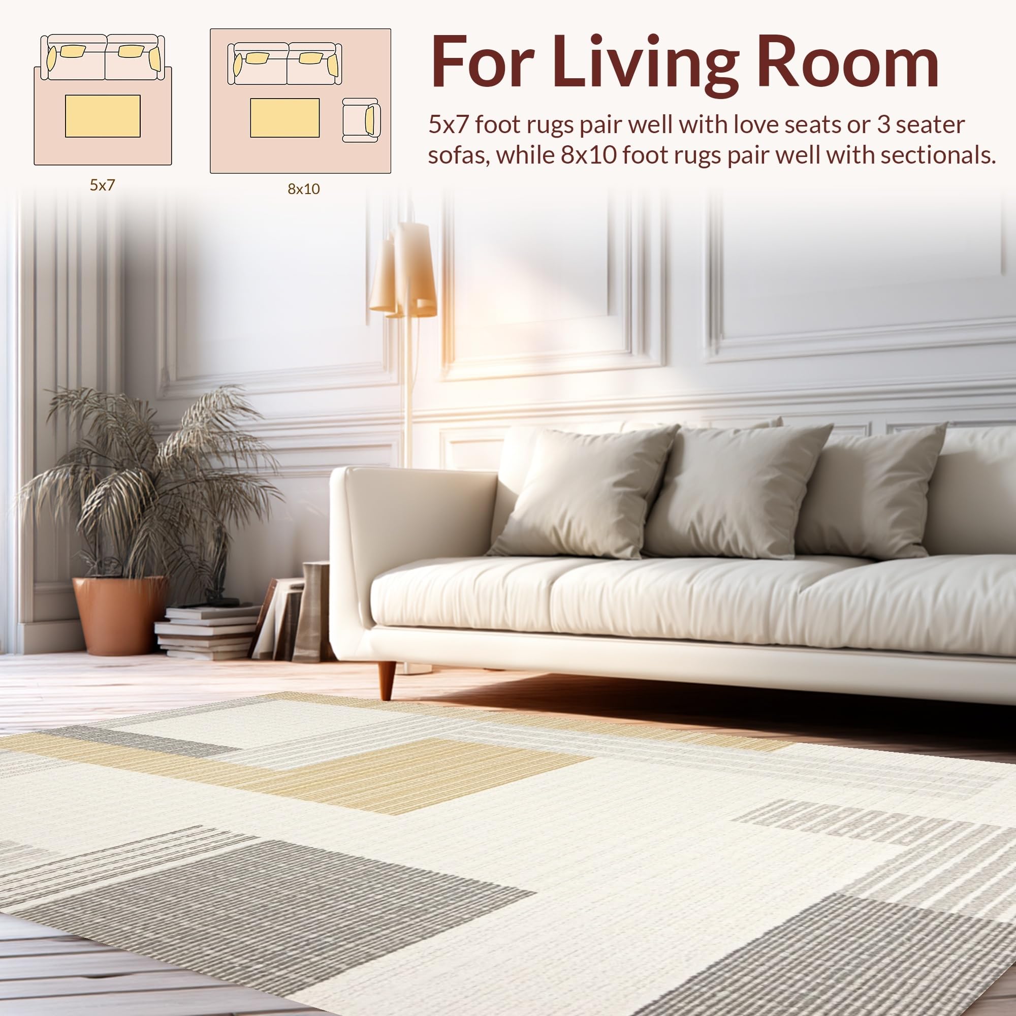 Ultra Soft Area Rug, Non Slip, Stain Resistant, Washable Area Rugs for Living Room, Bedroom, Chic Creamy Geometric Aesthetic(Beige) Overview: