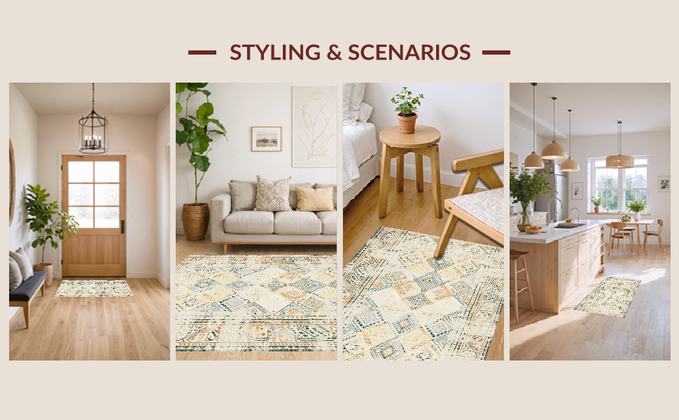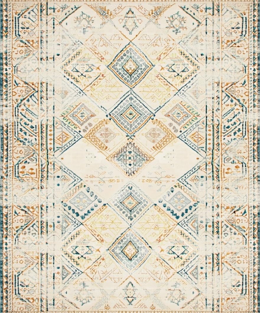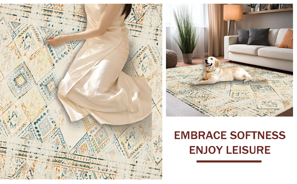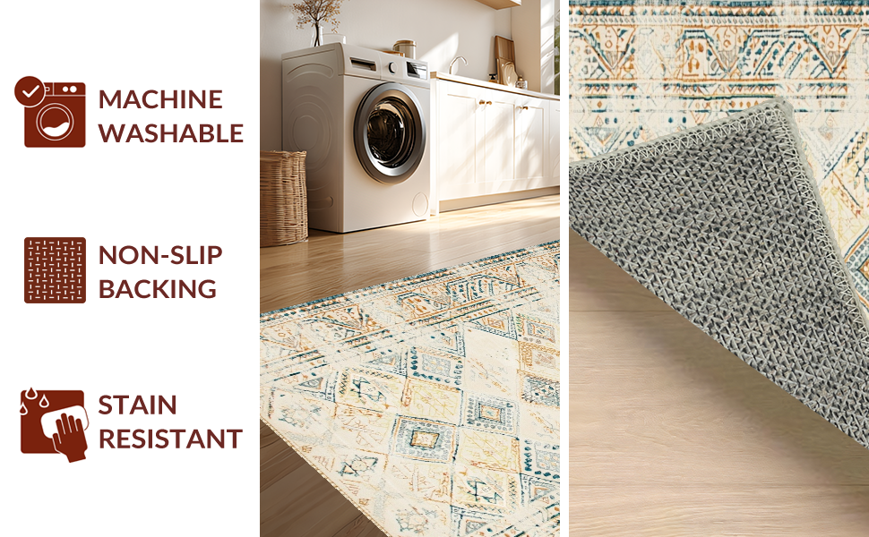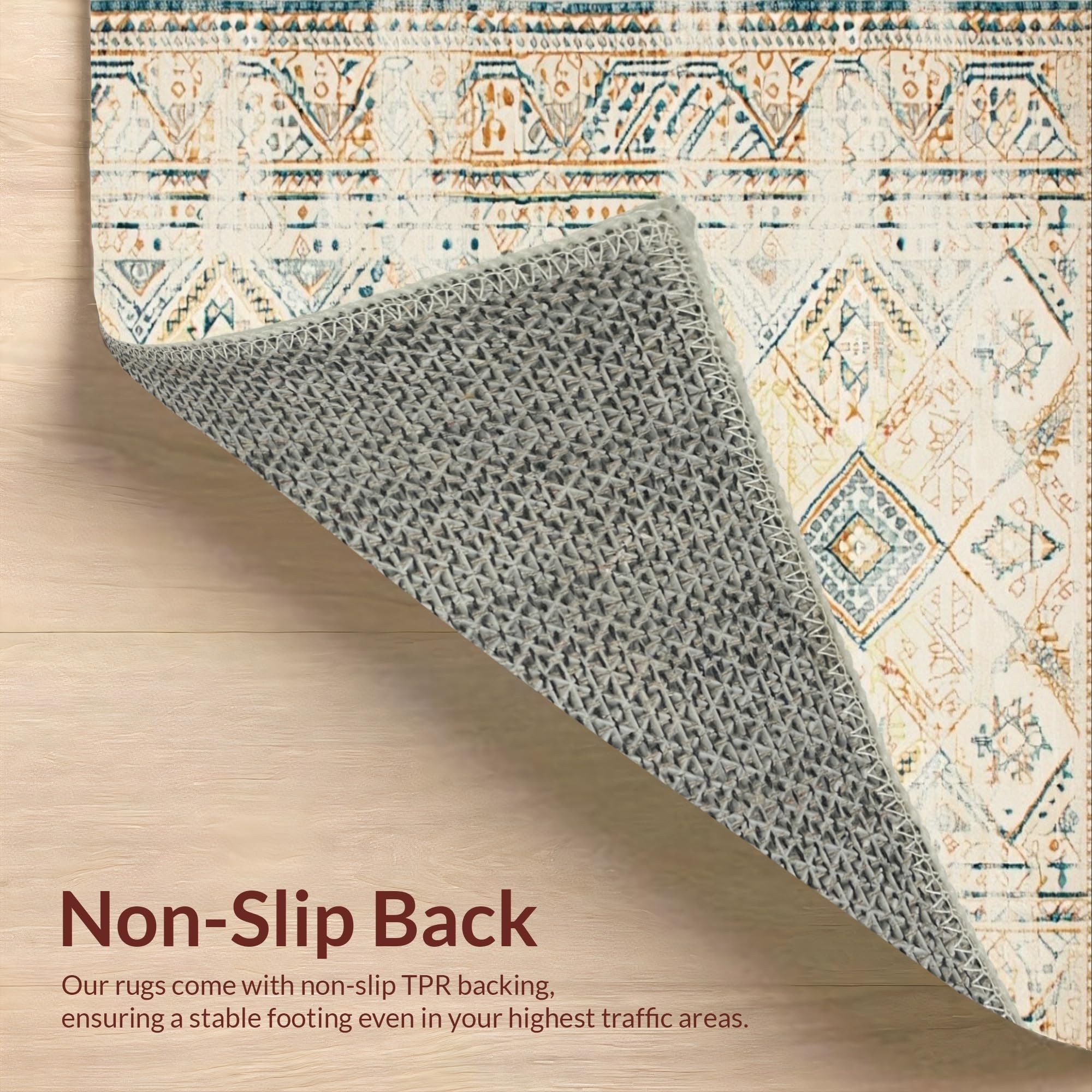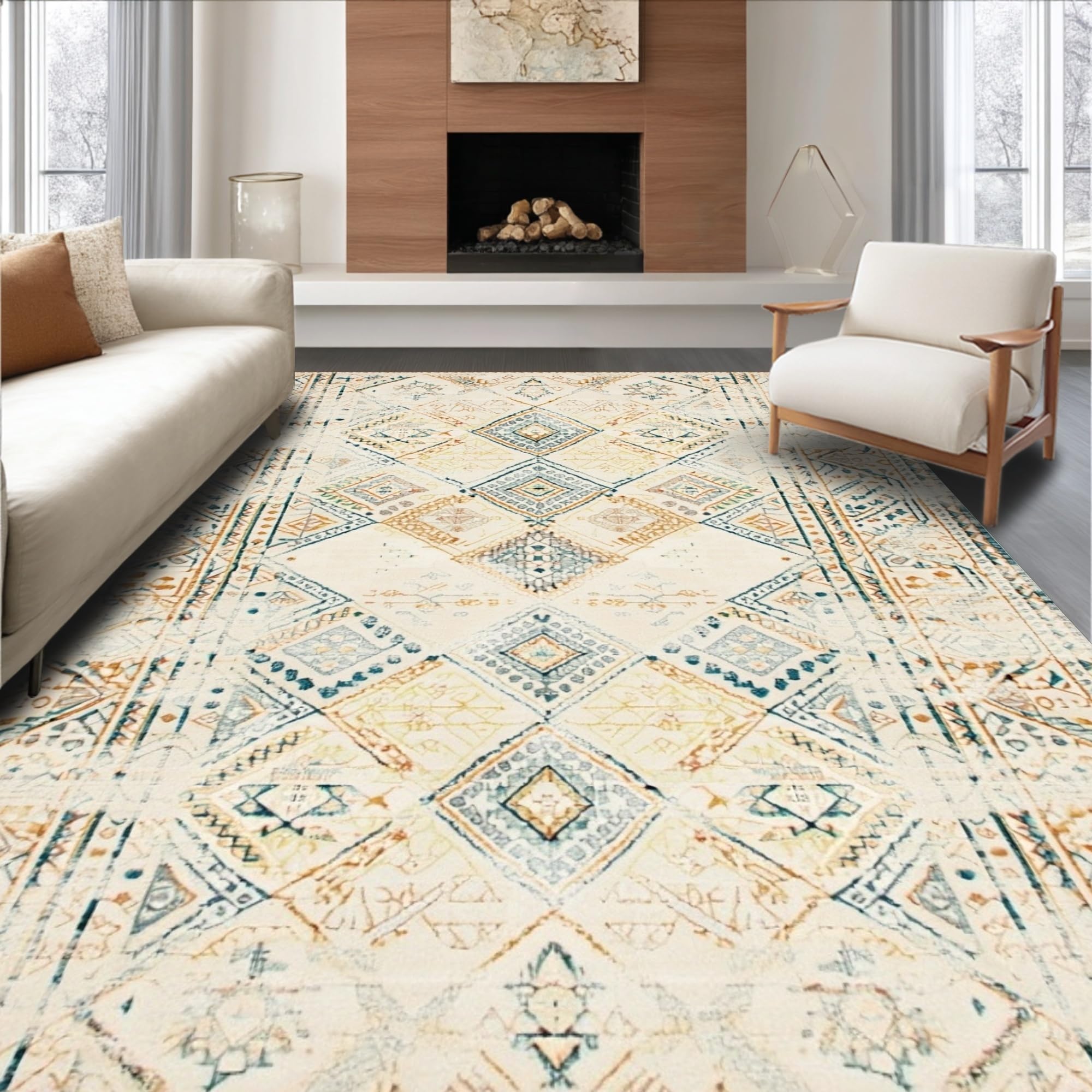 Ultra Soft Area Rug, Non Slip, Stain Resistant, Washable Area Rugs for Living Room, Bedroom, Chic Creamy Geometric Medley(Beige) Overview: