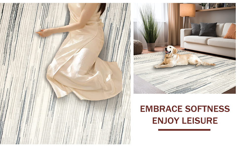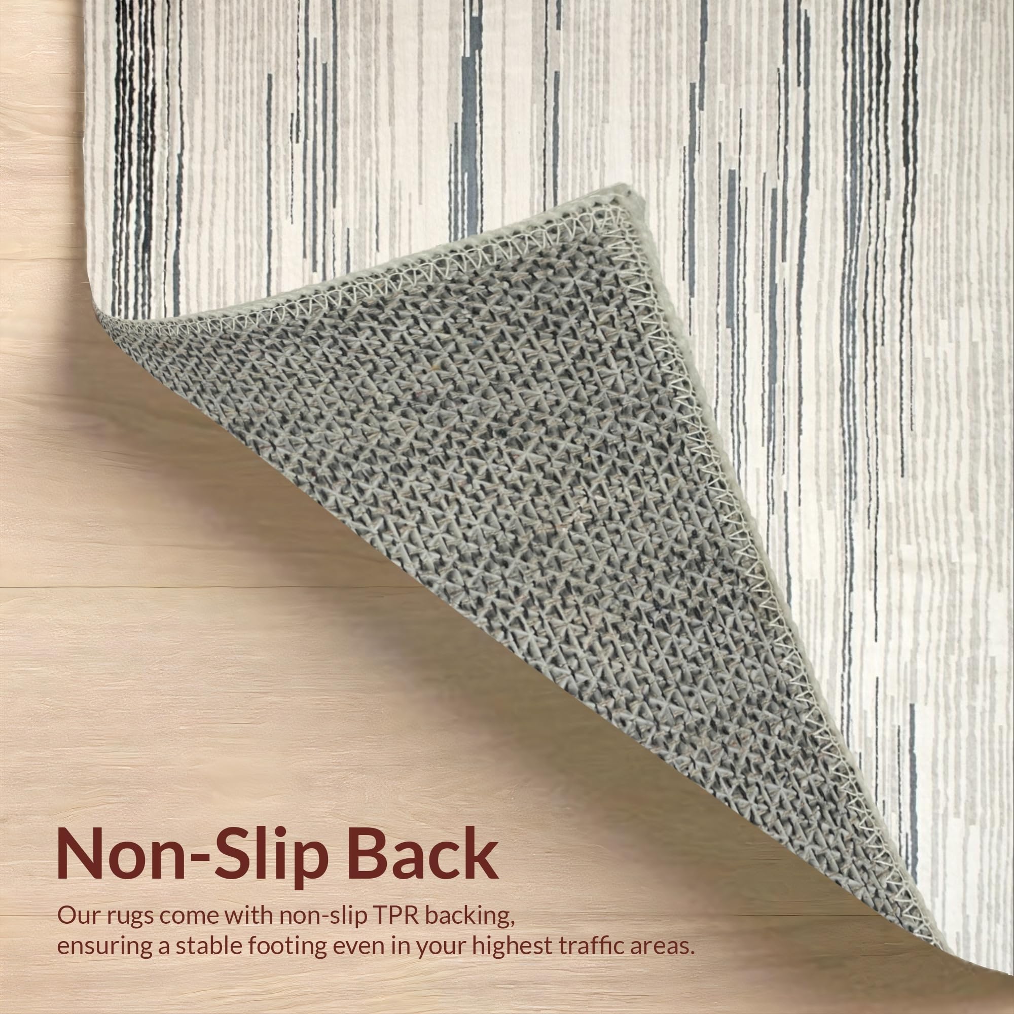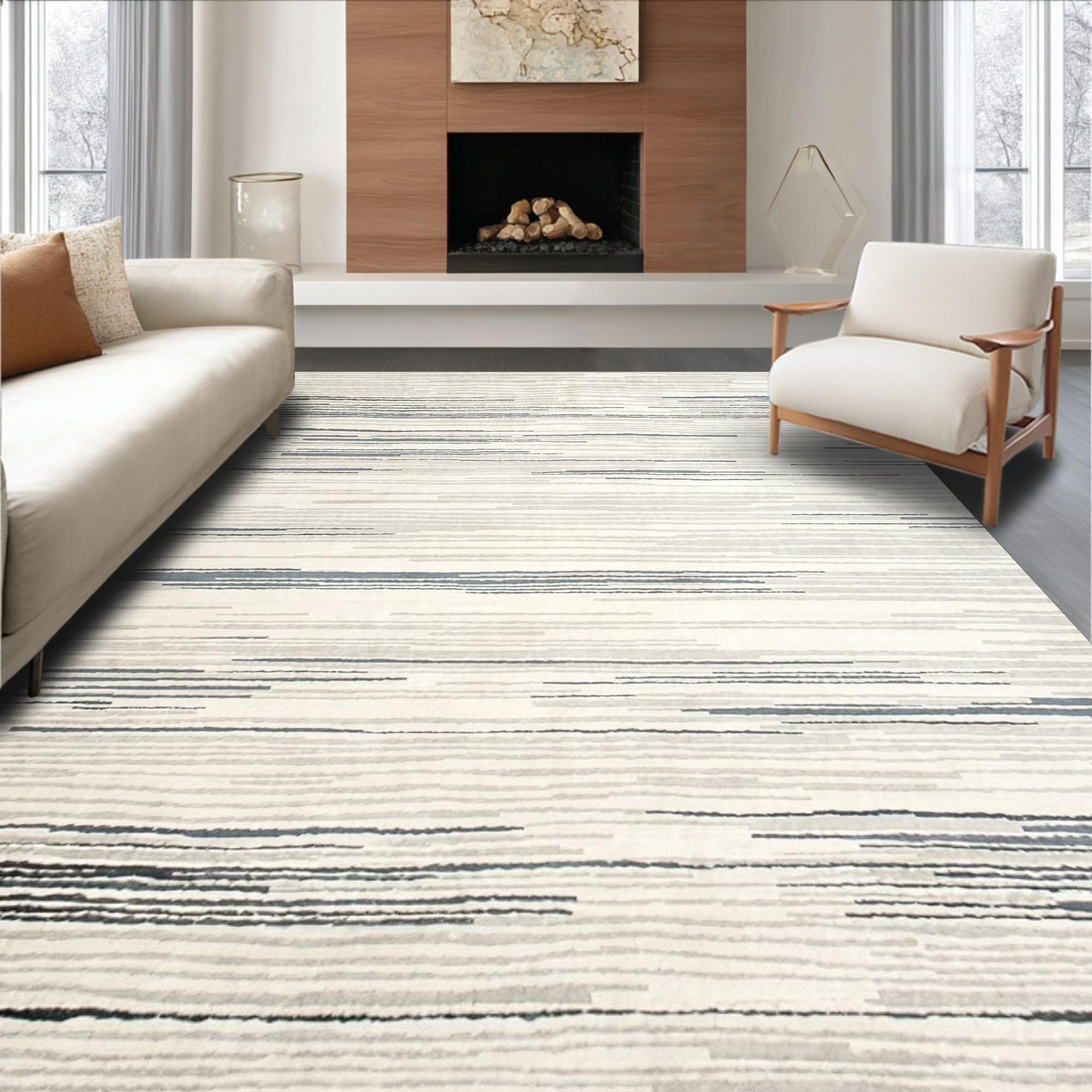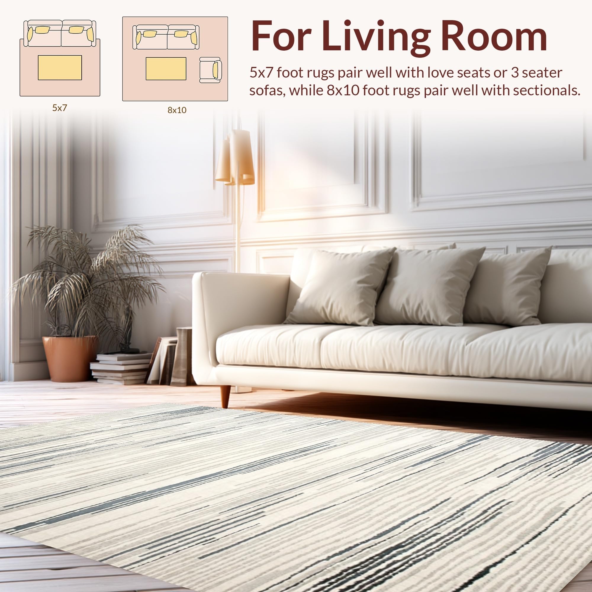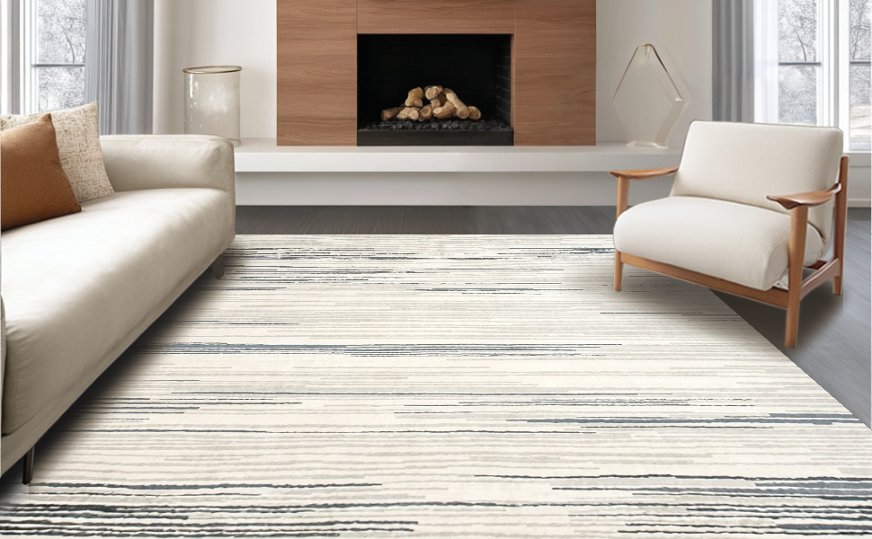Ultra Soft Area Rug, Non Slip, Stain Resistant, Washable Area Rugs for Living Room, Bedroom, Chic Creamy Striped Aesthetic(Gray) Overview: