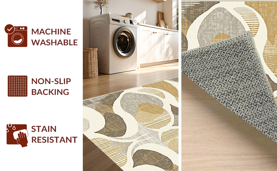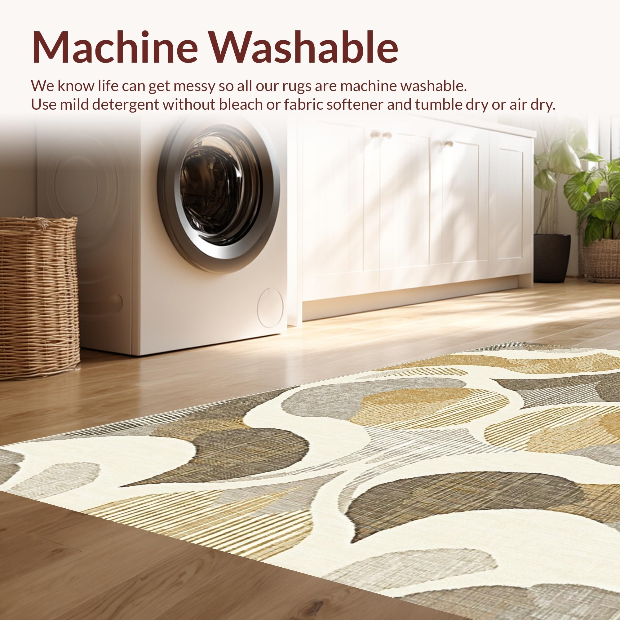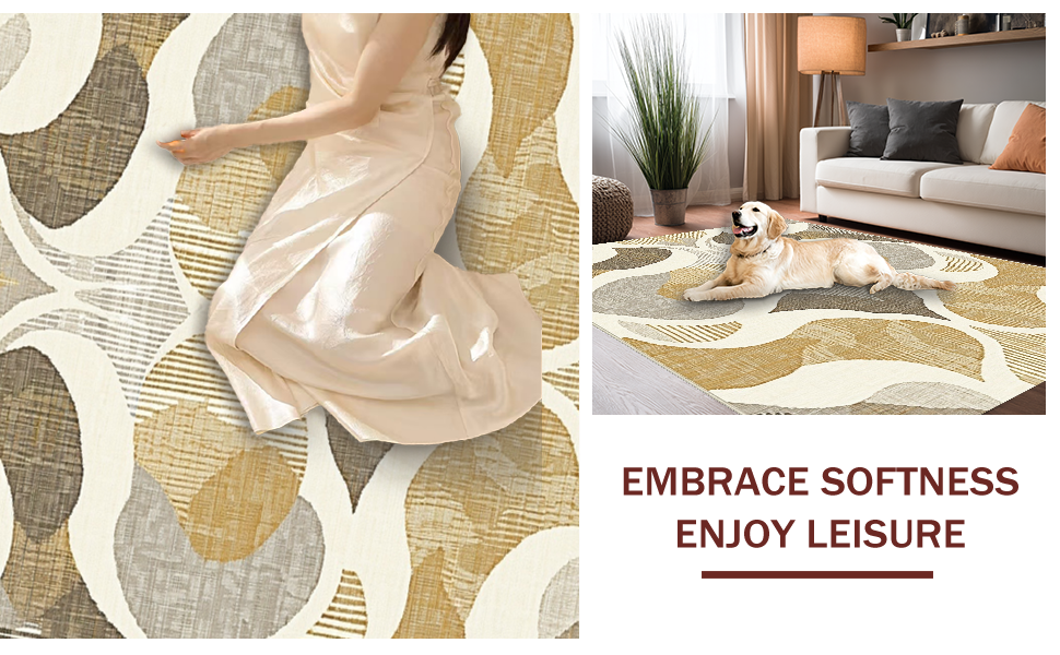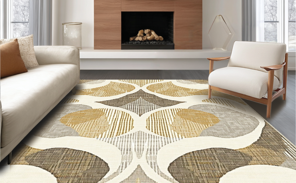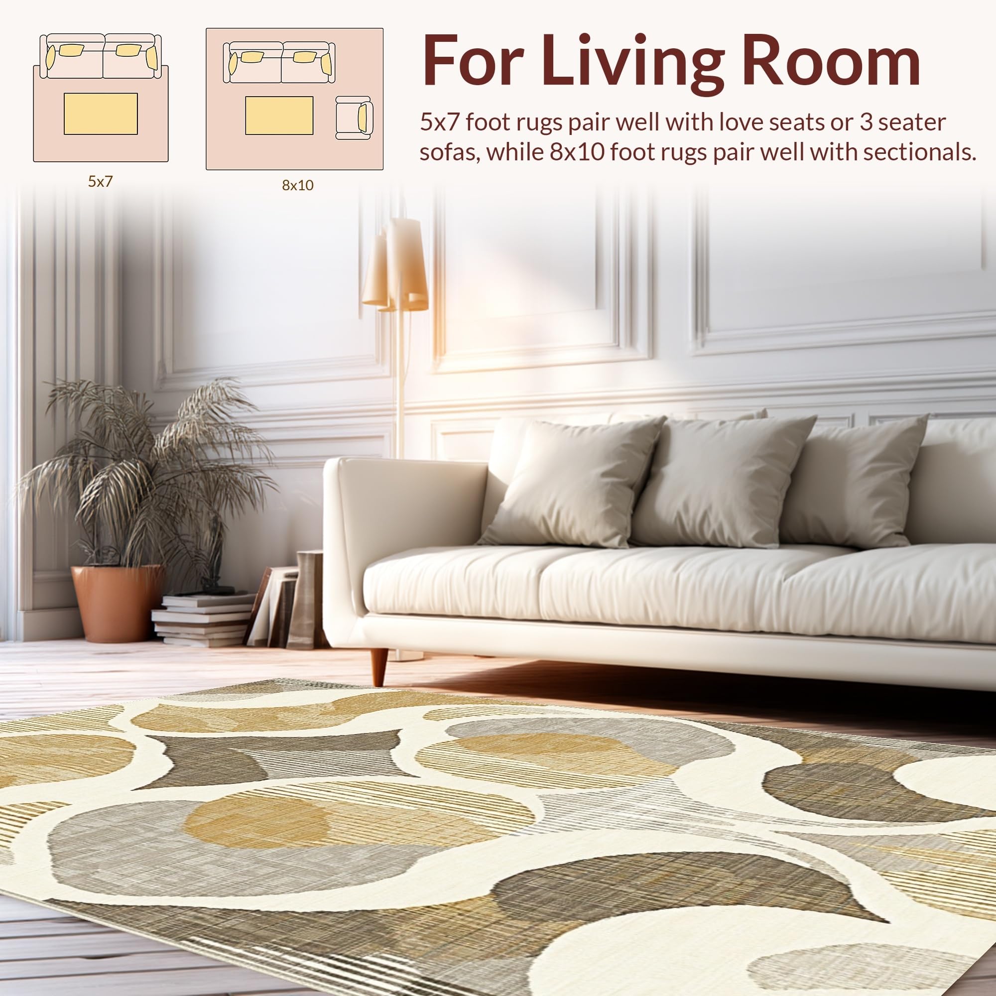 Ultra Soft Area Rug, Non Slip, Stain Resistant, Washable Area Rugs for Living Room, Bedroom, Chic Curvilinear Natural Aesthetic(Beige) Overview: