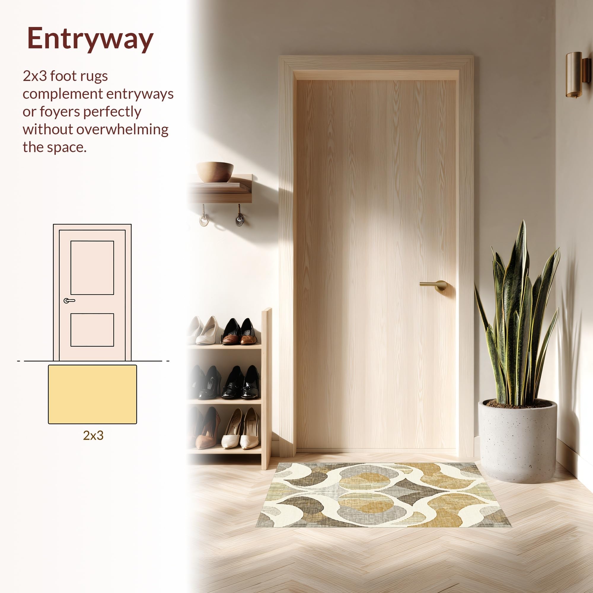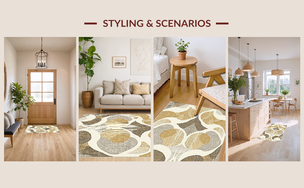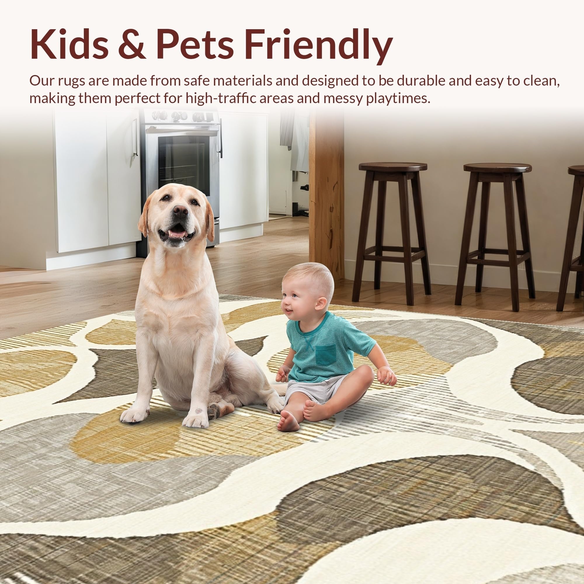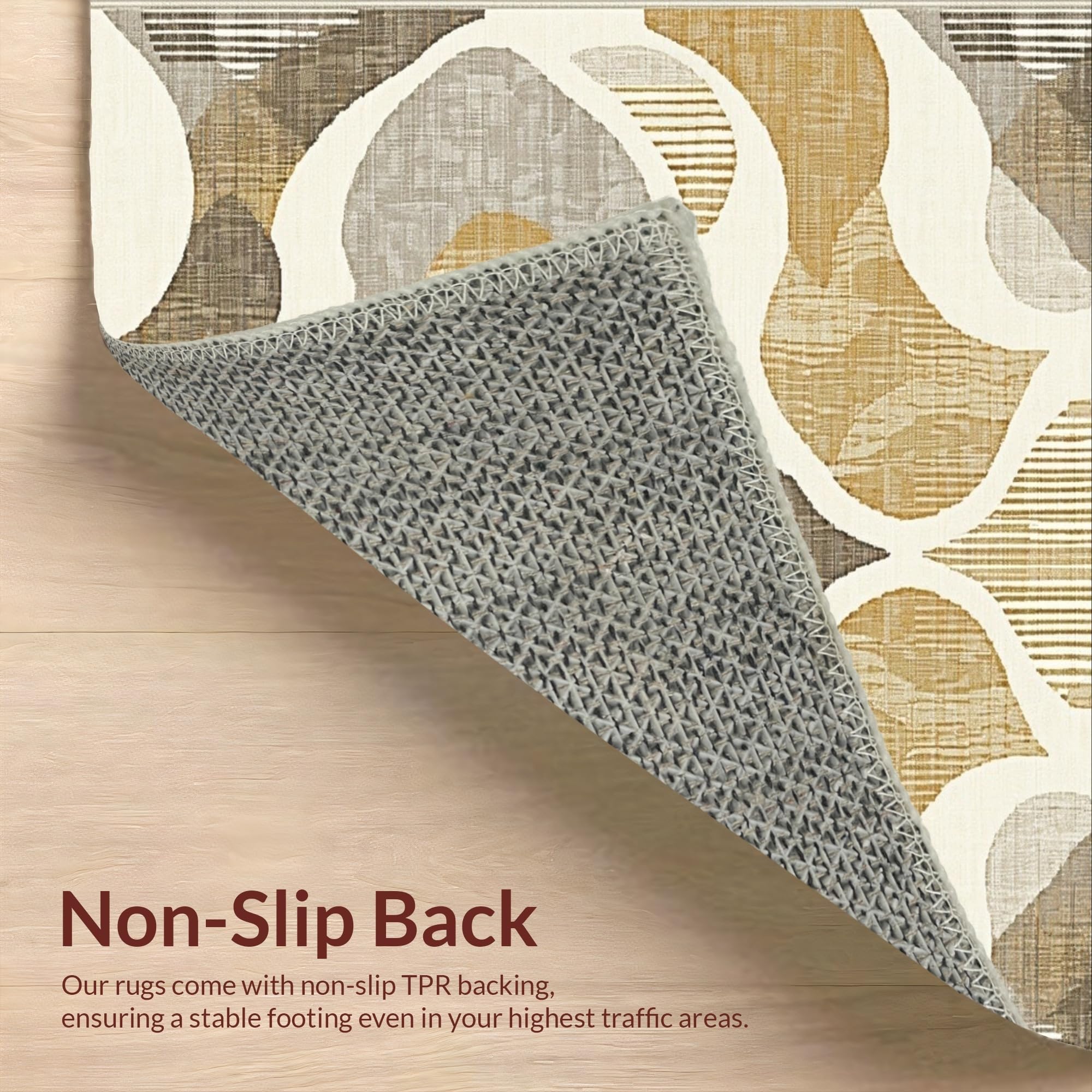 Ultra Soft Area Rug, Non Slip, Stain Resistant, Washable Area Rugs for Living Room, Bedroom, Chic Curvilinear Natural Aesthetic(Beige) Overview: